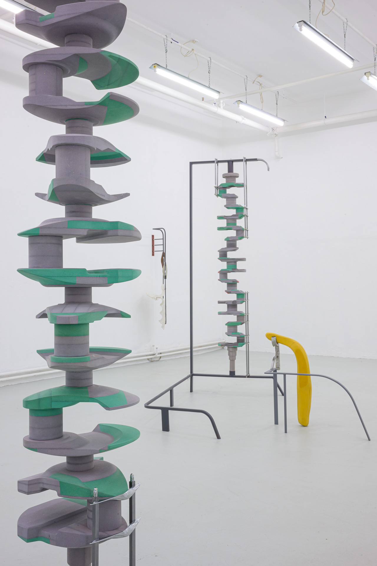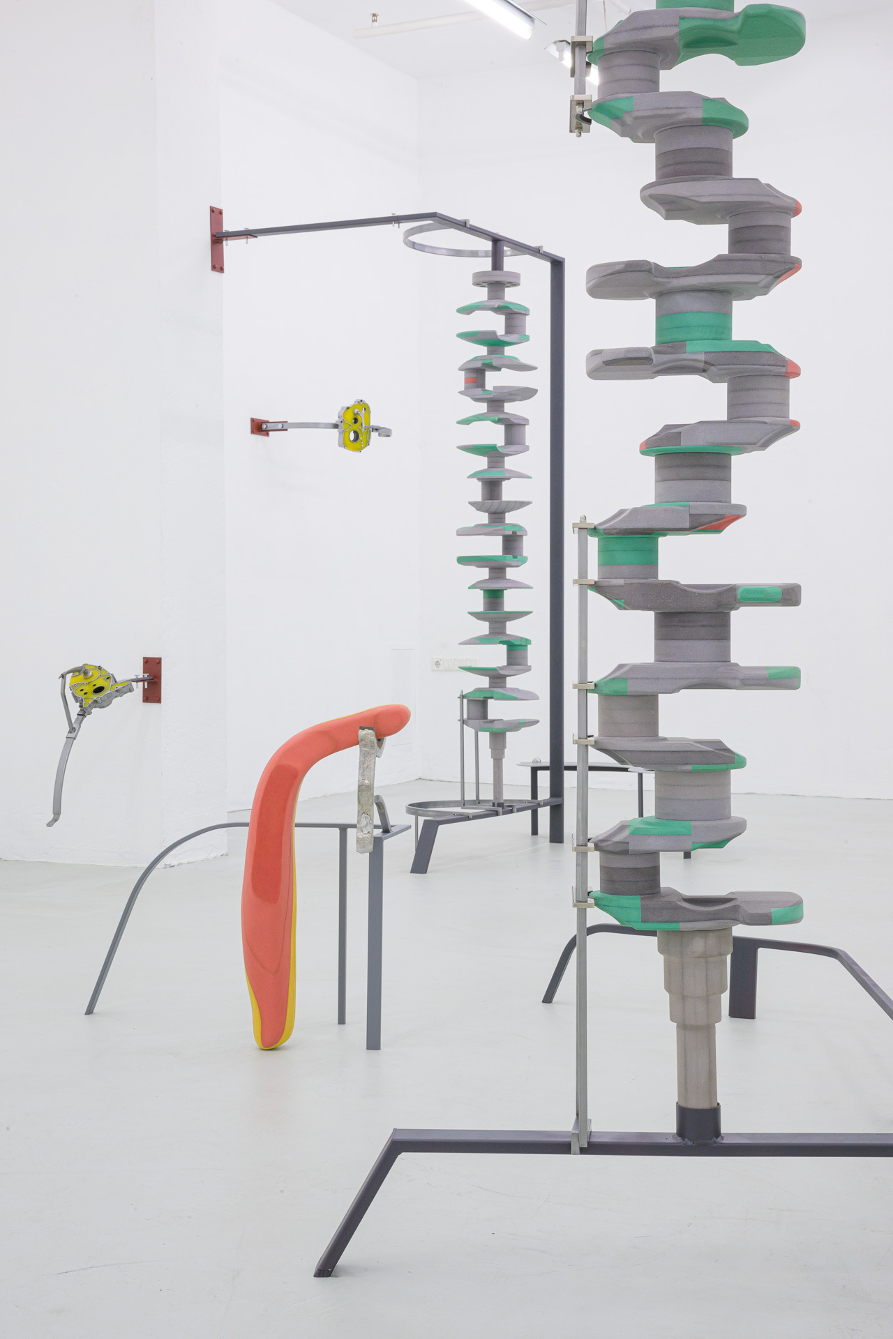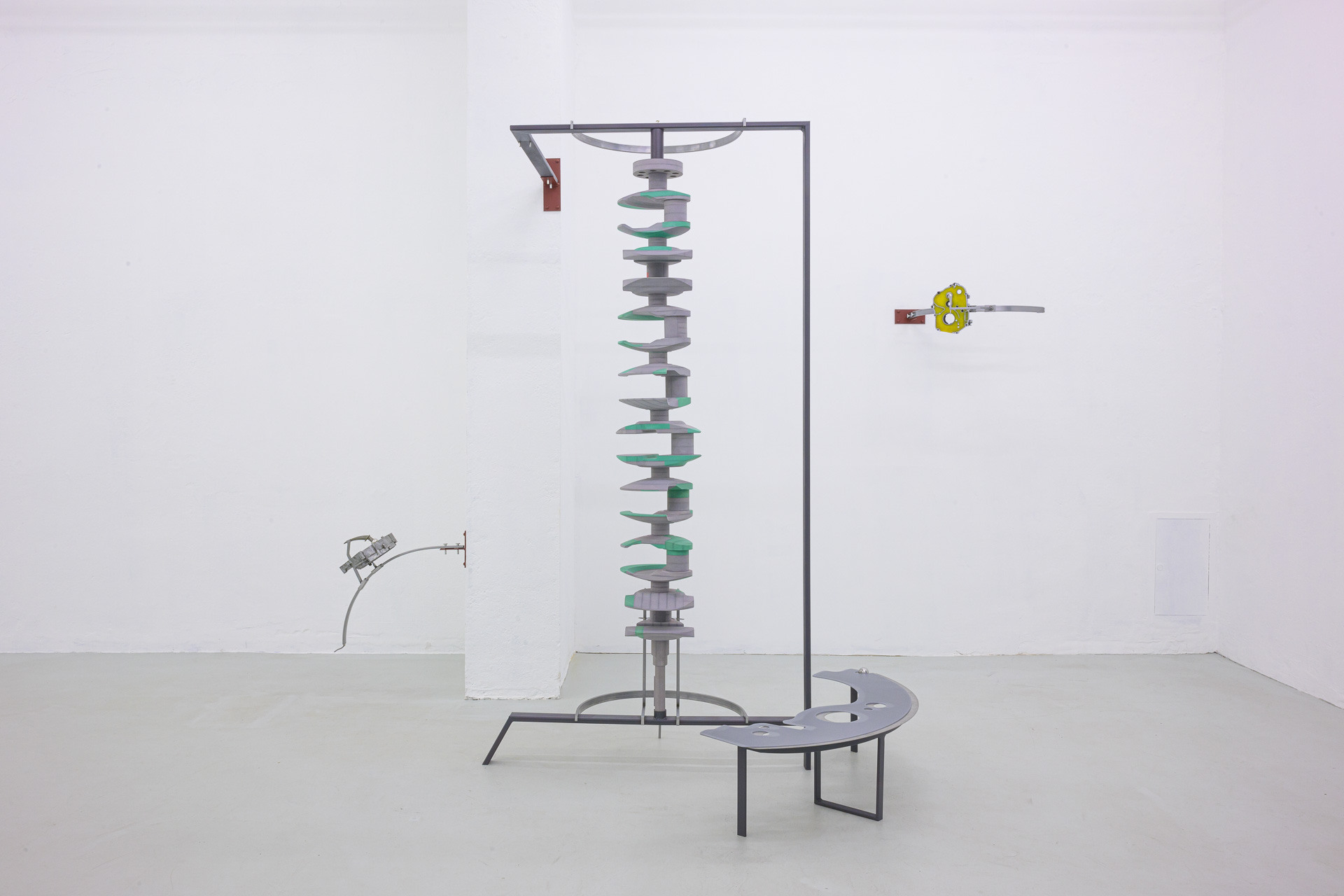 In Emery's work, the body is made tangible in its resilience, but also its vulnerability and the incongruity felt by the subject. Her sculptures can be understood as sensors that record, trace or reanimate specific relationships between movements and signals. Emery thus explores how moments of rotation, turning and cranking can be transformed, accelerated, but also inhibited, slowed down and stopped.