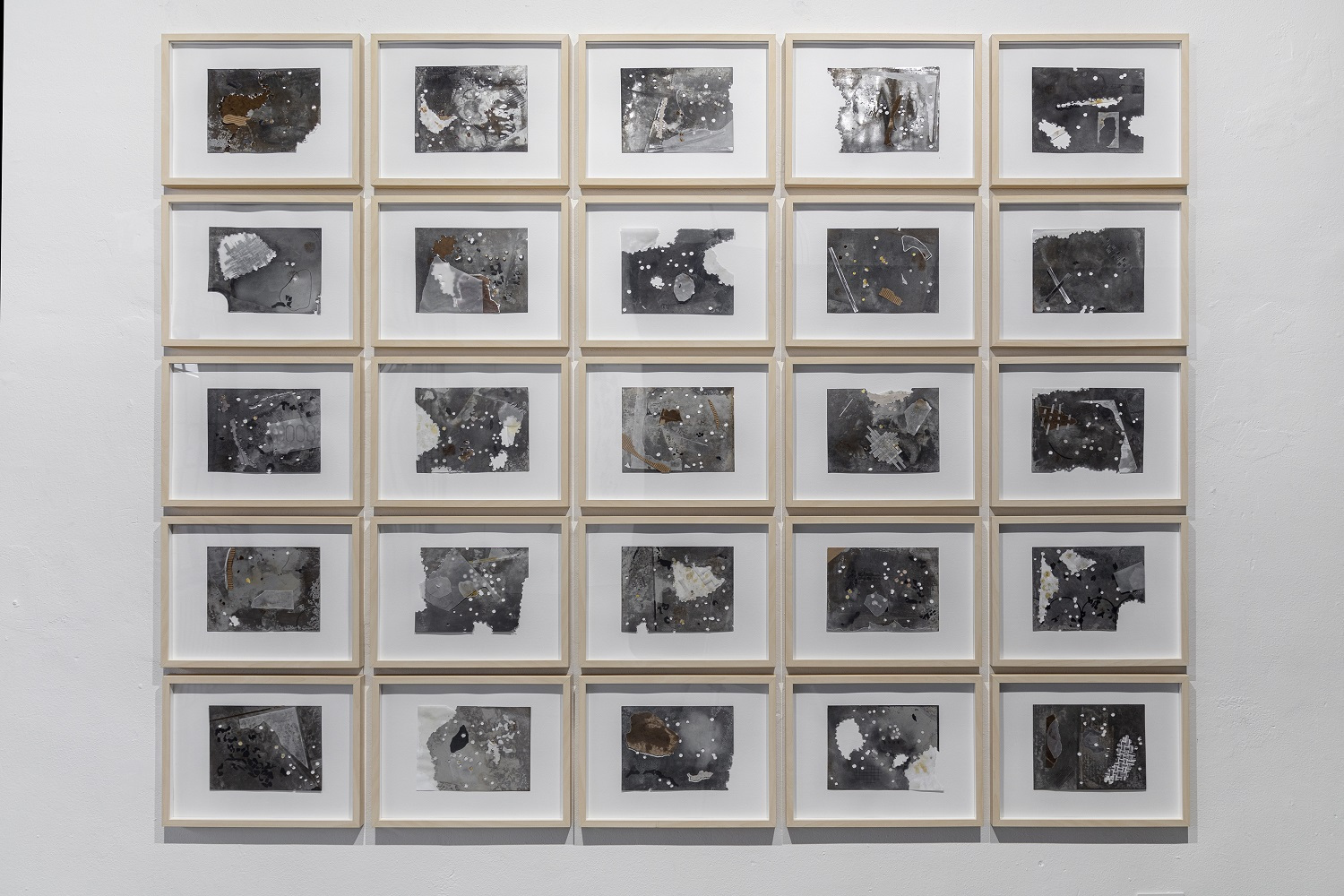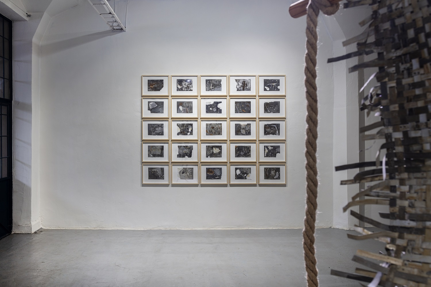Focal point for the works is the aesthetic of destruction in terms of growth. The artist uncovers new layers of ideas and materials by gradual transformation and archaeological process. Techniques of perforation and assemblage, present in the series Between, which are imprint of urban structures are becoming centre point. They represent places marked by time, both the real one and imaginary one – from the streets of old Prague to the sandy shores of Portugal. From industrial buildings of telecommunication warehouse to the exposition of the anthropological museum.