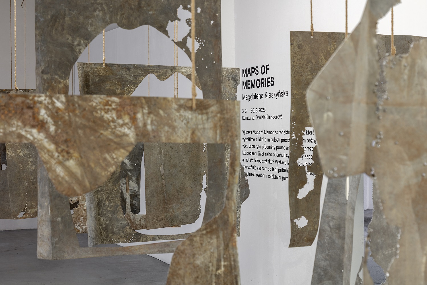 Distinctive name of the exhibition, Maps of Memories, is based on the author´s long-term program and residencies she attended latterly. The first one took place in Portuguese Guimarães, the second one in Pragovka Gallery at the beginning of this year. She focused there on guided conversations with gallery´s visitors, residents of Prague 9 and artistic community of Pragovka. Theme of the conversations were significant objects from their personal and family memories. By using almost psychoanalytical approach, she examined respondent´s memories and uncovered nostalgic situations from their lives and fragments of time. On top of that, she drew patterns from lost bits of a former car factory, historical resources, and archaeological collections of museums.