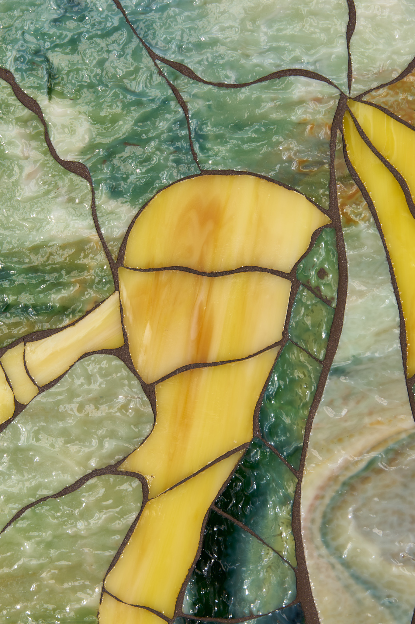 Dominika Olszowy has now embarked on an artistic journey working with stained glass. Gluing together pieces of colour glass, she tells stories of her daily life locked in a Chinese-box format. She puts the laborious craftsmanship to the foreground, leaving behind the scenographic concept. Is that good? Intuition prompts us to say yes. The glued thought creatures are completely autonomic. They need silence and space to tell us about themselves.