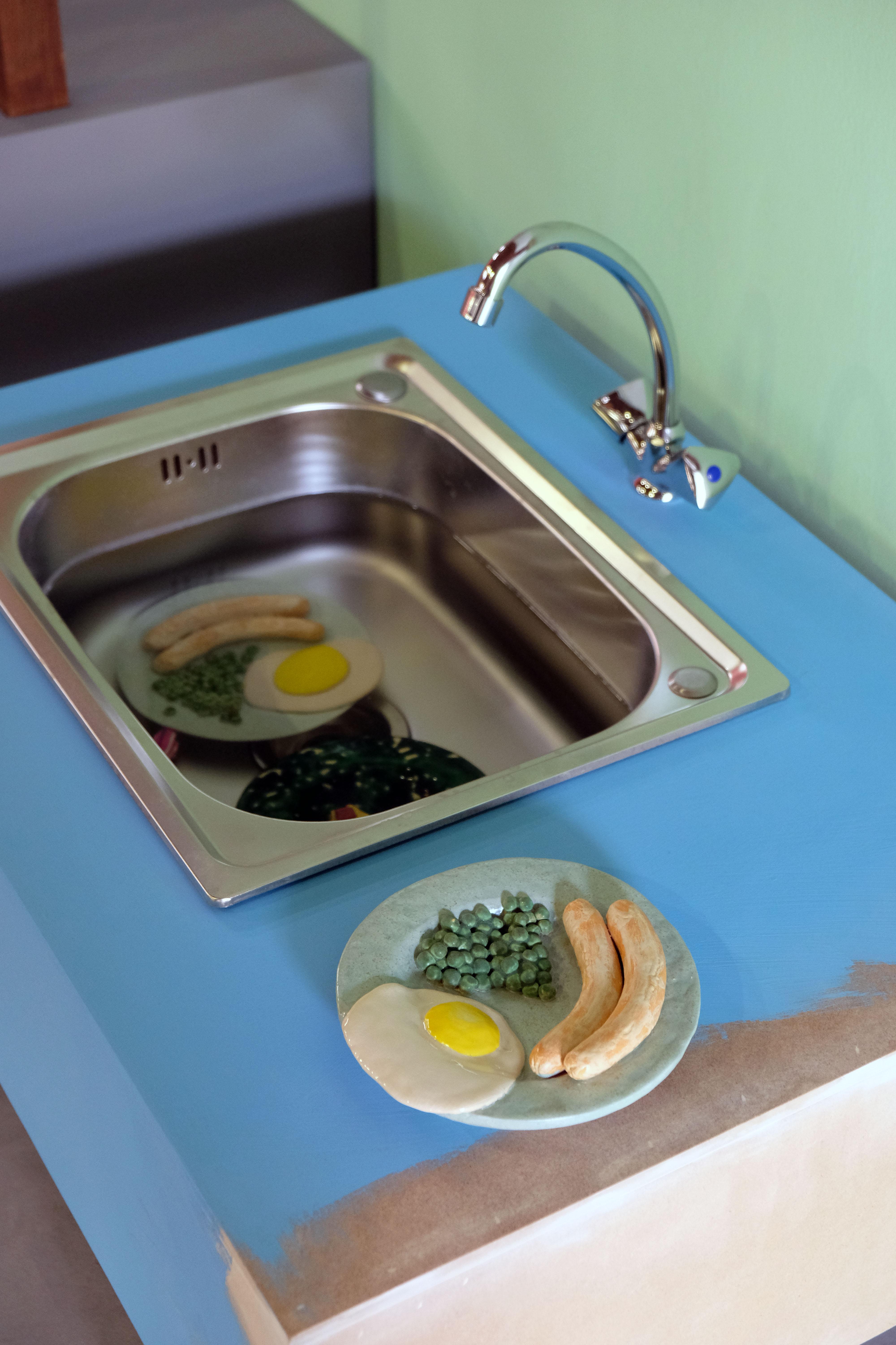 La disposition des travaux et du mobilier dans la cafétéria rejoue l'intérieur de la galerie « L'effort moderne » en 1920 à Paris. Entre domesticité et exposition publique, les pièces modernistes sont troquées contre les miennes.
