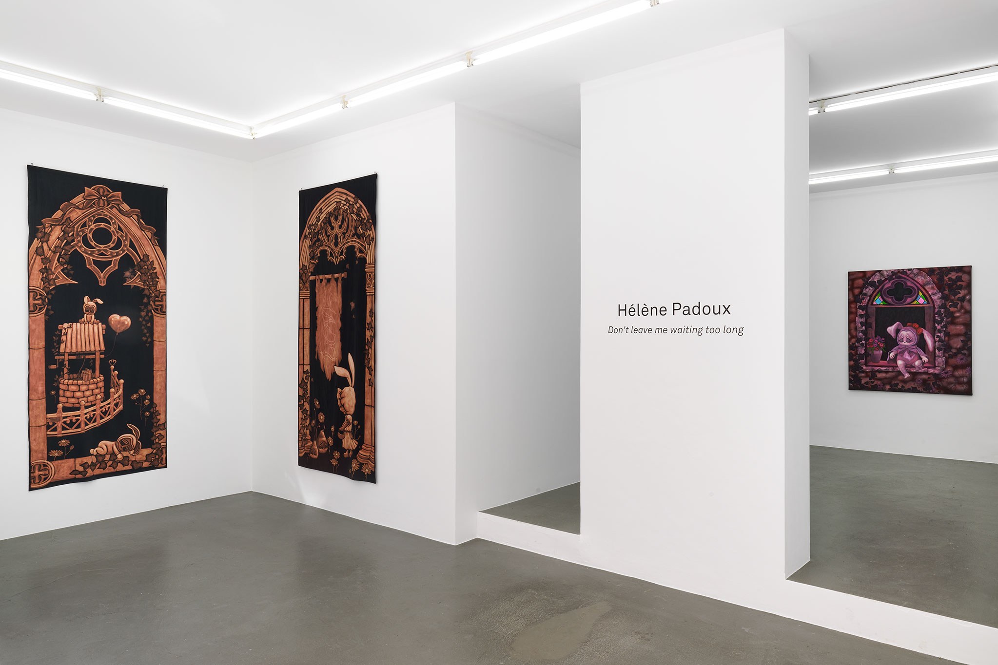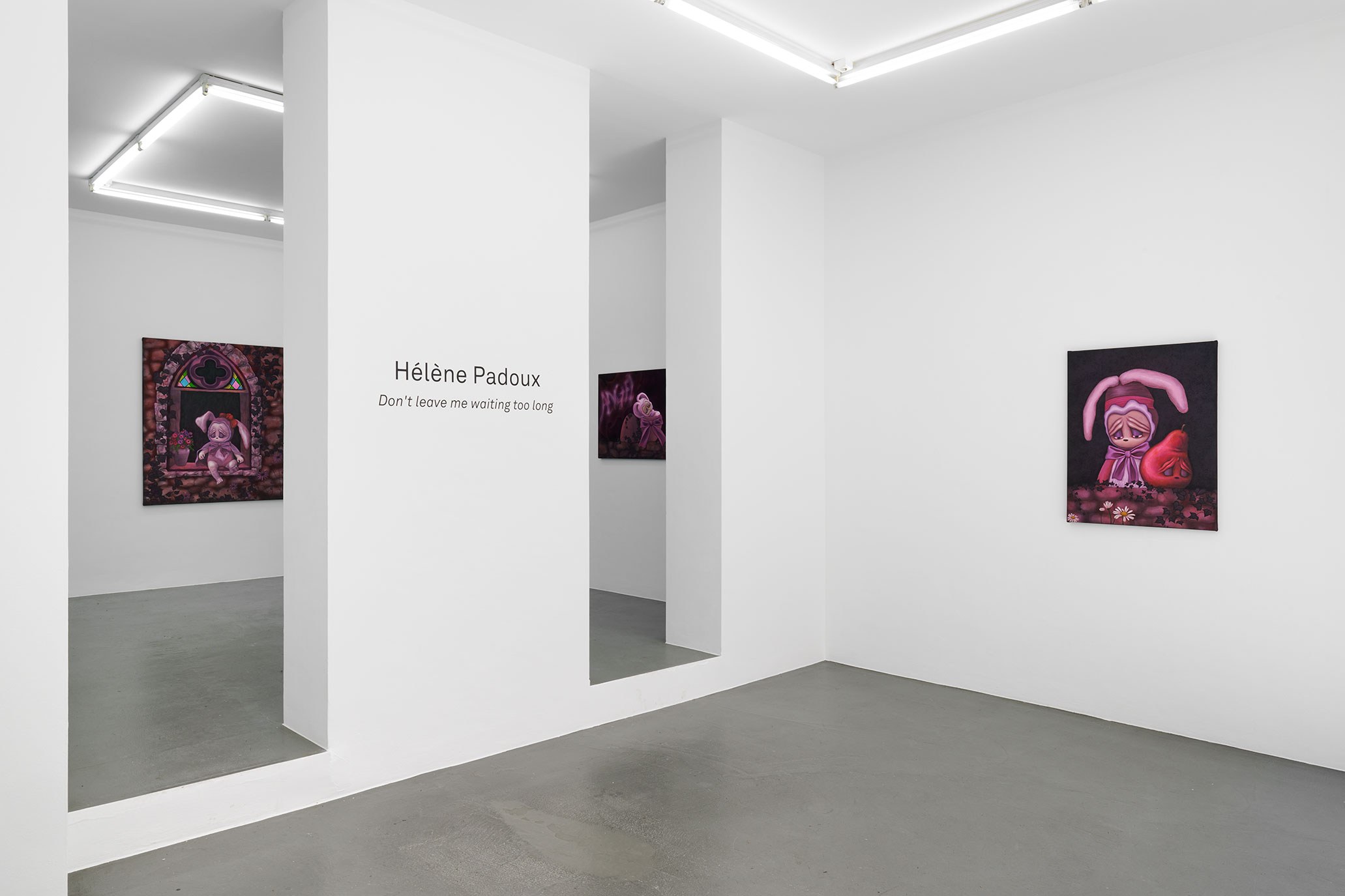 Imbued with romantic and gothic fantasy, Padoux’s work in Don’t leave me waiting too long expresses malaise towards the modern world. Nearly but not entirely nostalgic, her work bridges and seeks to upend the dualities of cute vs. serious, feminine vs. masculine. Revealing the multidimensionality of cuteness, Padoux insists on agency and dimensionality. With its requisite sweetness, she engages the subversive power, emotional claim, and resilience of cuteness to transform a hierarchical understanding of art, culture, and identity.