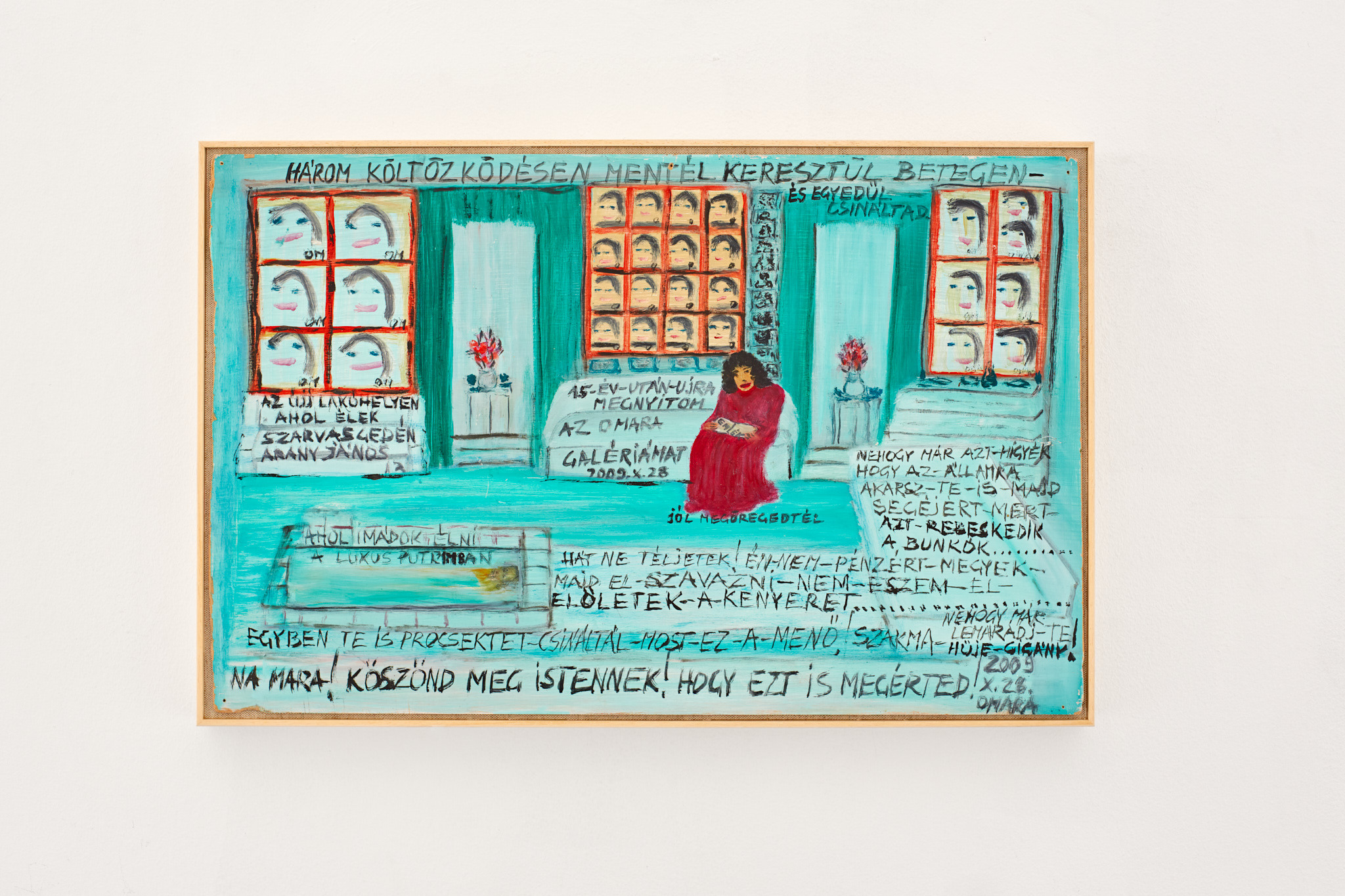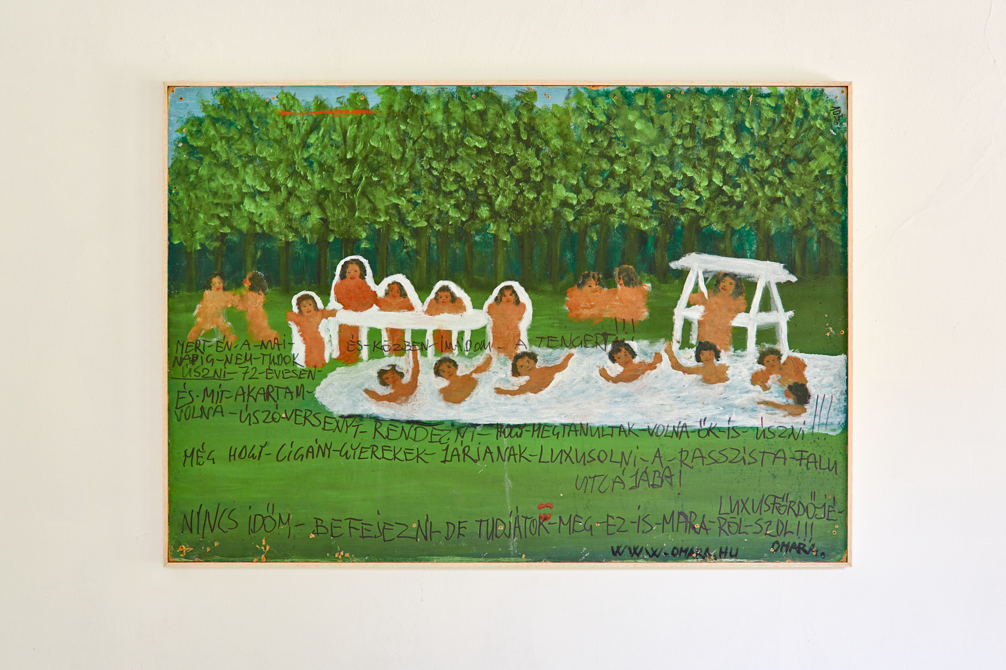 In 1993 she opened Hungary’s very first private art gallery in her home in Kispest, and in 1997 she self-published her autobiography »OMara festőművész« [Painter Omara] in Szolnok. Most recently she has been exhibited at Documenta15 in Kassel