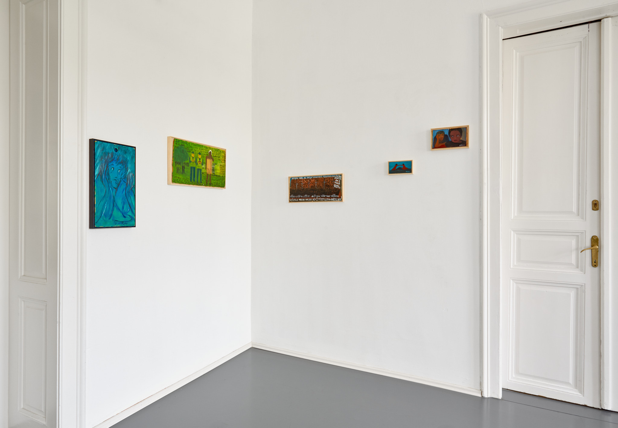 Her series of blue pictures, the first appearing in 1997, show the difficulties, racism and discrimination she faced throughout her life. In her autobiography she says: »Blue was always the colour of my daughter, blue was her best dress when she was a little girl, she wanted her room to be painted blue when she grew up, it was her favourite. […] In 1997 I had a dream which told me I should paint the picture I was to give to my daughter on her name day in blue. I could hardly wait to lay my hands on the paint and the boards. I had ice blue and white at home. And what did I paint? Myself with my hand on my heart, bowing deeply, thanking God for creating this in my dream. My daughter is the person I love most in the world, and this way I could make my girl’s dream come true.« Painted in various tones of blue and complemented with textual explanations, the blue pictures are confessions about the artist’s most important personal experiences, her relationship with her daughter, her ordeals as a Roma and a woman.