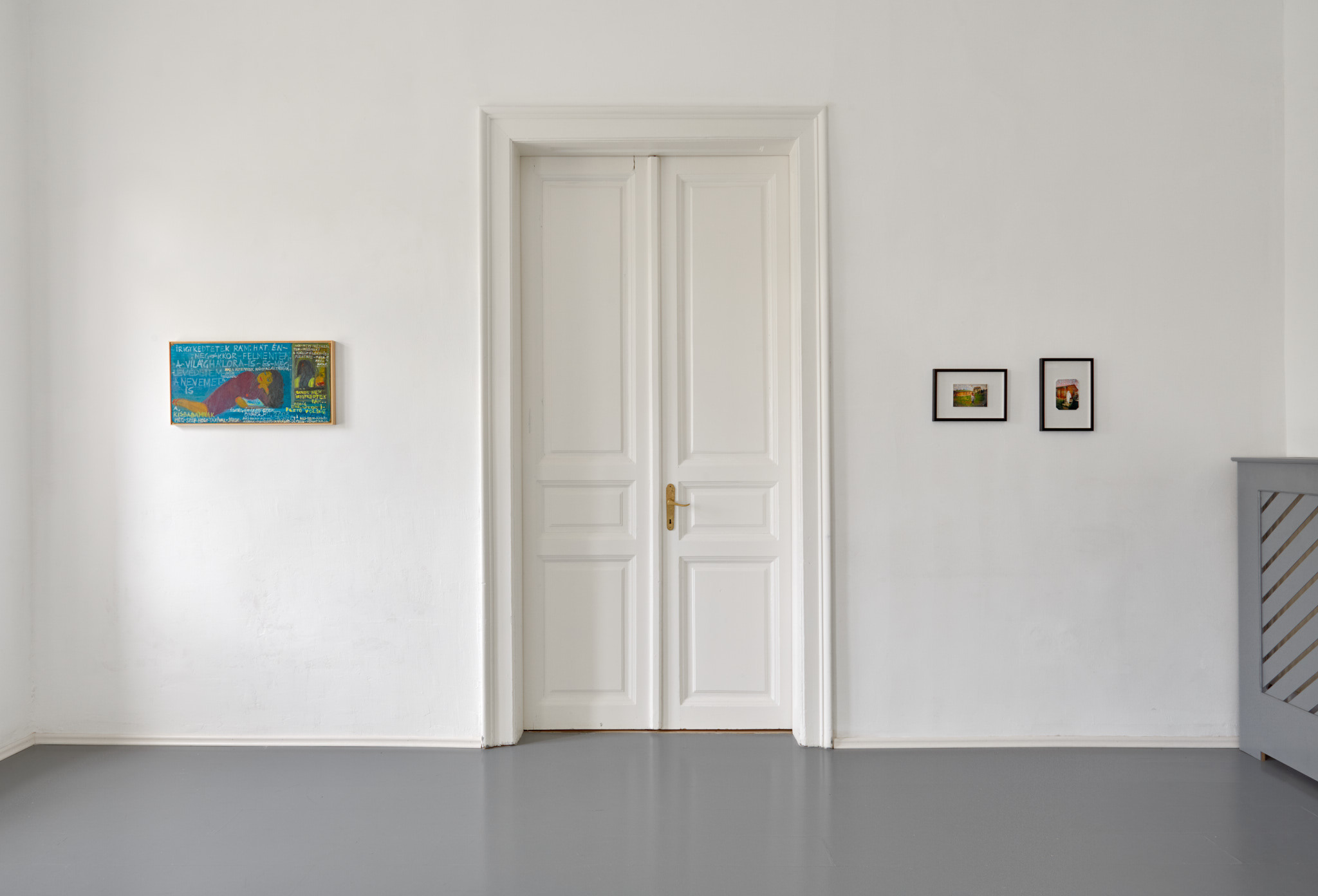 Since 1992 her pictures feature inscriptions, as a result of a misunderstanding surrounding one of her works at an exhibition in Szeged: a painting representing a real occurrence, Mara on all fours looking for her glass eye in the grass, was presented as »Mara Resting,« while a double portrait of Omara and her sister was put on display as »Lesbians.«