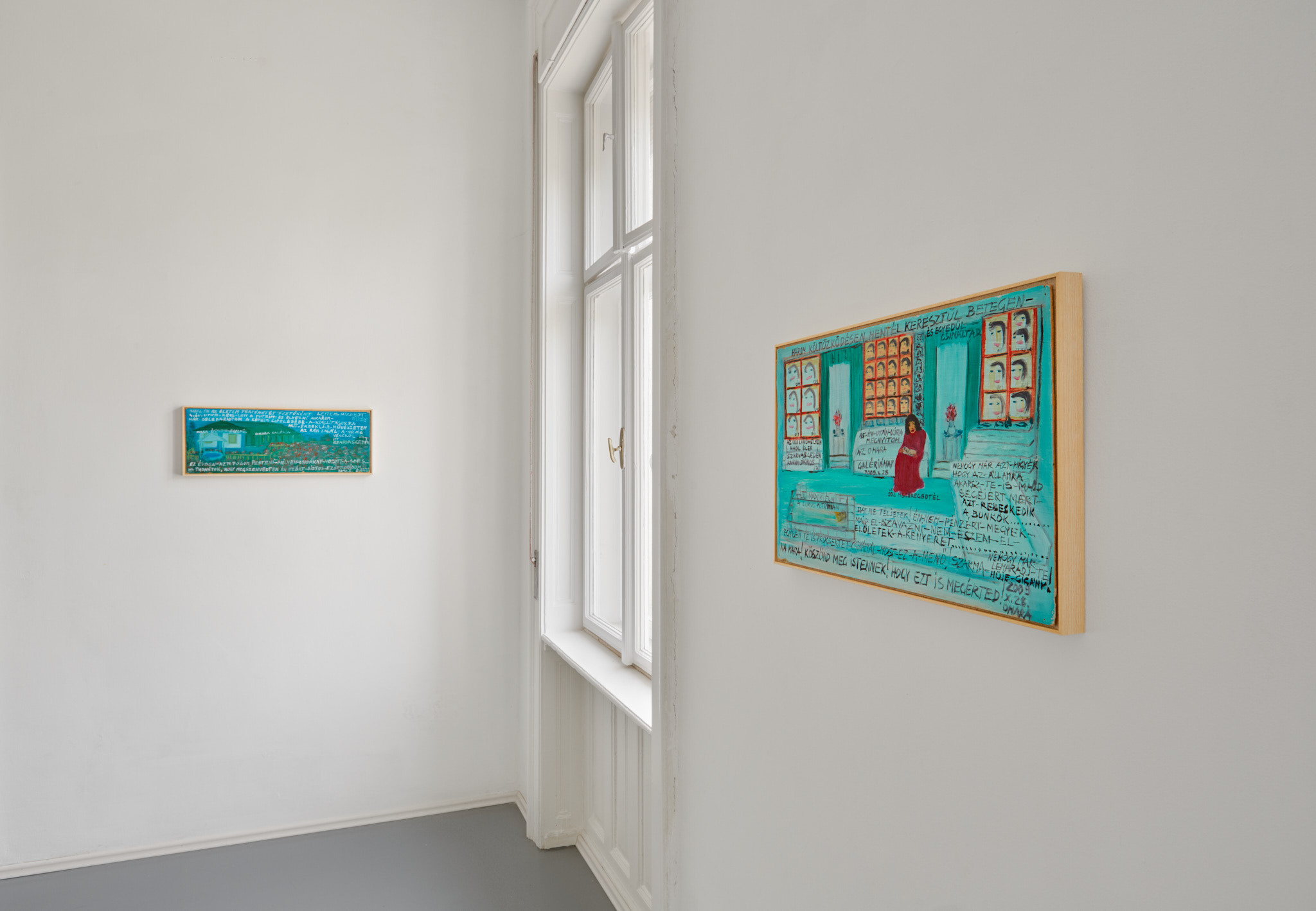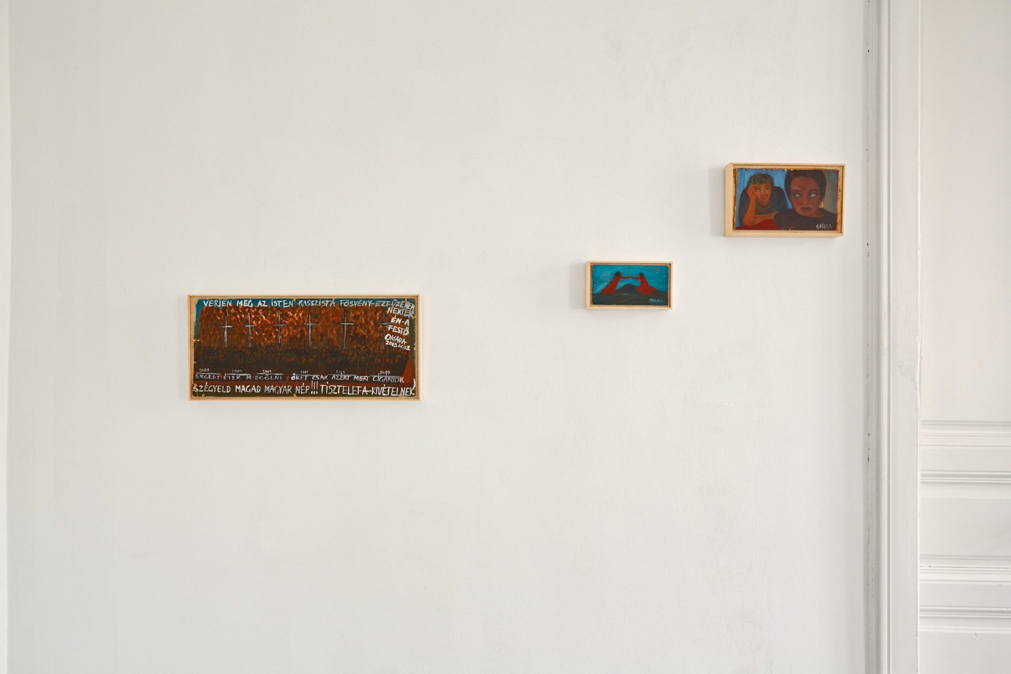 The inscriptions not only verbalise the pictures’ narratives, but they also reflect on their significance regarding the present and the future (e.g. her work »Mara and the Policeman«). The texts featuring in her paintings have a key role to play: this language is in itself productive, performative and constitutive. It is an act that defines and marks what does it mean to be a Roma woman to Omara, similarly to the feminist ideas of Judith Butler and John L. Austin: they are statements that do not communicate facts, they are not true or false, but Omara performs actions through them.