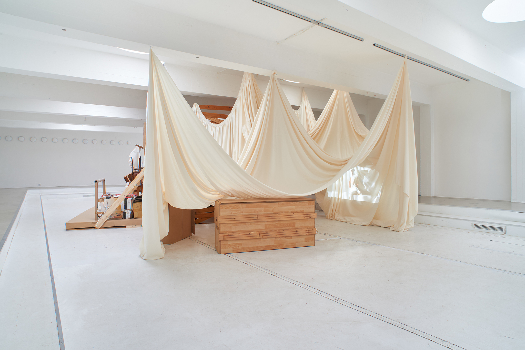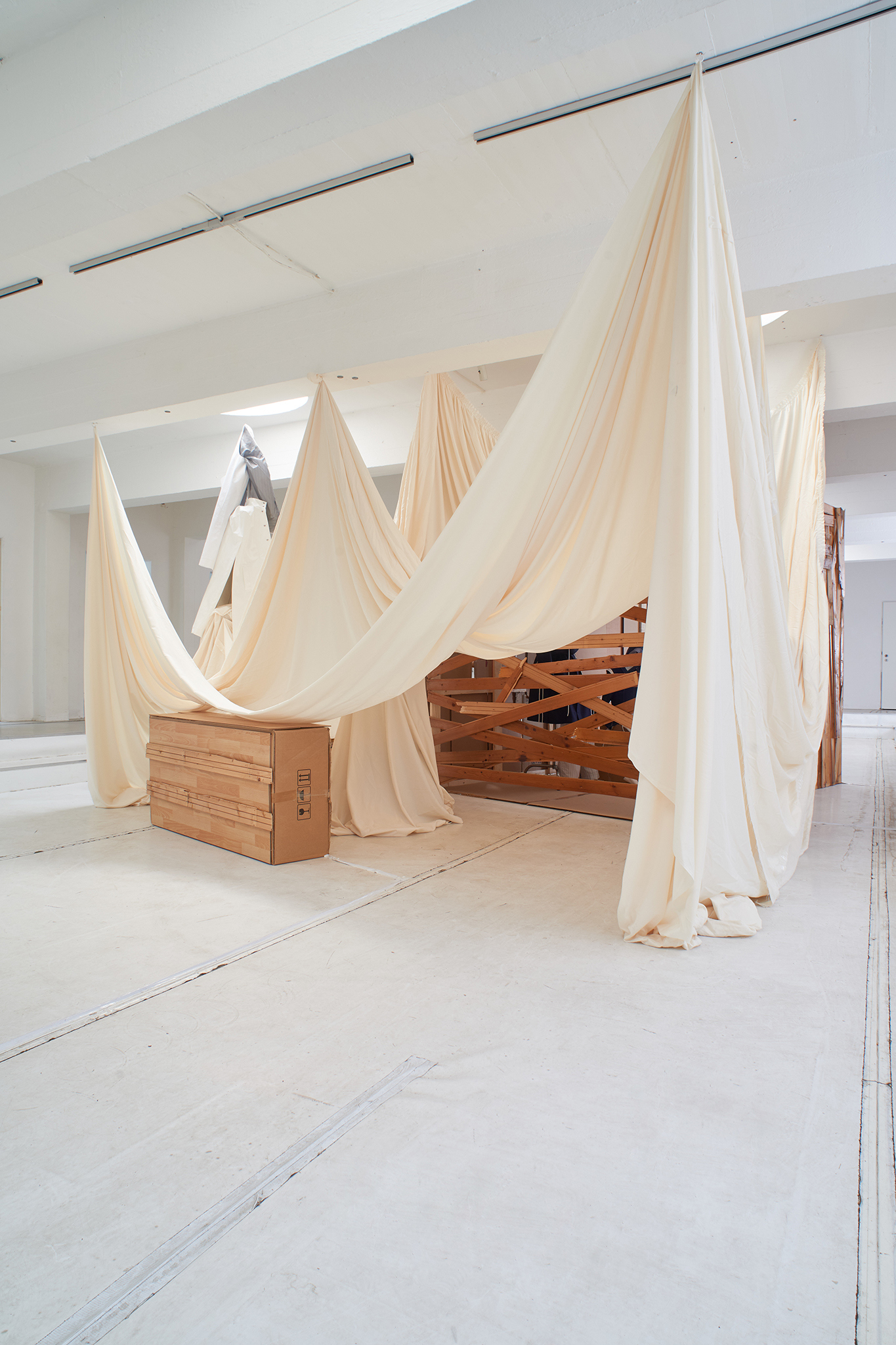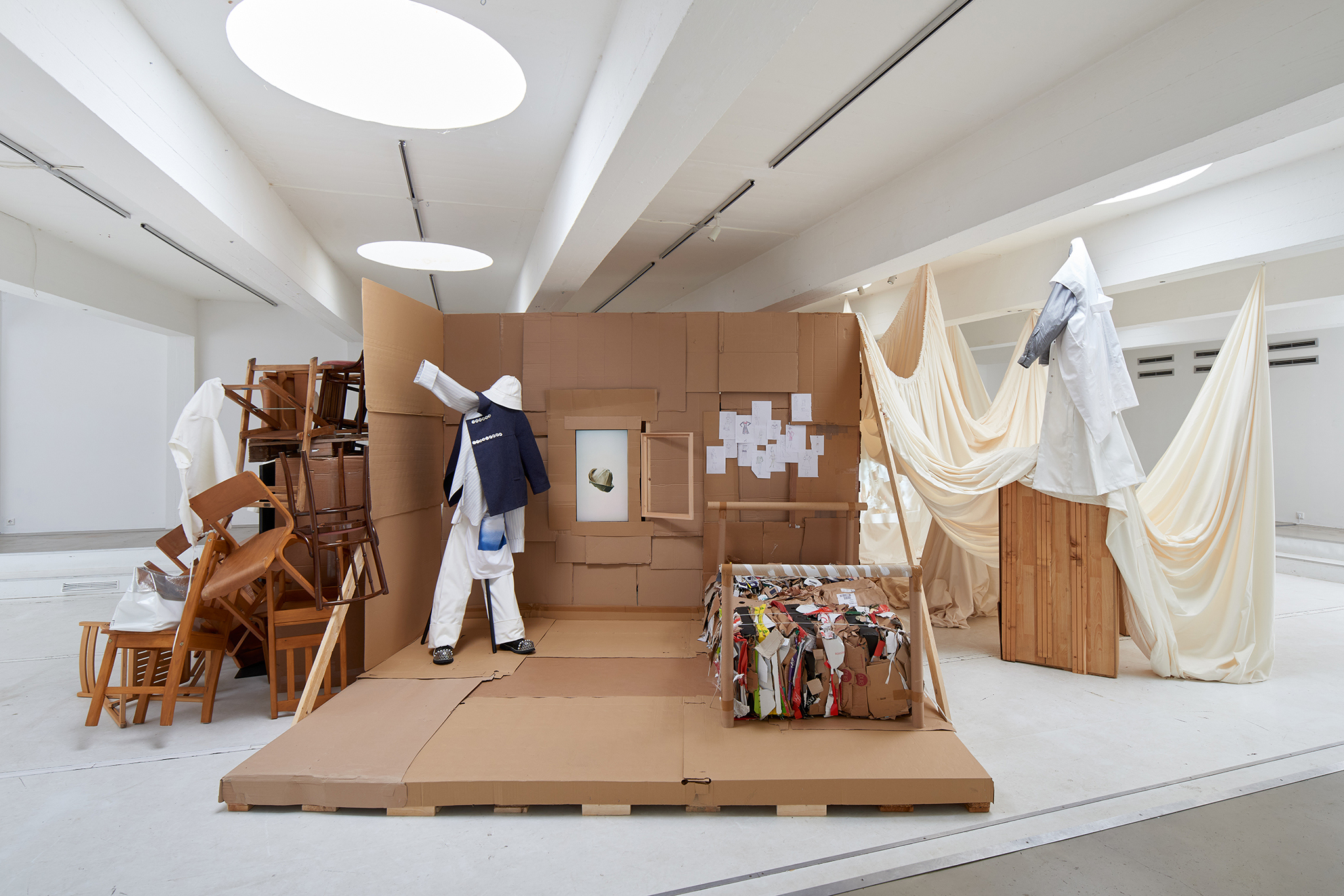 Created by Yannic Joel Hohaus, the installation is titled „Puppentheaterburghöhlenzimmer", corresponding to the childlike attempt to name unfamiliar objects with a cumulation of known words.