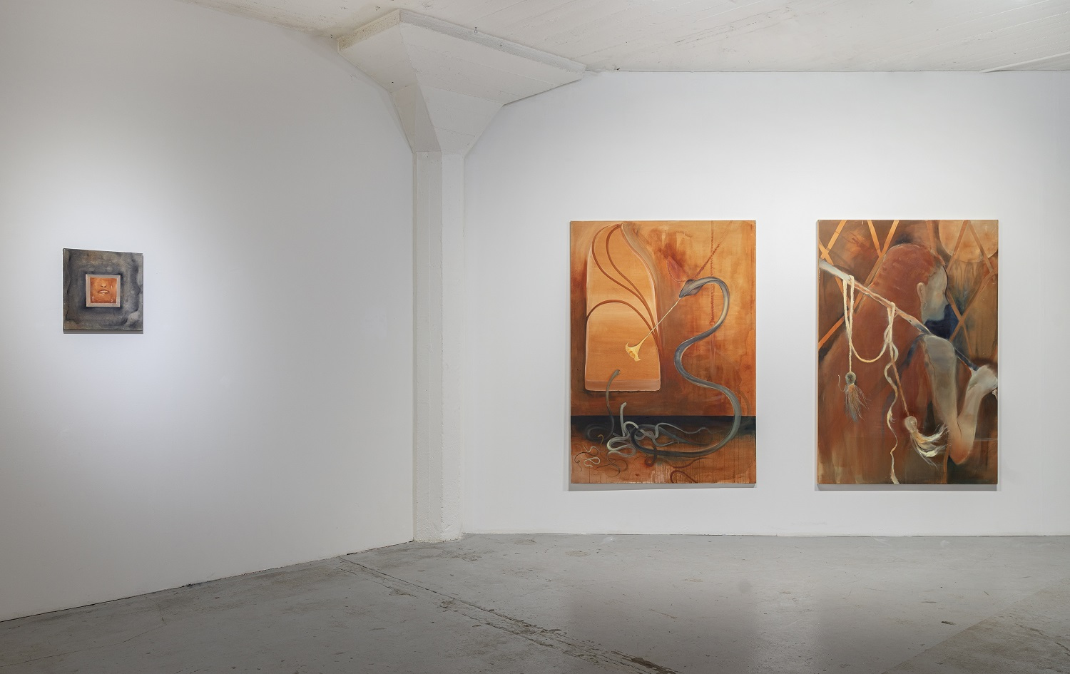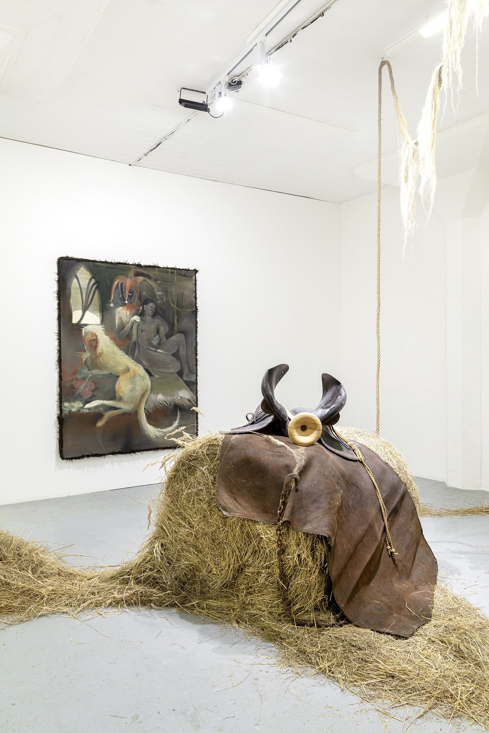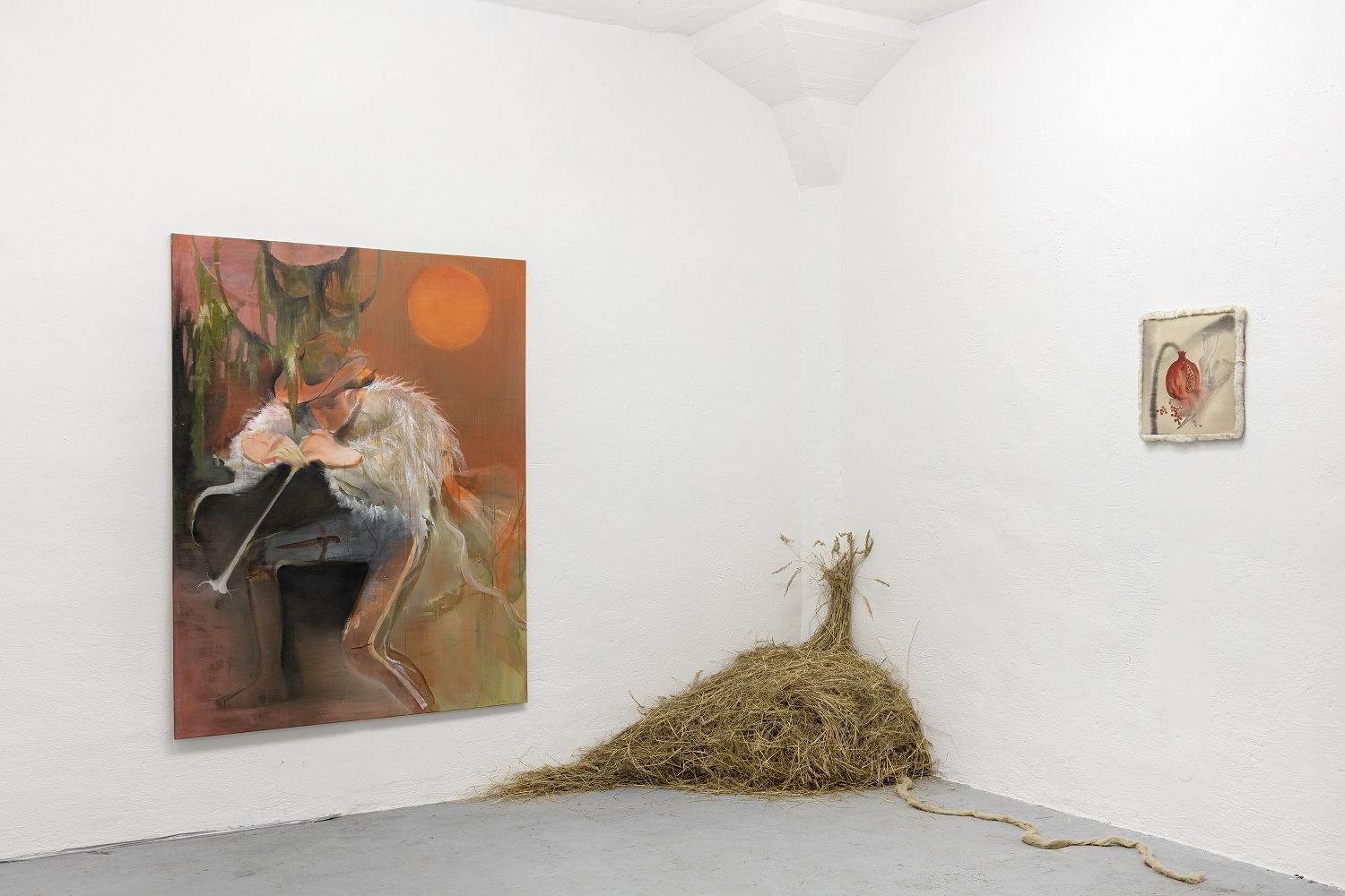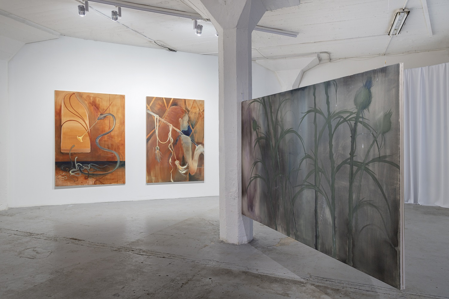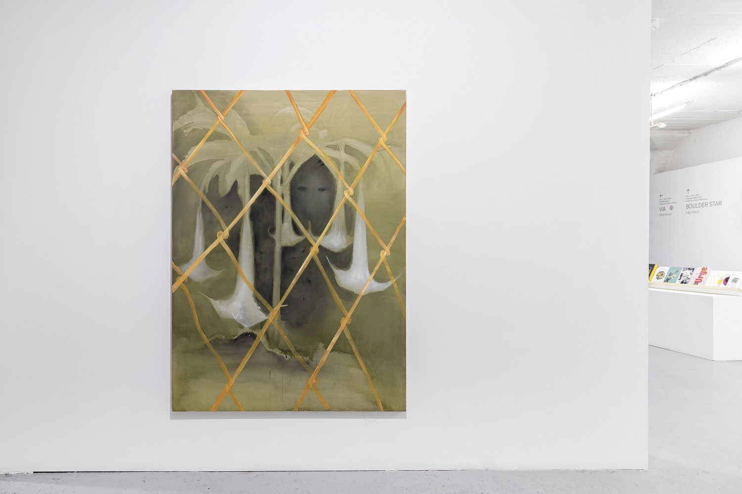 The flute dominates, even though it is a ridiculous instrument that we all learn to play as small children. There is no one who has never played it. I follow up on the shape of the Jimsonweed, which I call the “angel trumpet” in my paintings. Despite its laughable and mischief nature, the flute is a tool for manipulation, hypnosis, temptation and misdirection. The Pied Piper used his flute to control all living creatures. The spines and exaggerated size of the flute represent its dominance. I like to think of the exhibition in a museum-like way, as if there are objects associated with this event, a warning, a curiosity for future generations.
