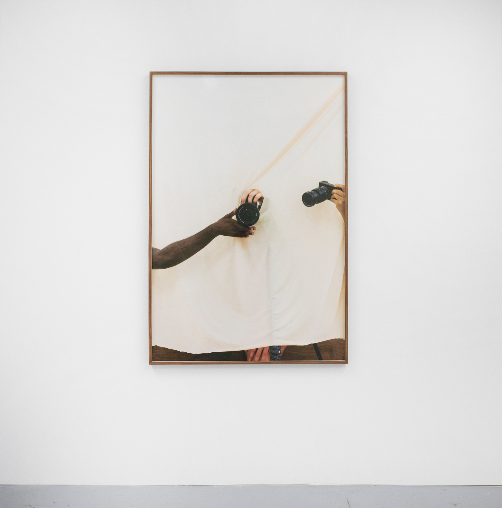The photographic works by Paul Mpagi Sepuya weave together the histories and possibilities within the discourse of portraiture. Taking into account issues of representation and refusal, his works incorporate the roles of the artist, sitter, viewer, and the photograph itself into his address, revealing how they relate to the complex history of studio photography. Nikita Gale also considers the presence and limitations of the body in the process of creating work. In her sound work Keynote Drift, a trumpet imitates car-related sounds, such as crashes, racing, and scenic drives. These sounds are punctuated by quick breaths between instrumental sounds, suggesting the presence of the body in these perceptual shifts between figure and ground.