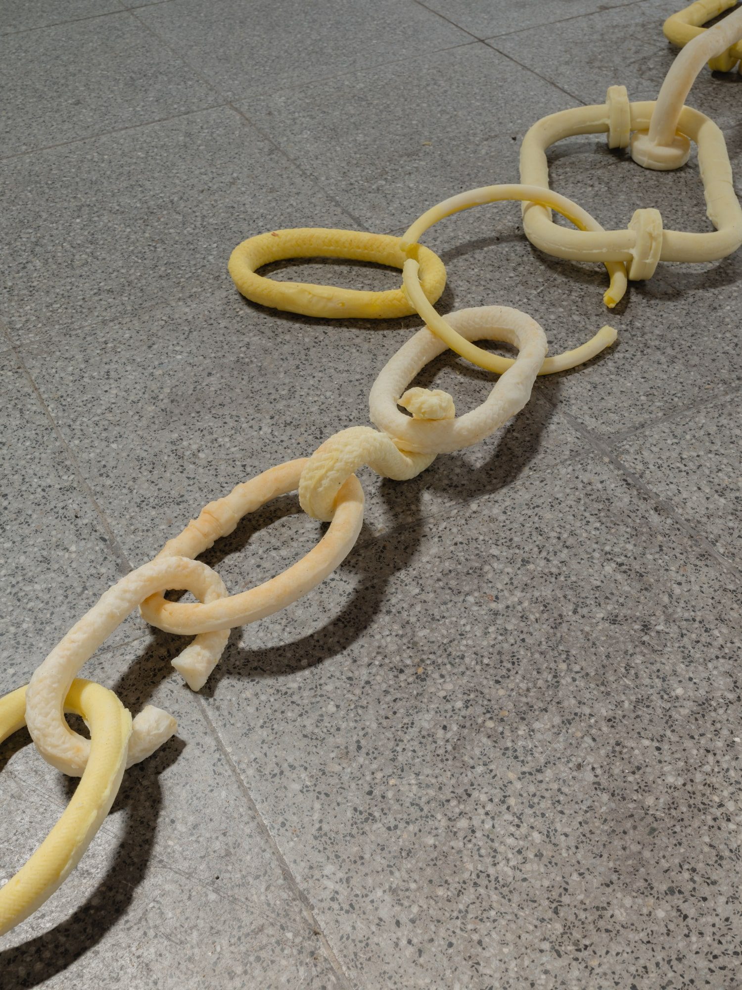 As I write this text I remember images that are diluted with those I keep in the memory of the visit: the movement of soap chains or Ana’s hands, shiny with vaseline. I like to think that the time since the visit to the workshop until now is the same moving image that has been adding layers of perception.