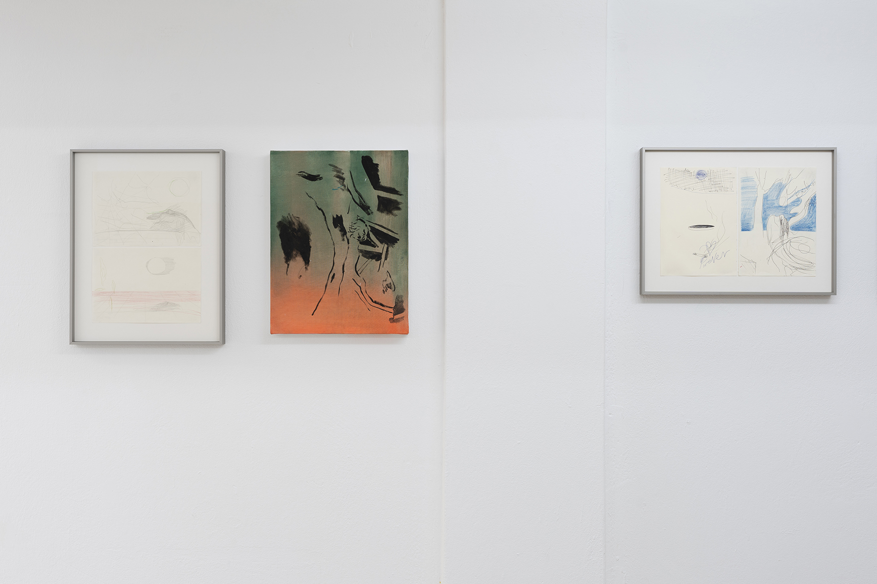 In the studio the paintings are laying on top of each other, ready to reveal themselves.