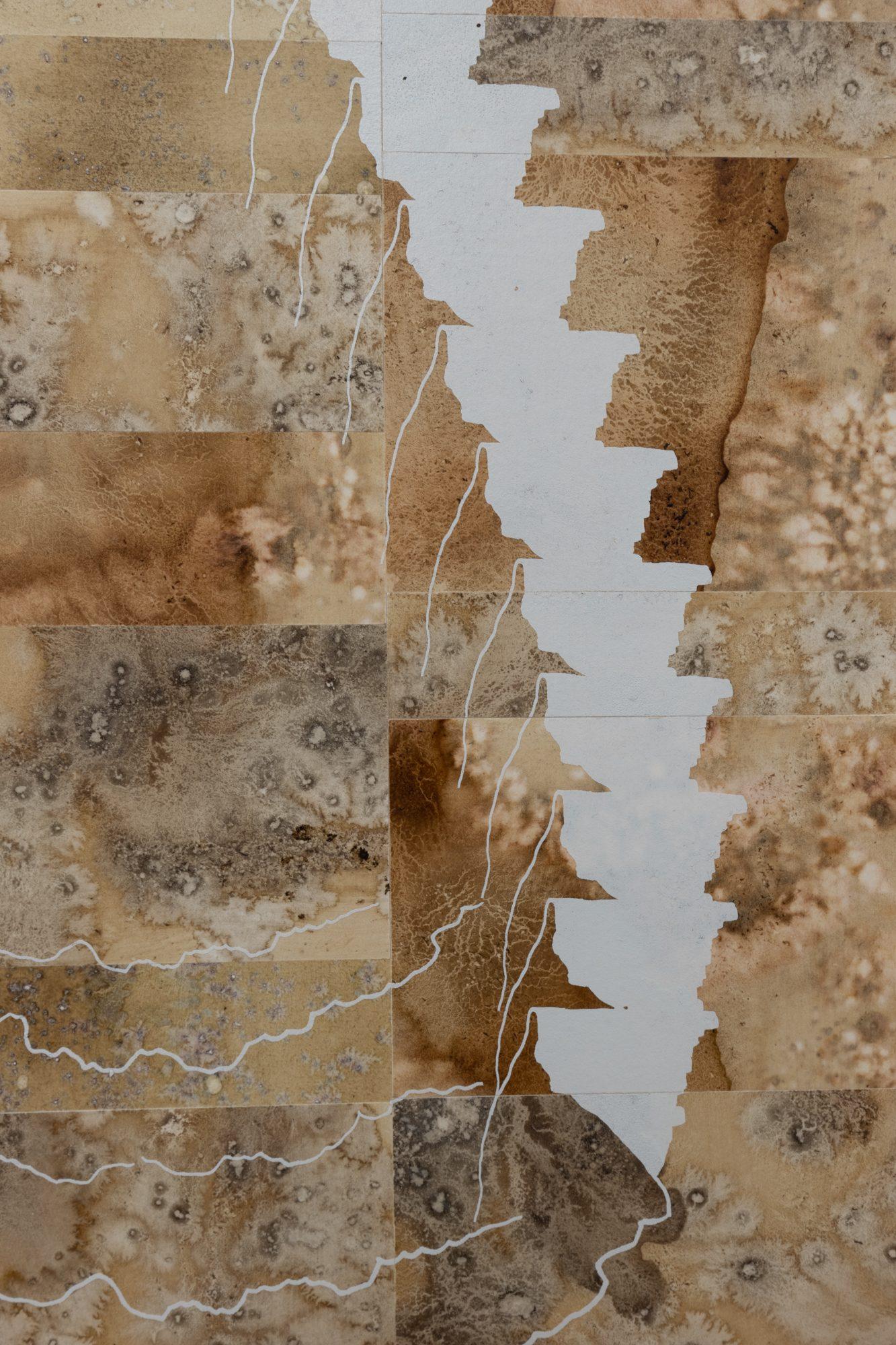 She often experiments with simple self-made techniques and in doing so, creates ambiguous as well as haptic surfaces. To her mind it’s a human need to sense the world surrounding us. Think about the origin of haptic: haptikós, ‘able to come in contact with’. The inner-self gets in contact with the world by finely-tuned physical nteractions.