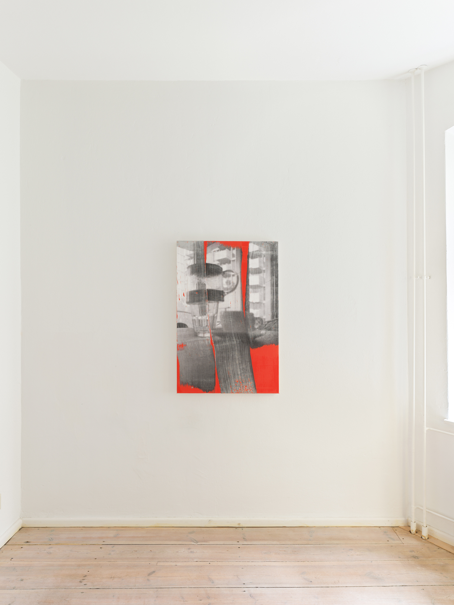 Tatjana Danneberg’s works balance on the verge of photography and painting, with their subject matter being domestic objects, items, friends and family caught in intimate everyday scenes. She extends these temporary glances captured first by photographic means, then printed on specific films that are transferred onto canvas using gesso. Through manipulation and deconstruction, Danneberg explores the possibilities of painting with photography and what can unfold thereafter – brushstrokes break up the photographic image, gesturally turning it into an expressive painting.
