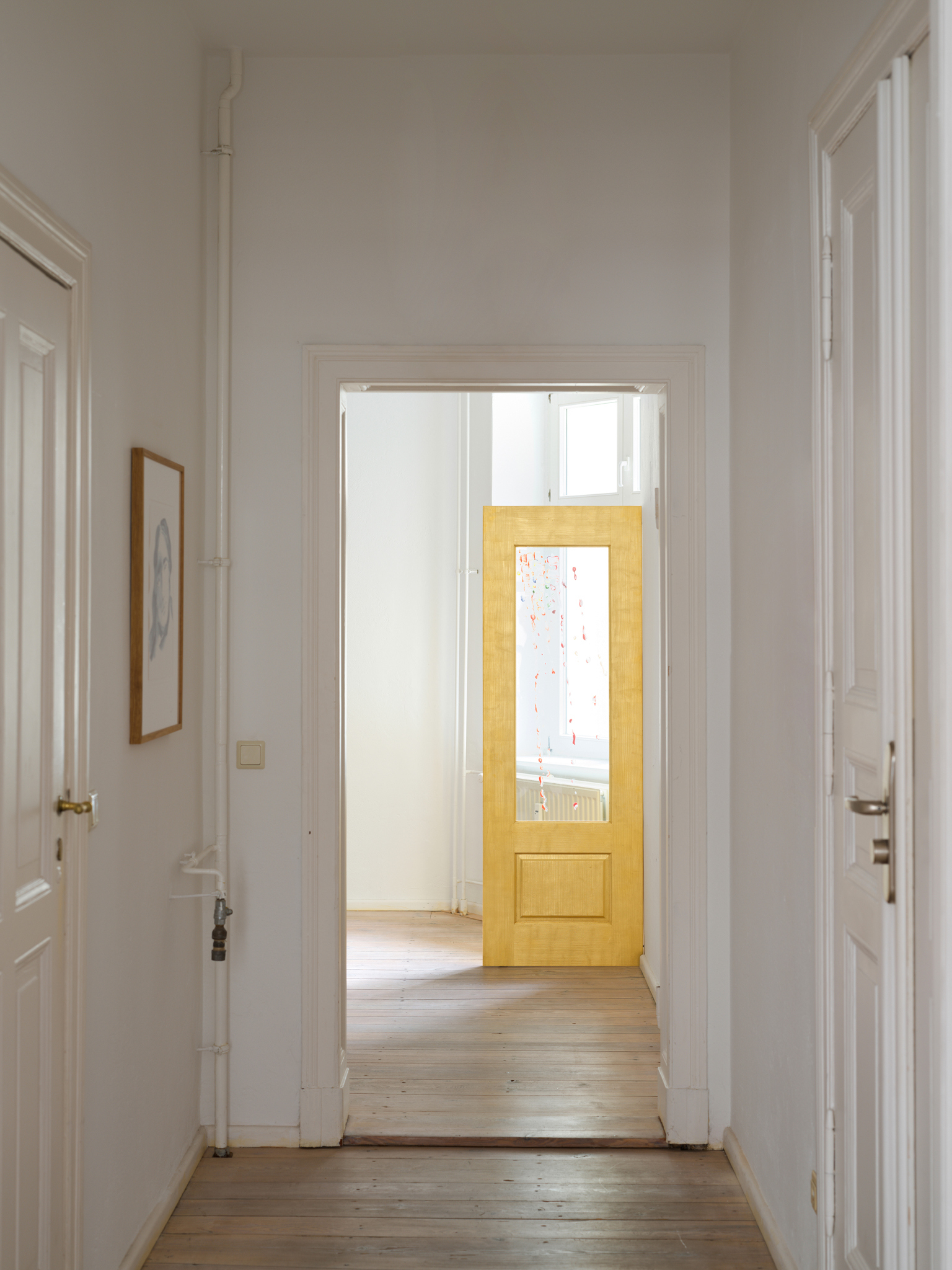 In her artistic practice, the Scottish sculptor Karla Black prioritises material experiences first, and aims to evoke a physical response in the viewer. Black wishes to keep the materials raw, and thus the potential of the creative moment within them alive. In the door sculpture "Family Land", we see how her work questions boundaries between interiority and exteriority, becoming conflicted in their own way.