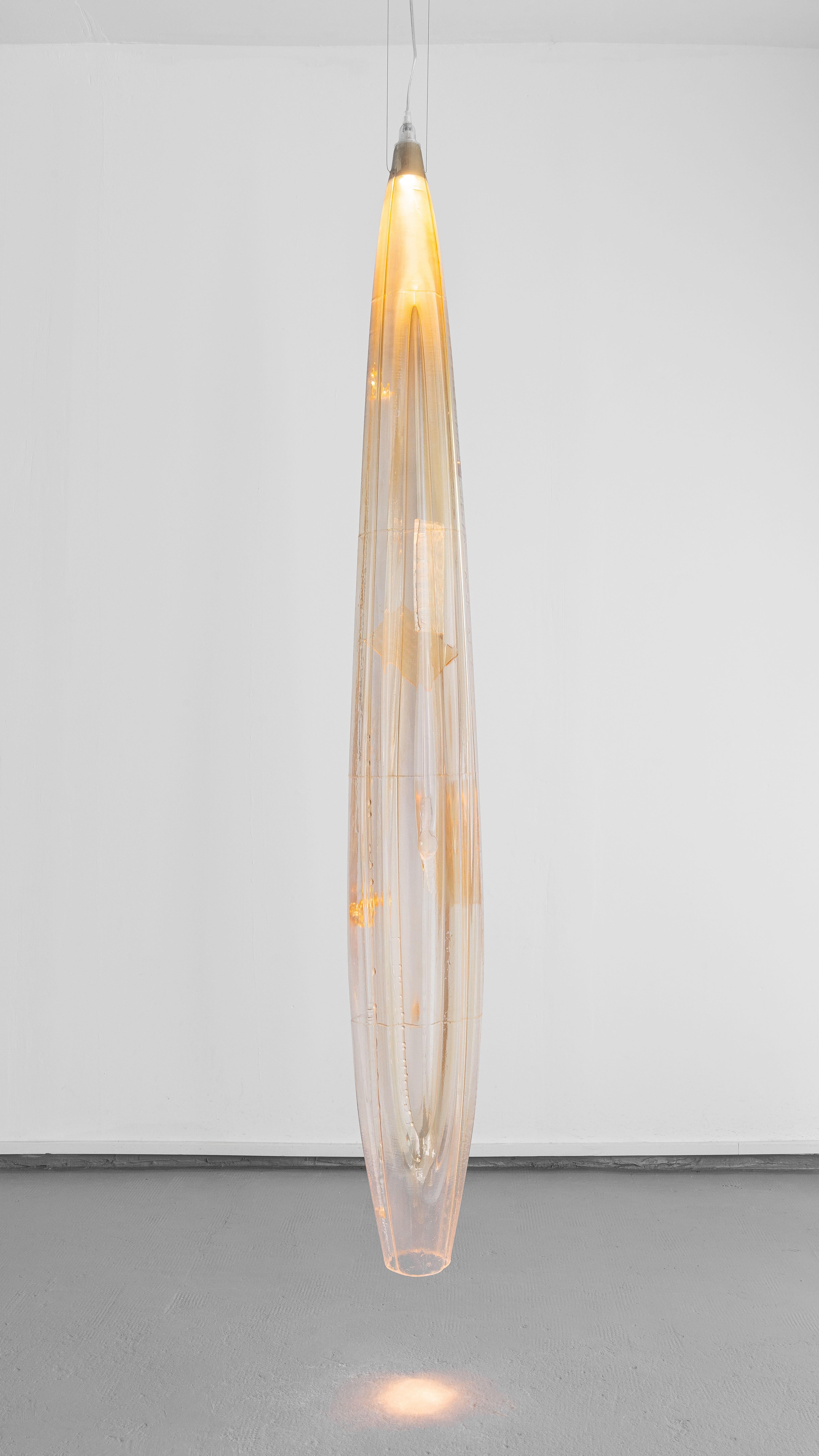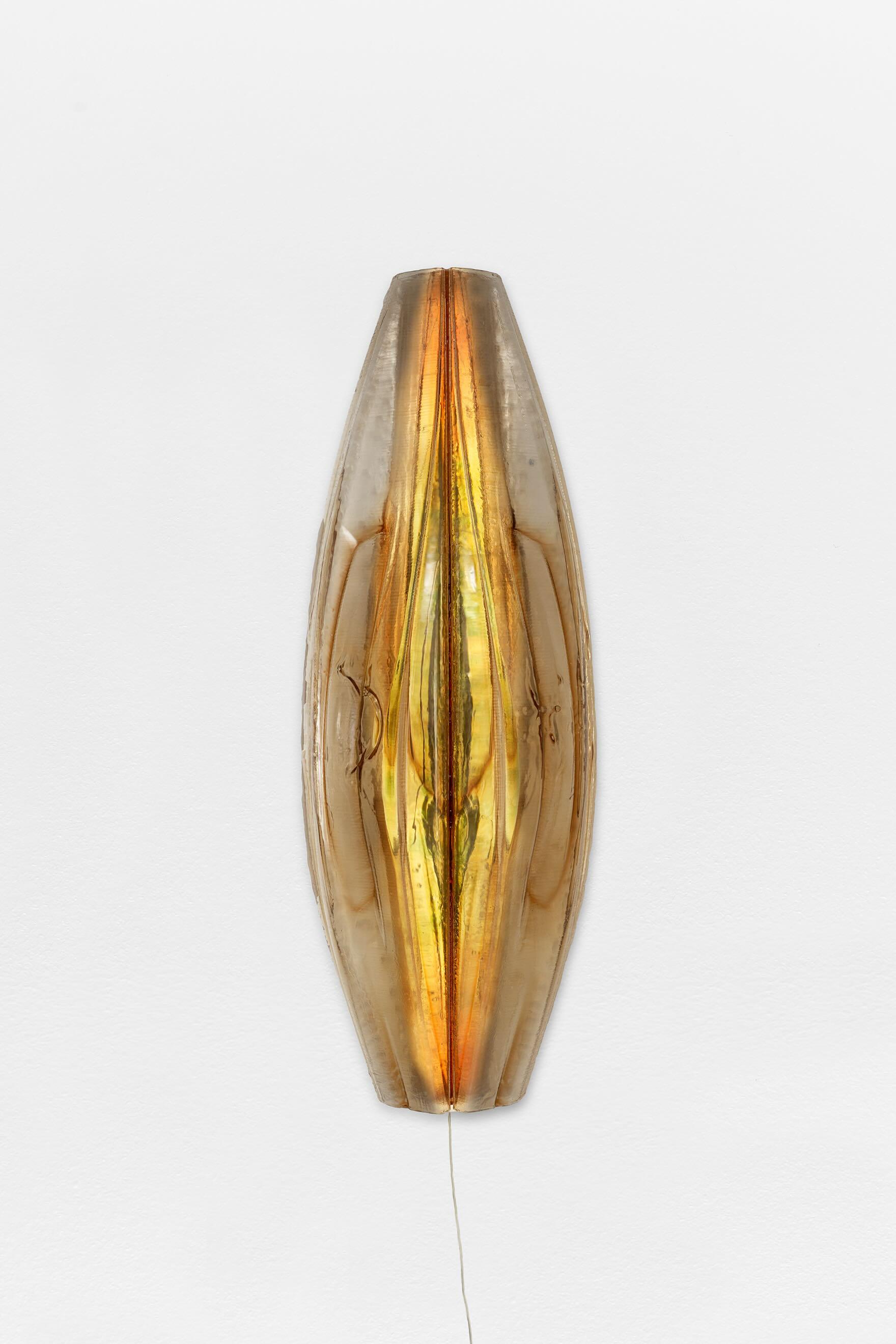 Kim Farkas, by layering composite materials through plays of transparency and softly moiré reflections, creates worlds within which objects are revealed. In this internal activity, all forms, ideas, and materials become channels of both political and spiritual power. The result is captivating and vivid sculptures, visibly marked by hybrid forms inspired simultaneously by technology and the body—swarming and captivating, inherently active within themselves.