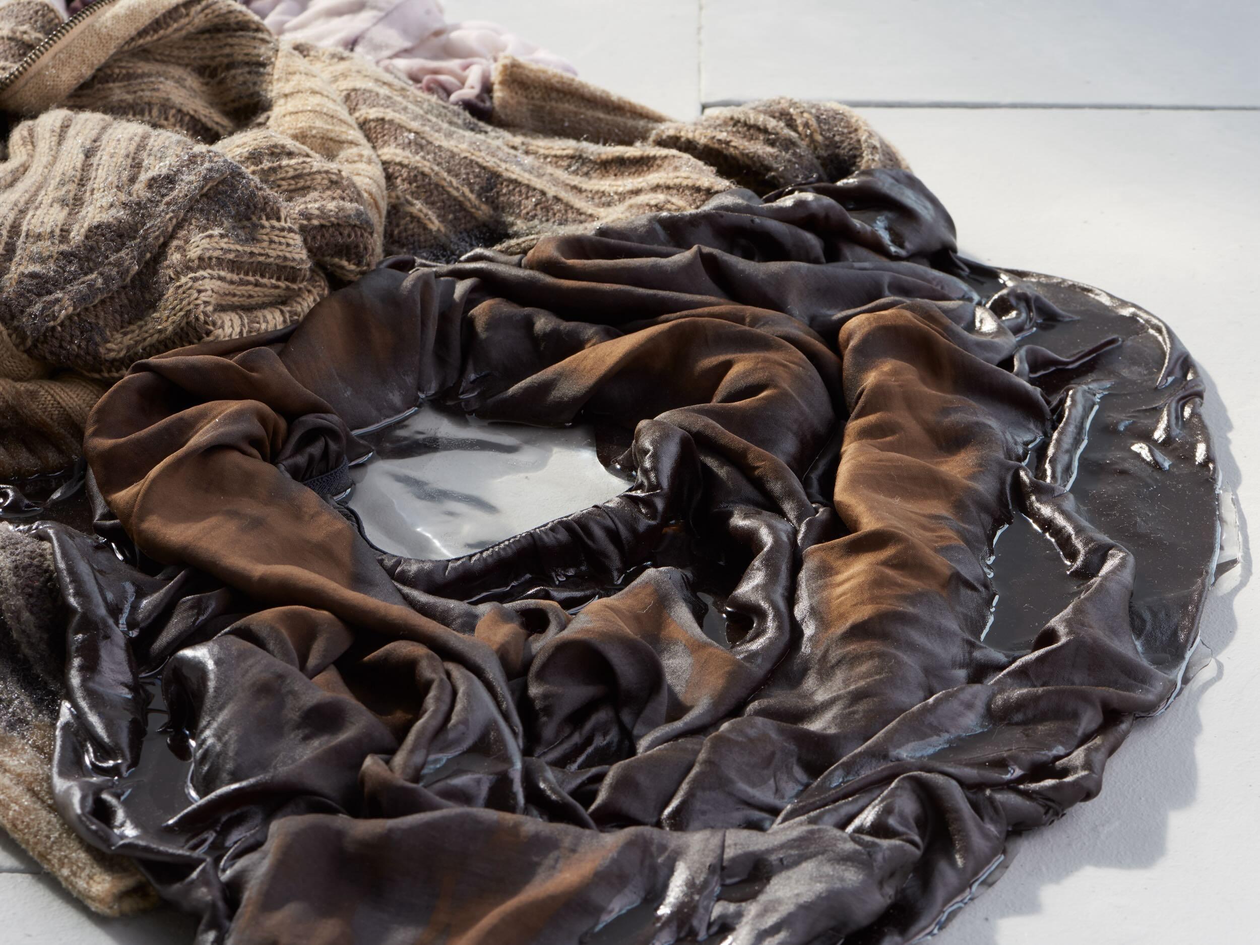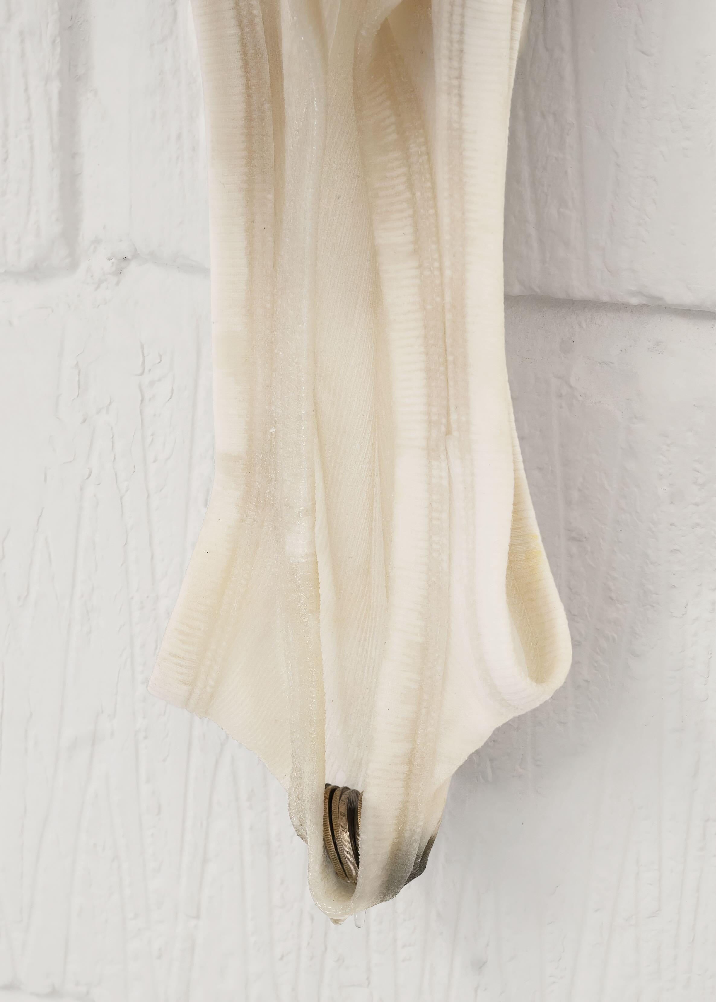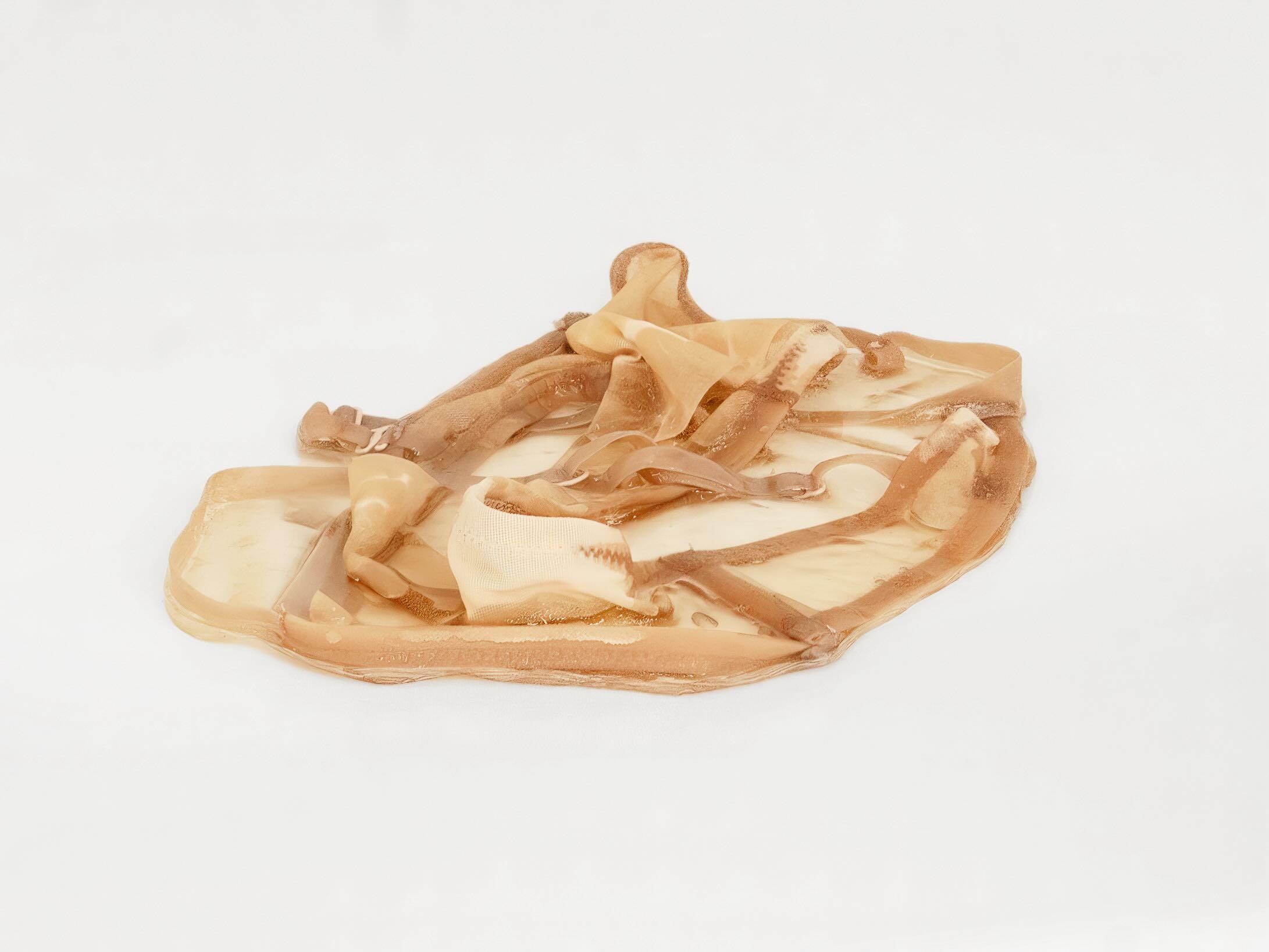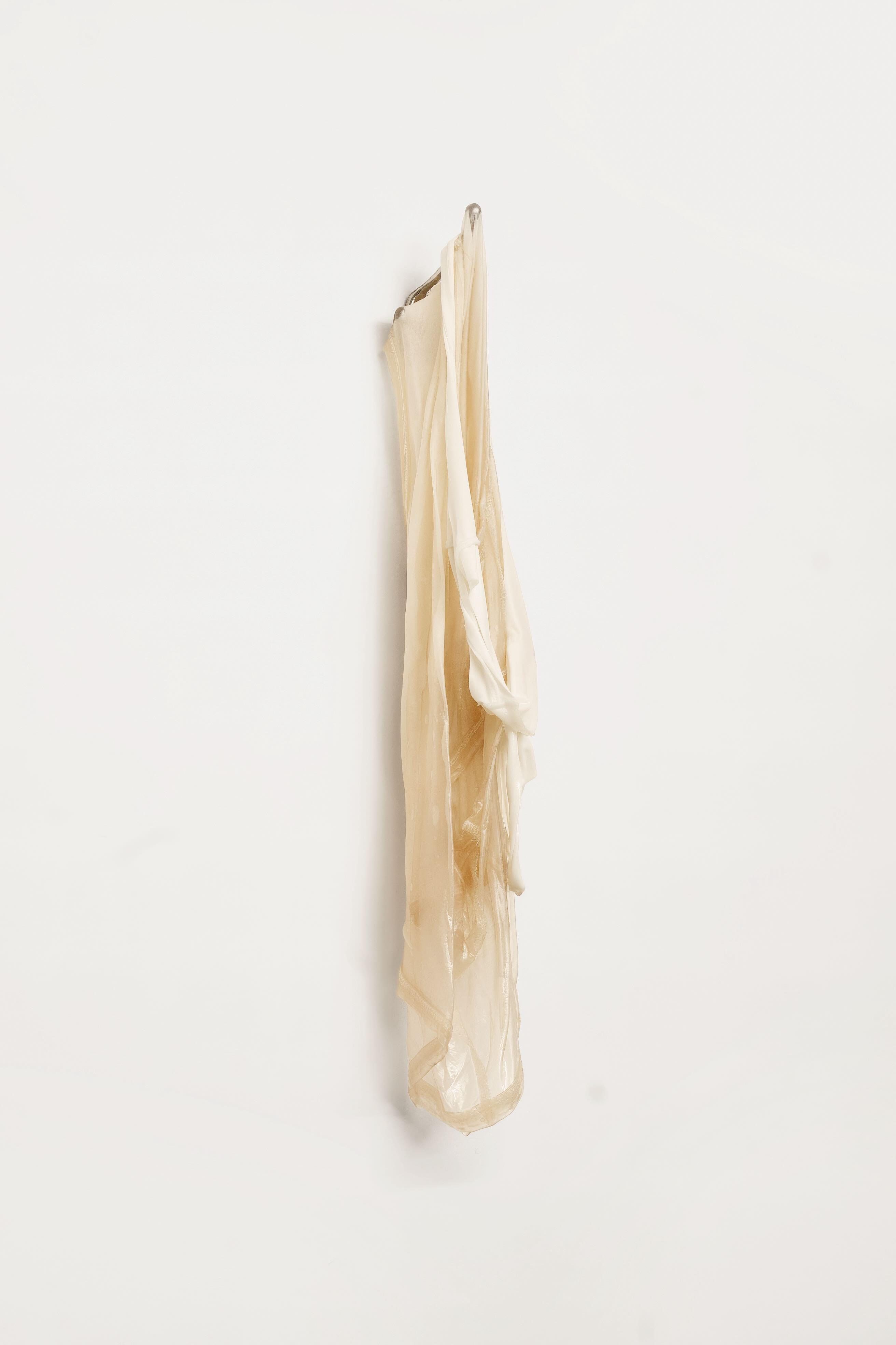 Isabella Benshimol Toro, whose practice ranges from performance to photography, sculpture to installation, primarily works with used clothing, epoxy resin, and silicone. Her work aims to capture in time the fleeting actions, gestures, and sensations of daily domestic life. She creates a series of monuments to the unconscious and intimate reactions of the body. Her focus lies on moments ranging from throwing sweaty clothes on the floor to the act of meticulously caring for them by hanging, ironing, and drying them. Of crucial importance is the timeframe in which the porousness of a wet white shirt covers the redness of her skin. All her works tend to respond to unusual yet familiar domestic actions and gestures that, in turn, become bodily, often teetering between a sense of pleasure and discomfort, cleanliness and dirt.