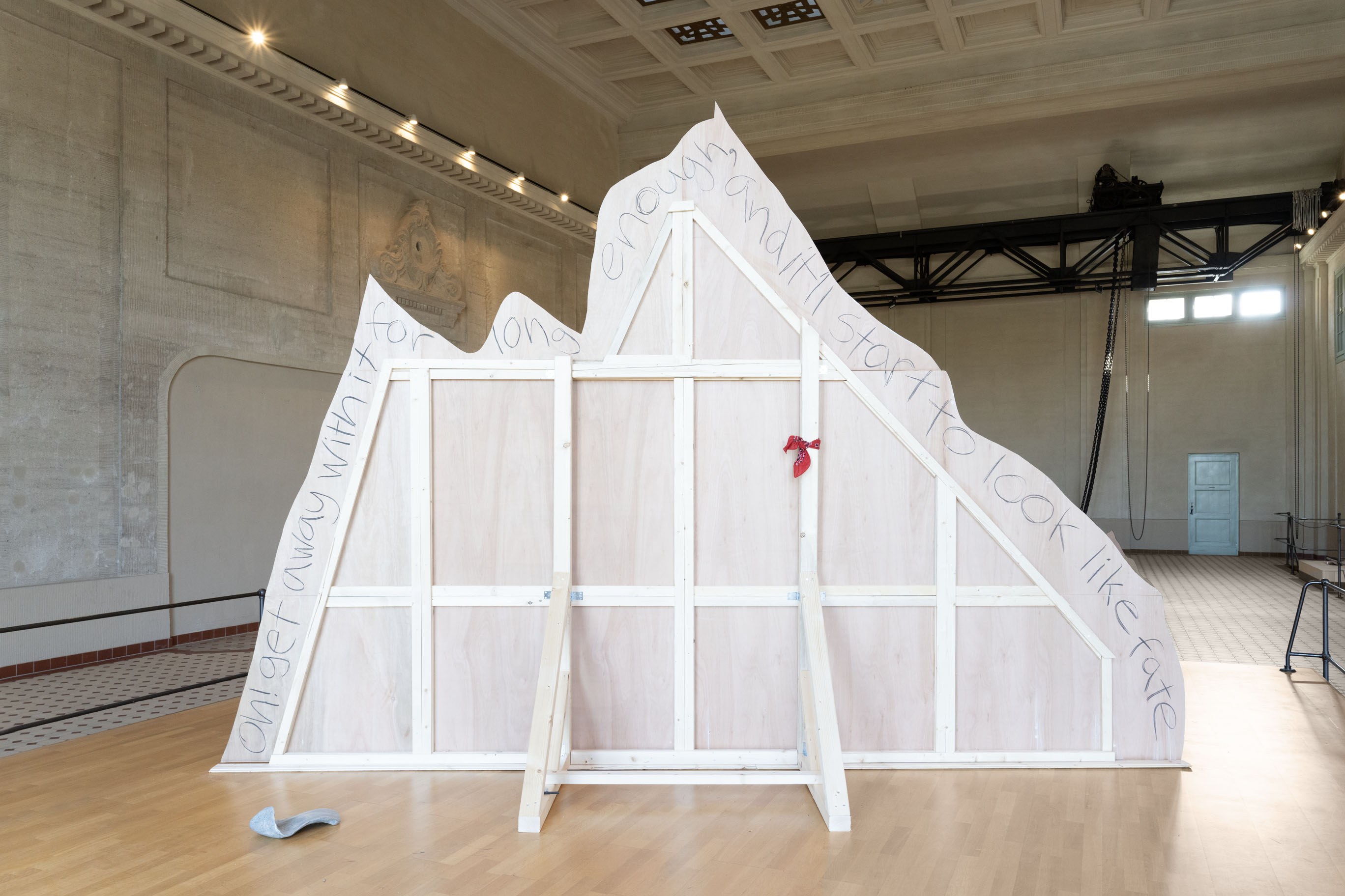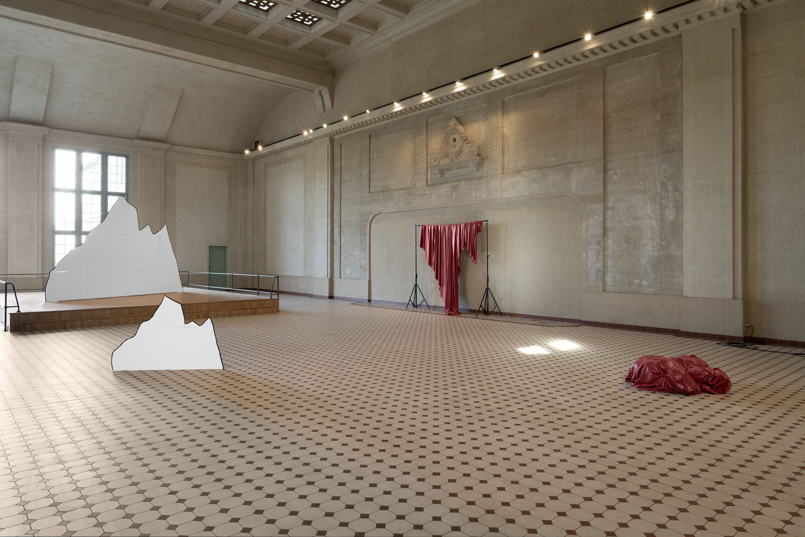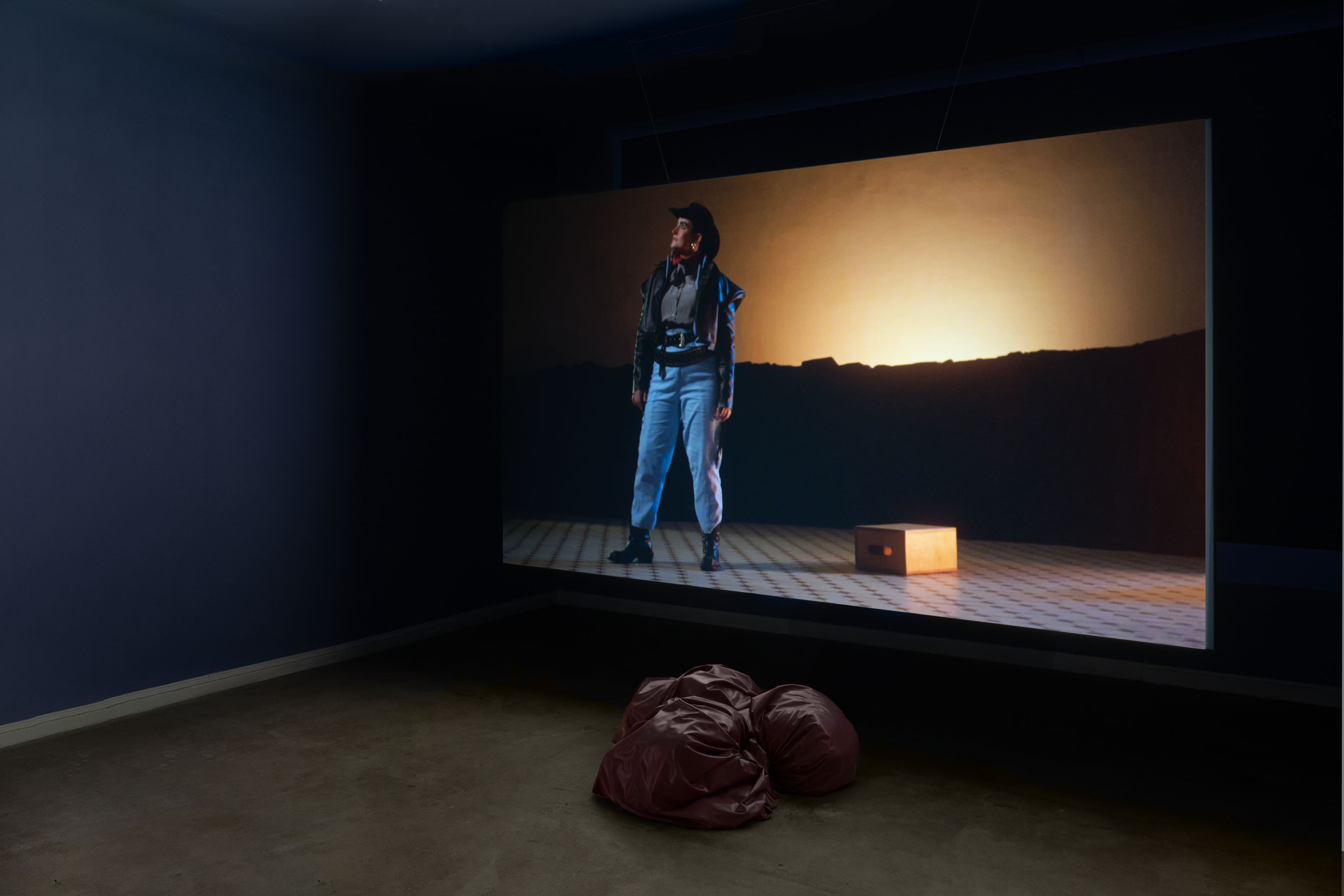 Melanie Jame Wolfâs exhibition The Creep at E-WERK Luckenwalde includes a new film installation, ceramic works, textile sculptures, and performance. It is a continuation of the visual artist and choreographerâs ongoing 'creep studies'. In Walter Benjamin's concept of 'mythic violence,' oppressive power is understood as being accumulated and maintained by disingenuously performing itself as natural law. As an exhibition, The Creep enacts a poetic meditation on the dynamic between violence, desire, and performativity â ostensibly in the form of a duet between an outlaw figure and a mountain. Wolf plays these tensions by orchestrating a conversation between the moving image and the sculptural textures.