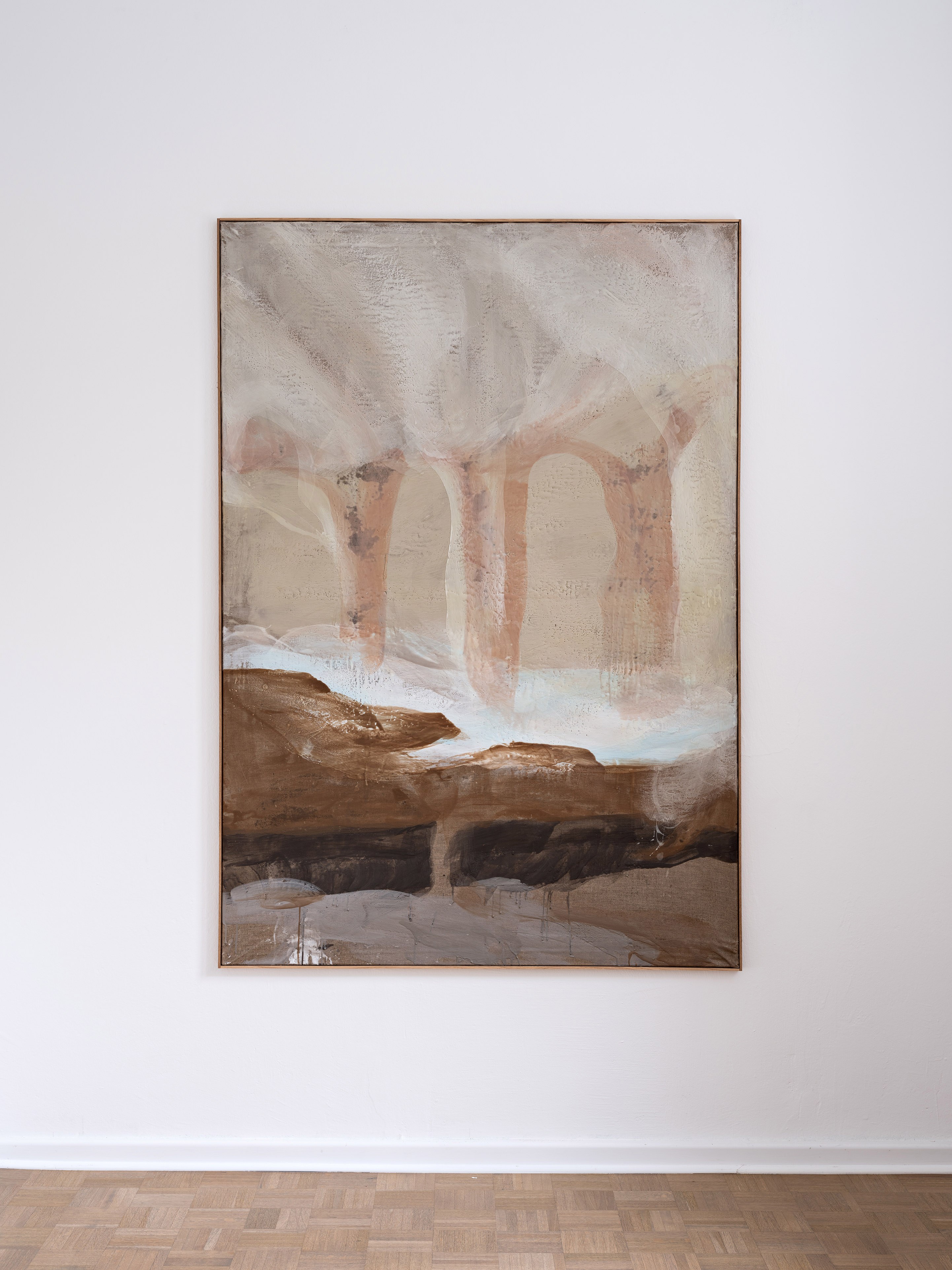 Next year, the German Romantic Casper David Friedrich will celebrate his 250th birthday. His paintings are declarations of love for the nature that surrounded him. During his hikes he sketched the landscapes of East Pomerania, Saxony, the Elbe Sandstone Mountains and the Giant Mountains; in his studio he combined them to create new experiences of nature, always under the premise of adding something abstract to the purity of nature. Even today, the paintings invite contemplation, perhaps also because it is becoming more and more apparent that the global climate crisis is not coming, but instead is already and that we urgently need to work on solutions to preserve many animal species, including our own. Suppose one contrasts Friedrich's landscapes with the man-made interventions in today's landscape of our planet. In that case, the brutal testimonies of the Anthropocene, resulting from overpopulation, urbanization and food production, can be clearly seen. With this perception, Analisa Teachworth takes up the abstracting understanding of Casper David Friedrich's landscape depictions and, with the help of artificial and natural materials, creates more serene, indefinite places, paths, and worlds with the intention of being abstract and clear at the same time, using a language that does without standardized vocabulary. Bound in the artworks, the sensitive observer uses this practice to create moments of contemplation, regret, fear, and consequently a sublimity that resonates in Casper David Friedrich's landscapes.