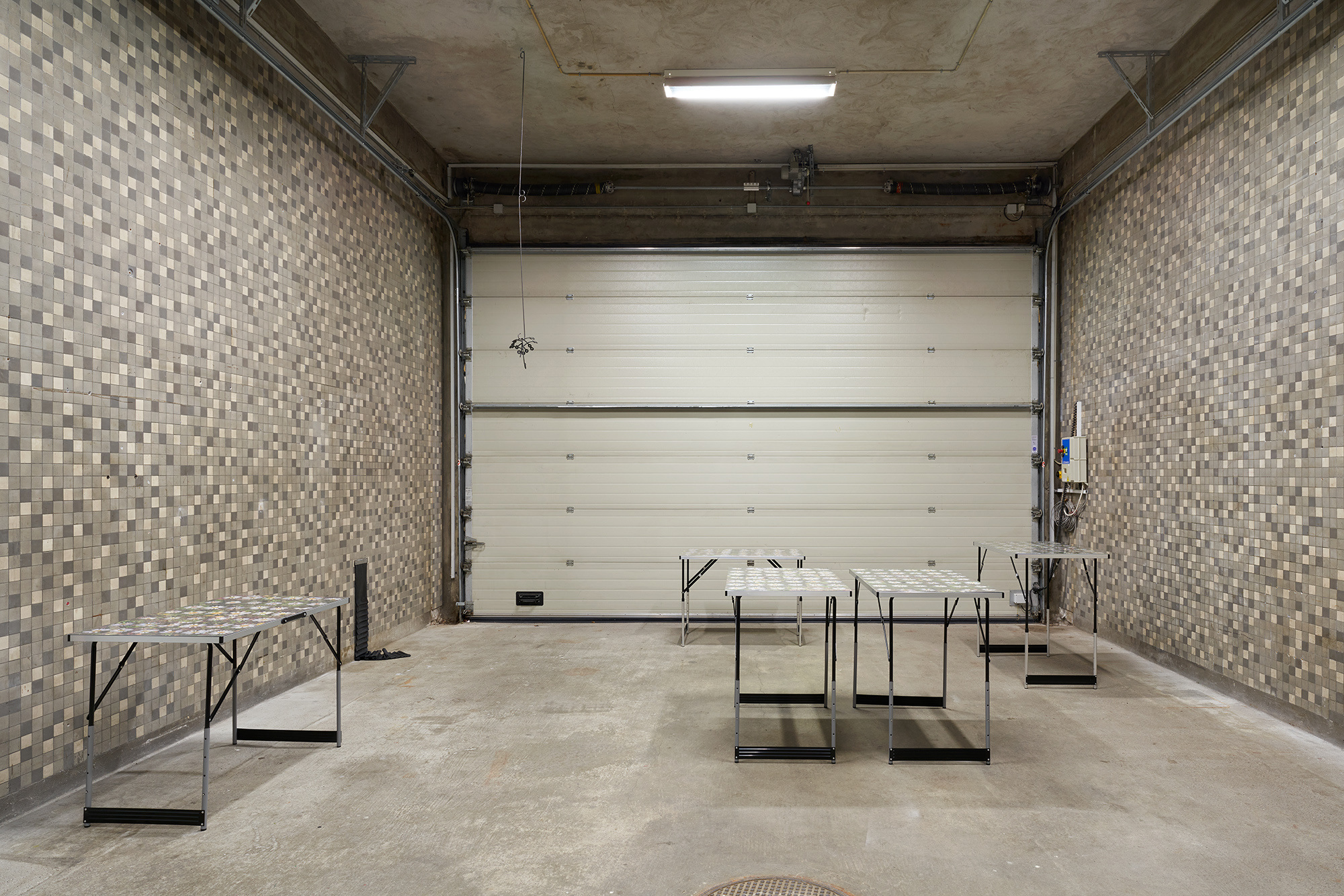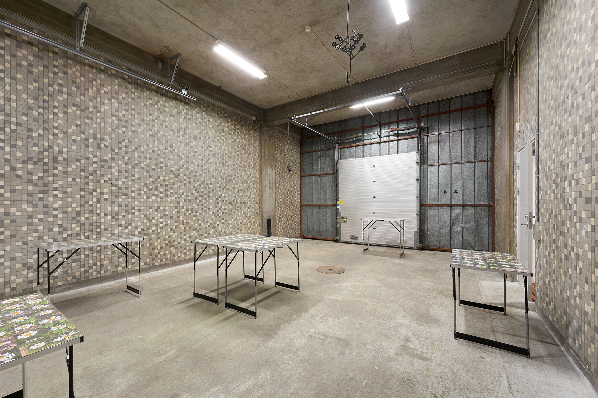 Mikko Kuorinki, Daisy table (1-6), 252 digital photographs of flowers belonging to the daisy family, inkjet prints on archival papers wrapped in protective plastic sheets, foldable tables with adjustable legs, 100 x 60 cm, variable heights.
