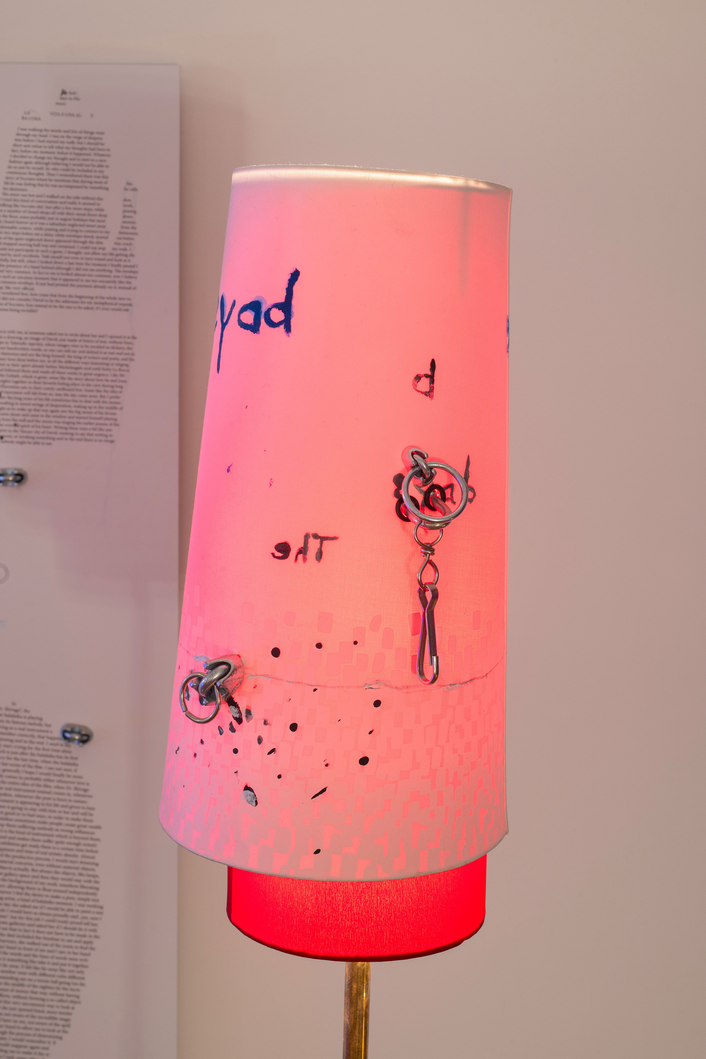 Josef Strau, *Days at Florence – The Lamp as a Printer*, 2011, C-print on aluminium Dibond, metal, ink, glue, modified copper lamp and overworked lamp shade
