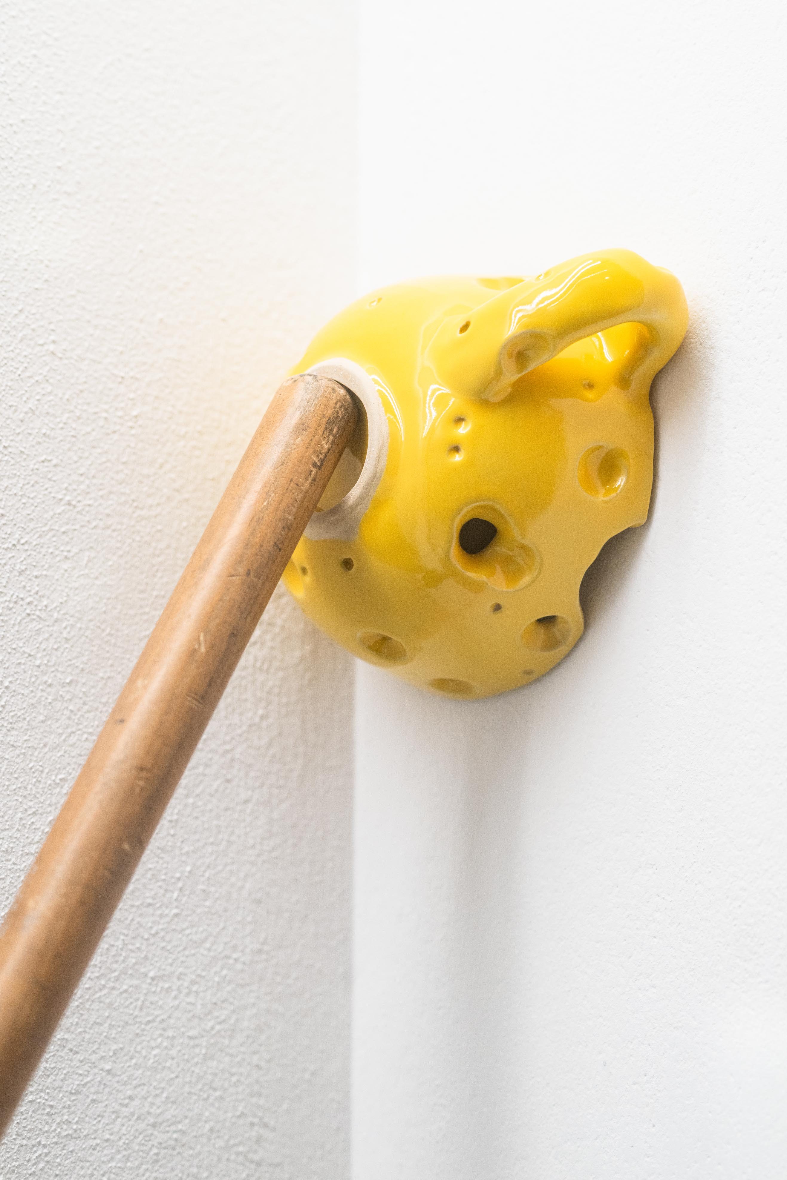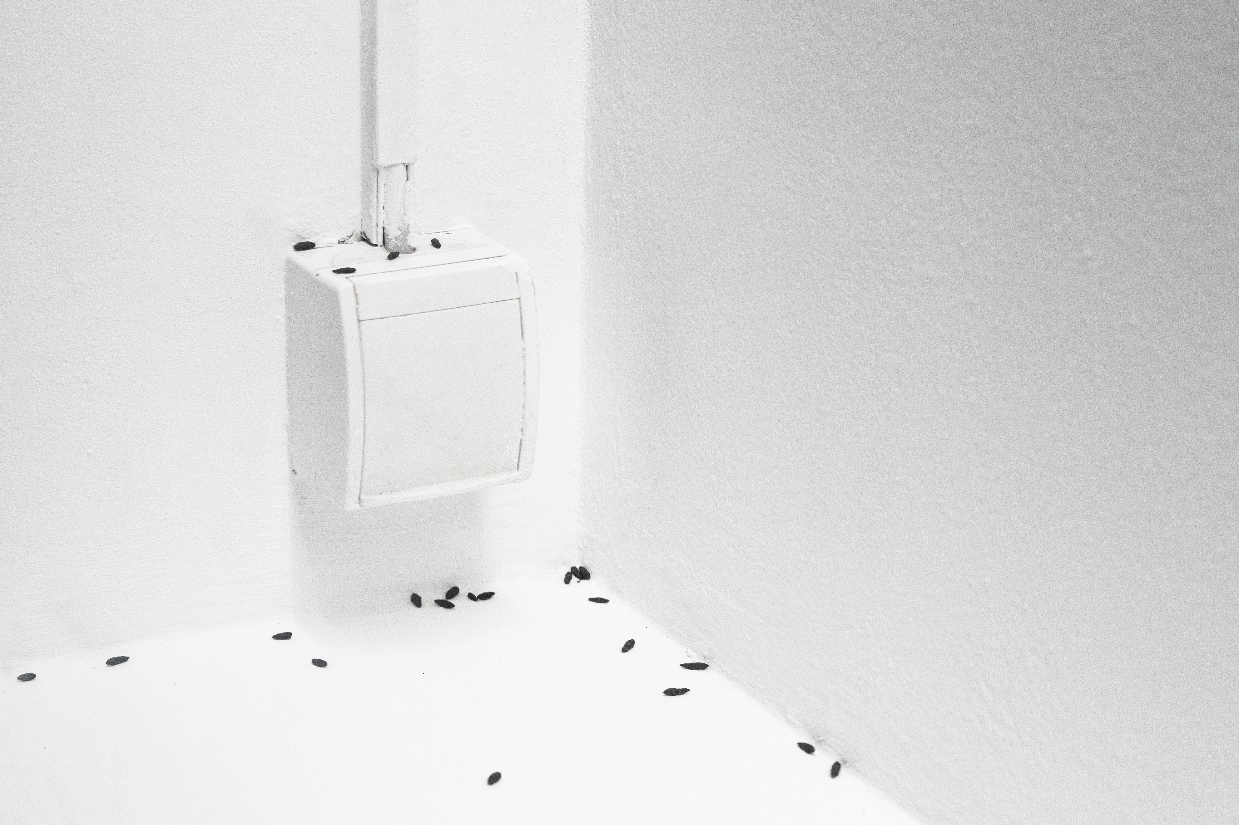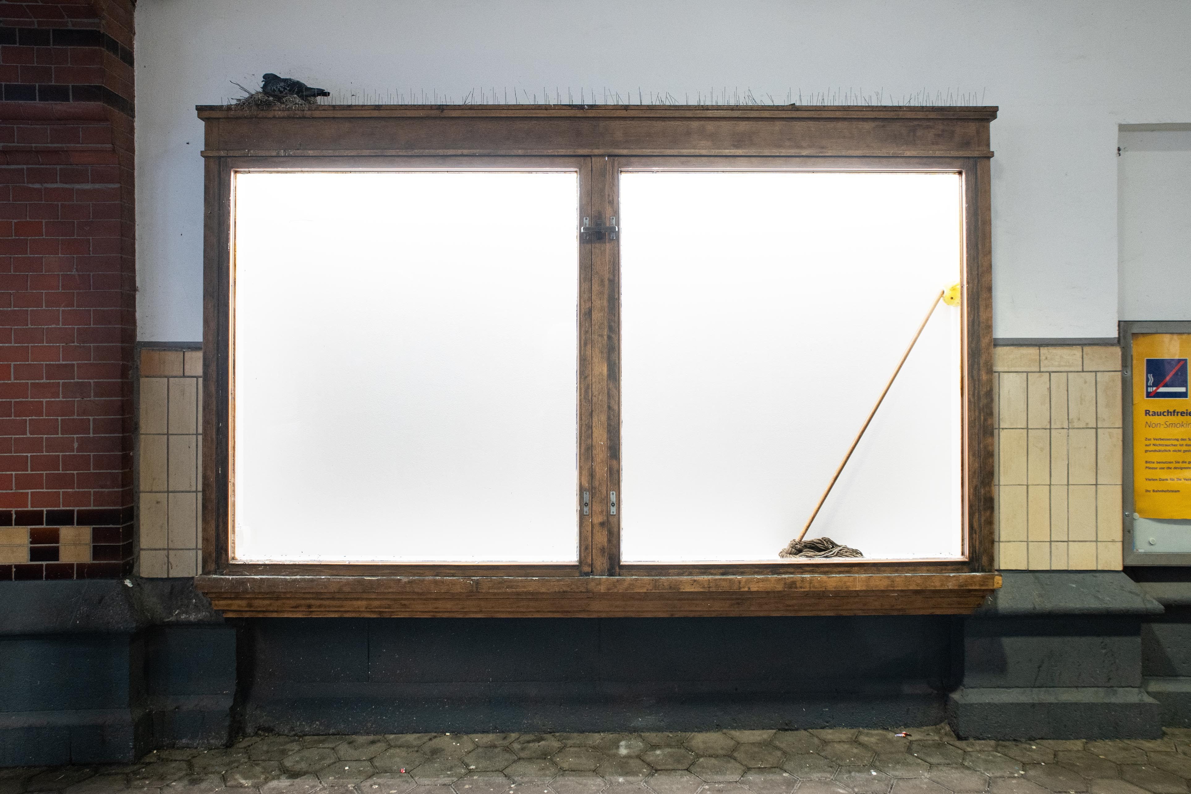 In his solo exhibition in the showcases, Akinori Tao takes up the trail of human and animal traces that can be found in Harburg train station. The artworks appear as subtle interventions in the exhibition space, just as inconspicuous as the remains in the station. In Tao's work, the fleeting gesture of a finger-painted heart in the condensation drops of one's own breath becomes a permanent installation. The tension between ephemeral moments that are preserved using classic sculptural techniques is also reflected in the three other works. These show conceptual, associative hunting practices: a playing card as a fly swatter with a swallow motif, the natural enemy of insects, and a catching device for mice. The exhibition humorously fans out the moment of deception. The principle of mimicry reveals a common feature of art and passive hunting: the representation of what is found out there in the world. To be seen remain the traces of a hunt, but whether it was successful remains an open question.