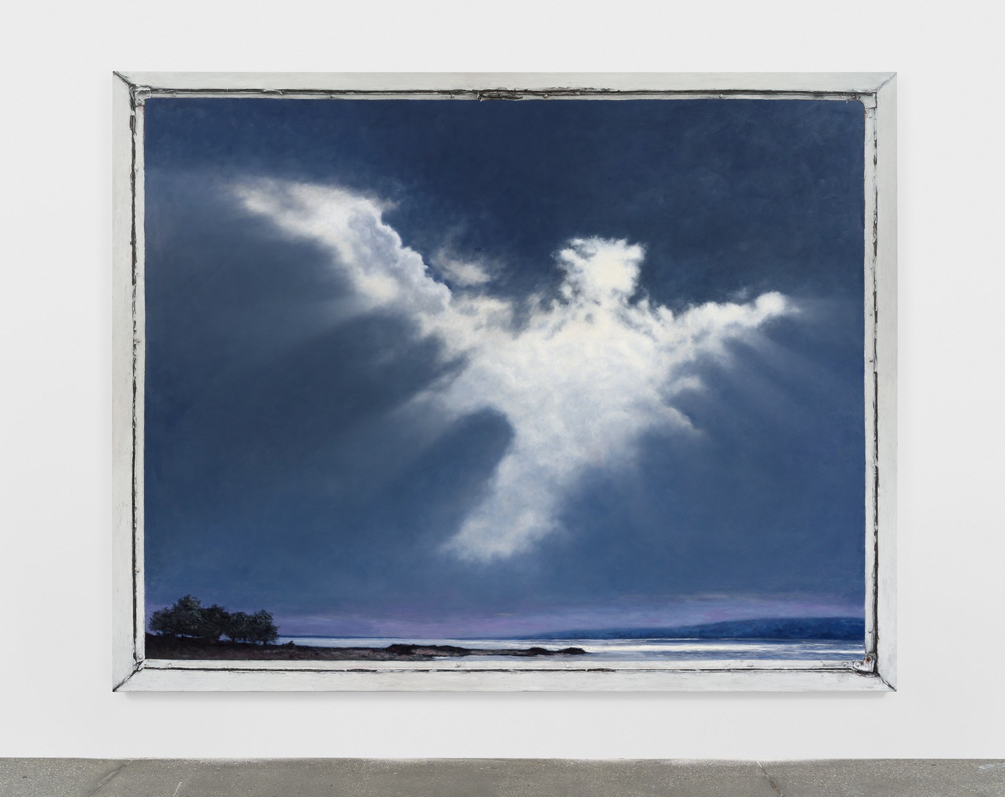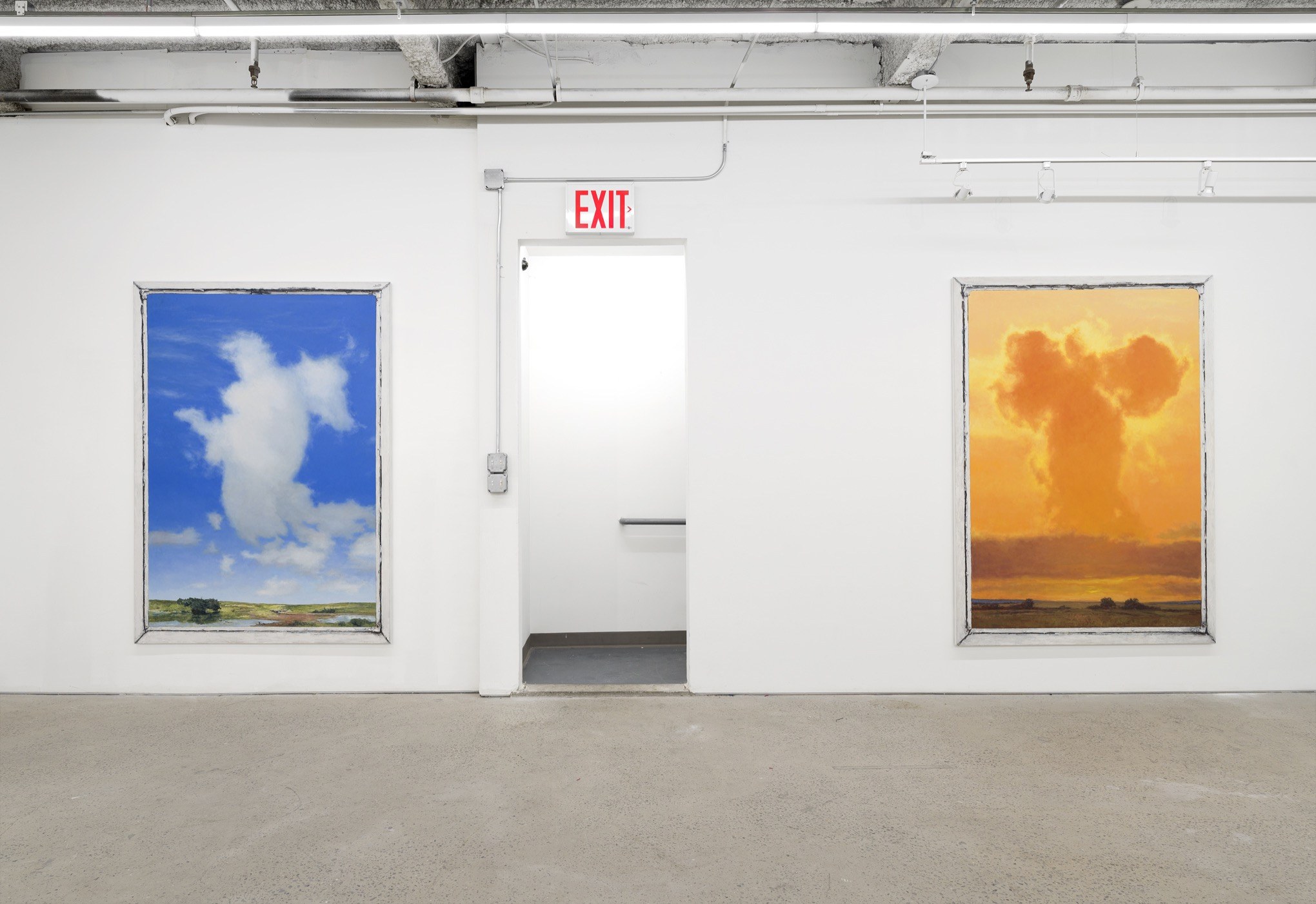 Eight Paintings Proving Angels Are Really Watching Over Us is a modified found title lifted from a viral listicle that collected and documented the choice moments in which clouds form uncanny resemblances of angels. The article and its title fascinated Roest: the implied challenge, the mental leap it asks of the reader: cloud, photo, angel, and proof of it even!