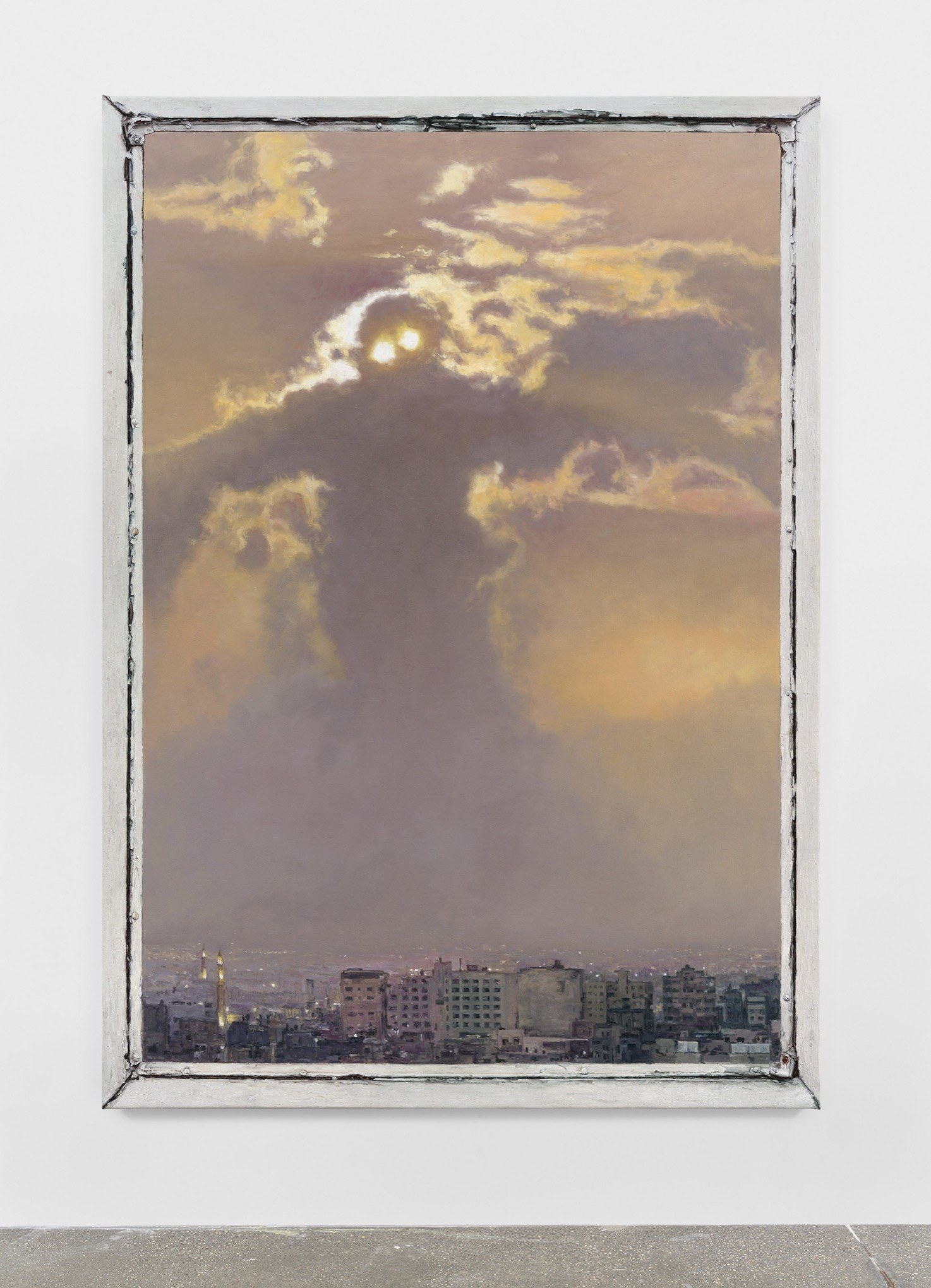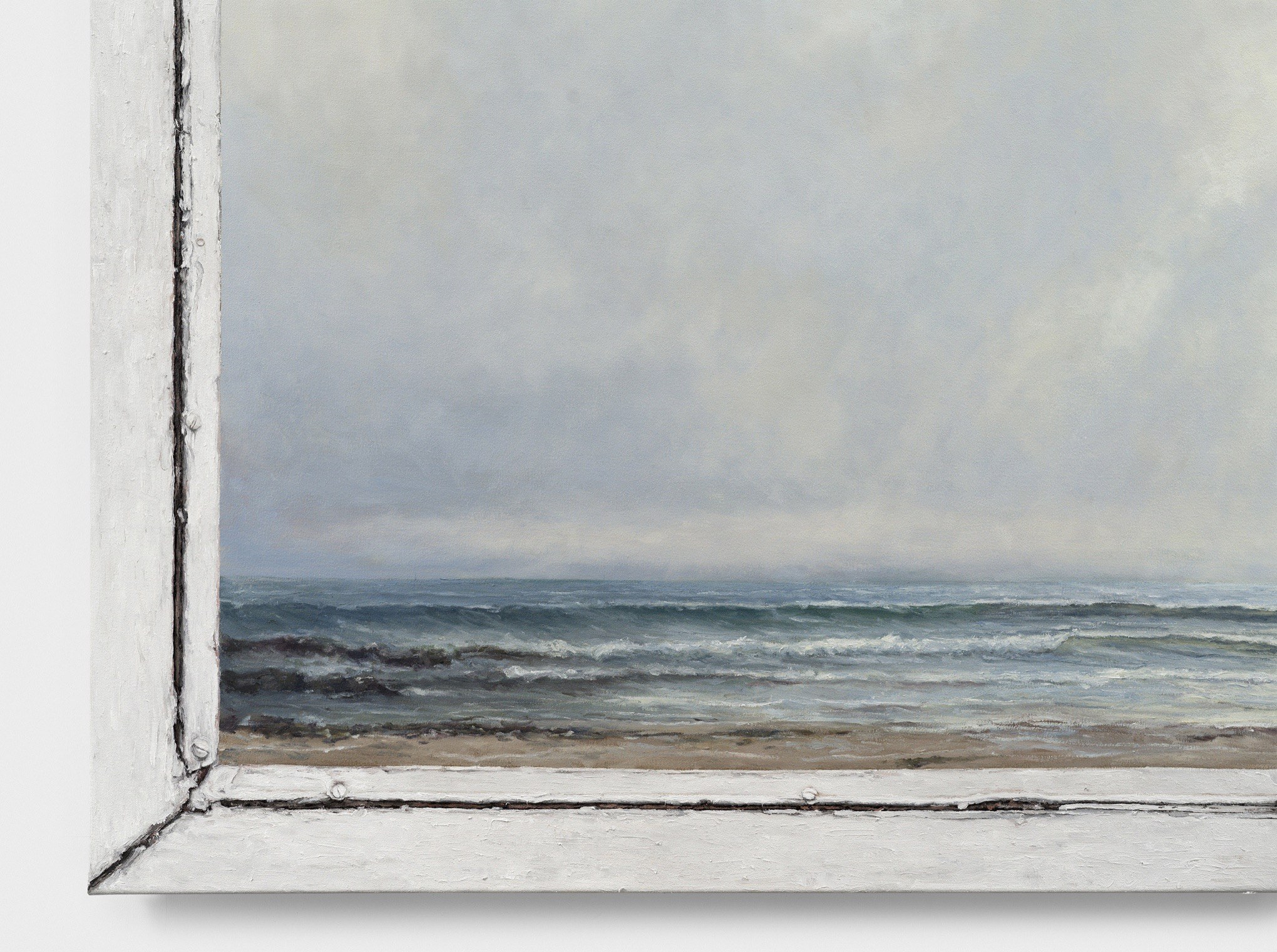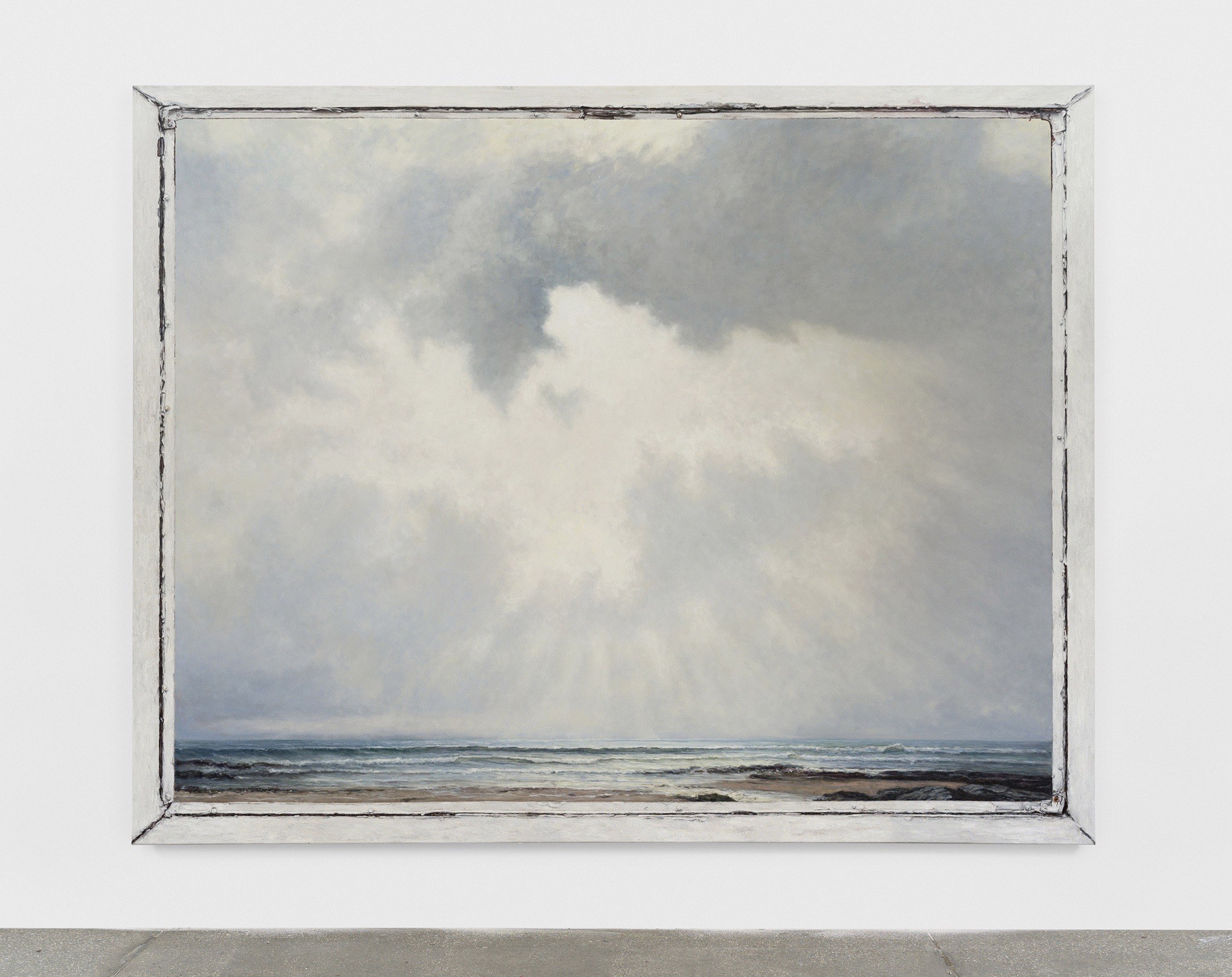 After graduating from the Utrecht School of the Arts in the Netherlands, Roest began to work in focused sets of five to ten paintings, most often investigating a specific theme, premise, or concept in an almost clinical fashion. This latest seriesâ-the angel paintingsâinvestigates the relationship between representation and deception by pushing the potential of artifice to its nth degree. Even the frames are an apt example of illusion: the weathered structures are meticulously rendered trompe l'oeil of actual frames. They invoke time as sunbleached snapshots of the sublime. The eroded, peeling paint of the frames work in sharp contrast with the traditional, pastoral landscapes below while a shining angel is crisply rendered above. Yet what is this angel but the most timeless, ineffable and complex system of allâweather, and specifically crepuscular rays, an effect that occurs when the contrast between light and dark is most evident. Humans have interpreted spiritual images in the sky since the beginning of mankind, since the dawn of consciousness.
