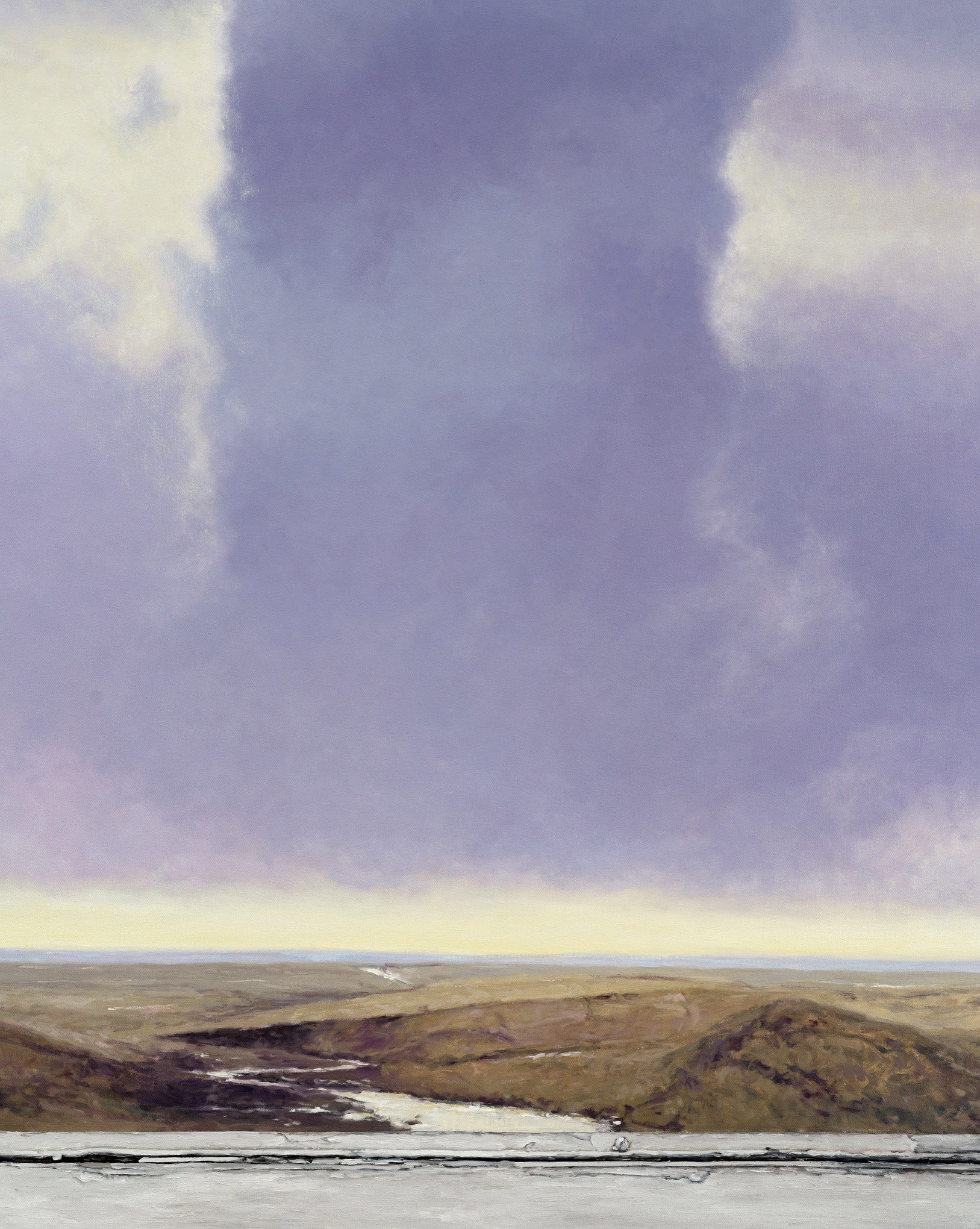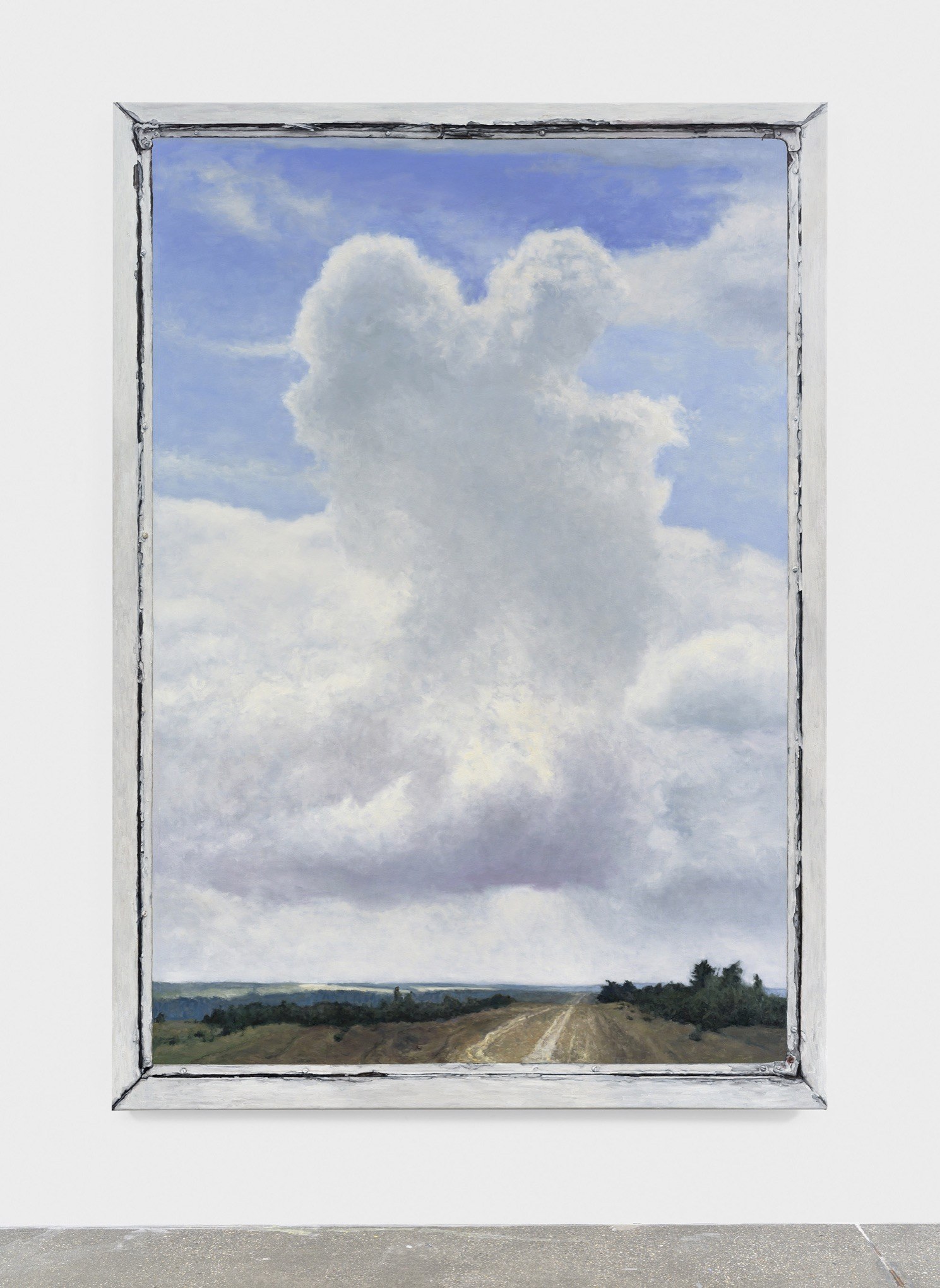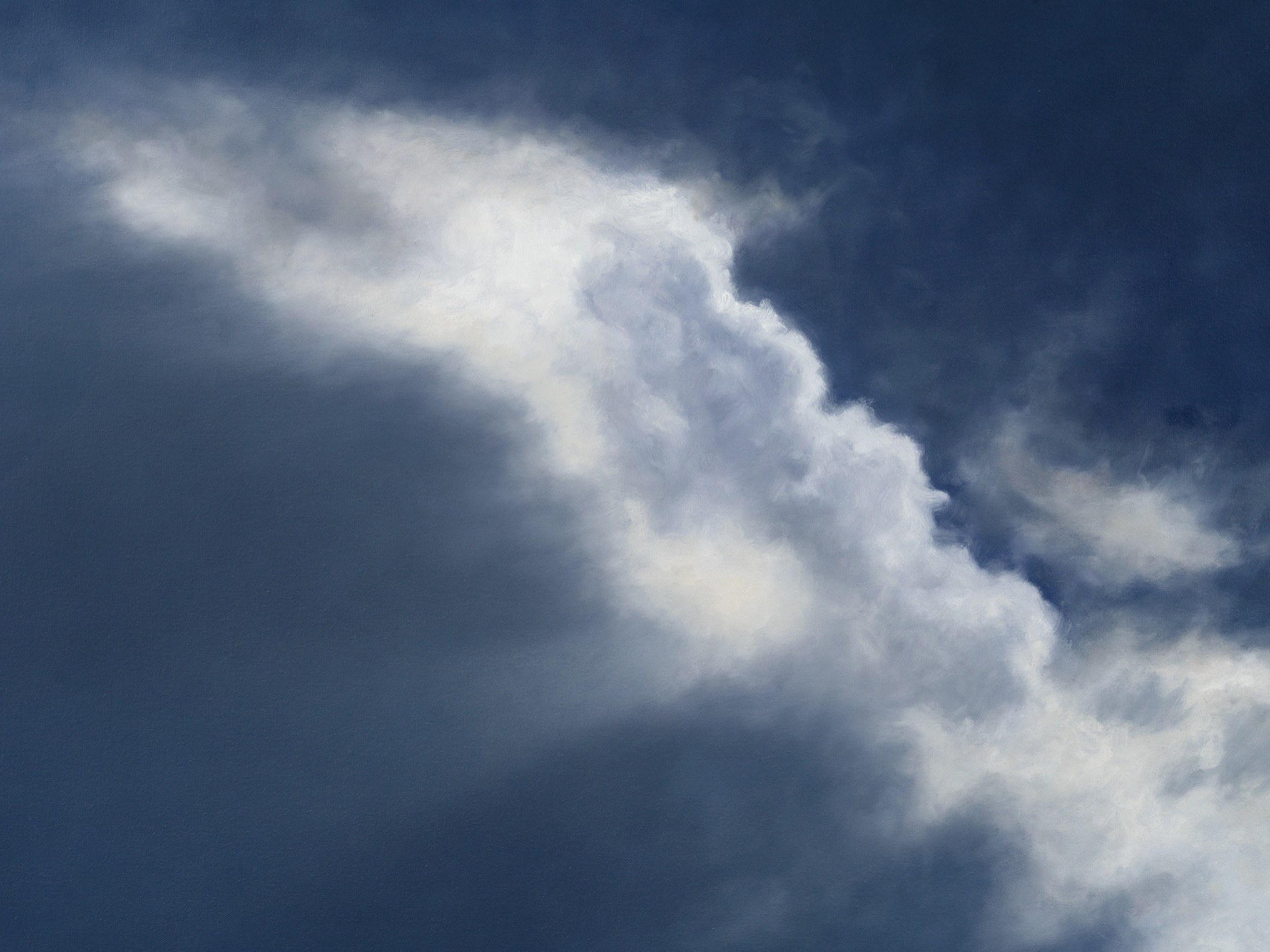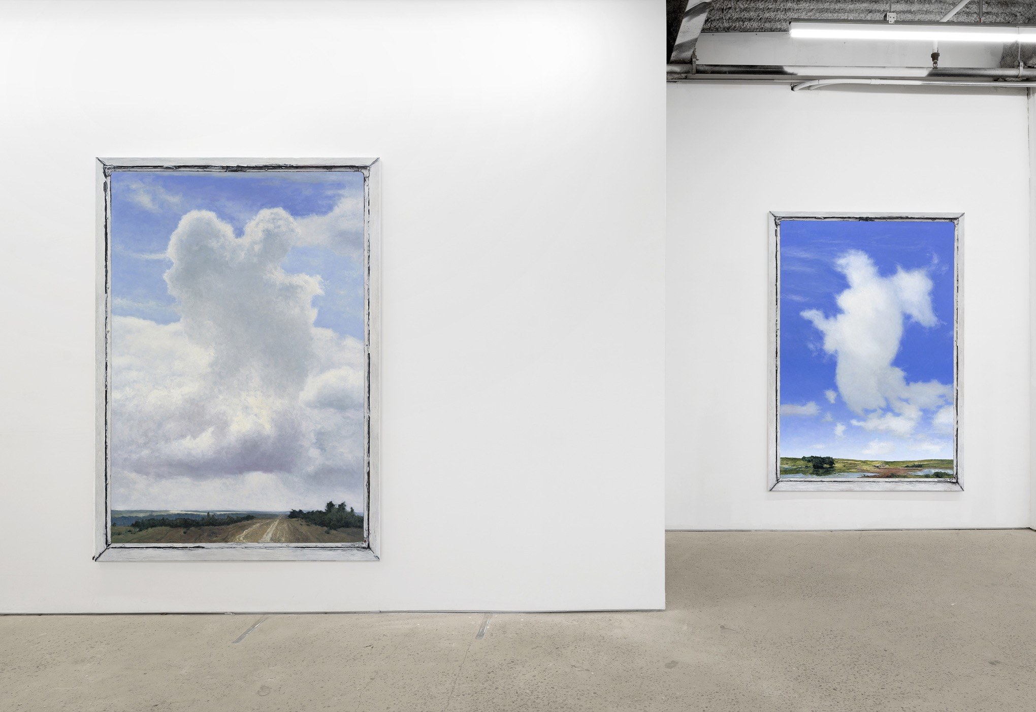 On the other hand, Roestâs title might allude to another, slightly less comforting meaning. âWatching over usâ might not be construed in the religious sense, but rather in the constant presenceâor absenceâof a power that looms above. Barael, with its swirling bruise-colored clouds and wide-eyes, might lurch toward an omniscience observing our sins, our daily lives. And thereâs an element of probability that canât be ignoredâif captured a moment later, depending on the course of the winds, these original images might have been very different. We might have missed them altogether. The dates of the cloud postings on the Internet span years yet each image is a stamp in time, just like the lands below are seamlessly stitched together from various historical paintings, dates and times unknown, places loosely referenced. Roest cites Northern Dutch landscape paintings as well as the work of Volodymyr Orlovsky and Isaac Levitan as key influences. Here, new forms and classical art tradition are reproduced and married in paint.