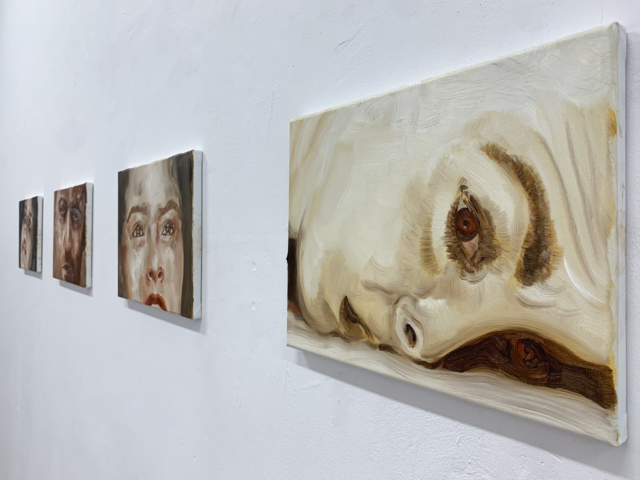 The faces painted by Dziedzic can be interpreted superficially as aesthetically everyday events. Psychologically as an expression of bad experiences, experienced or inherited traumas. Clearly as documents, testimony of harm done to faces by the world or as a result of self-aggression. If each face is associated with an application record, the same question arises: how many faces can it bear and in which does a person appear who loses it.