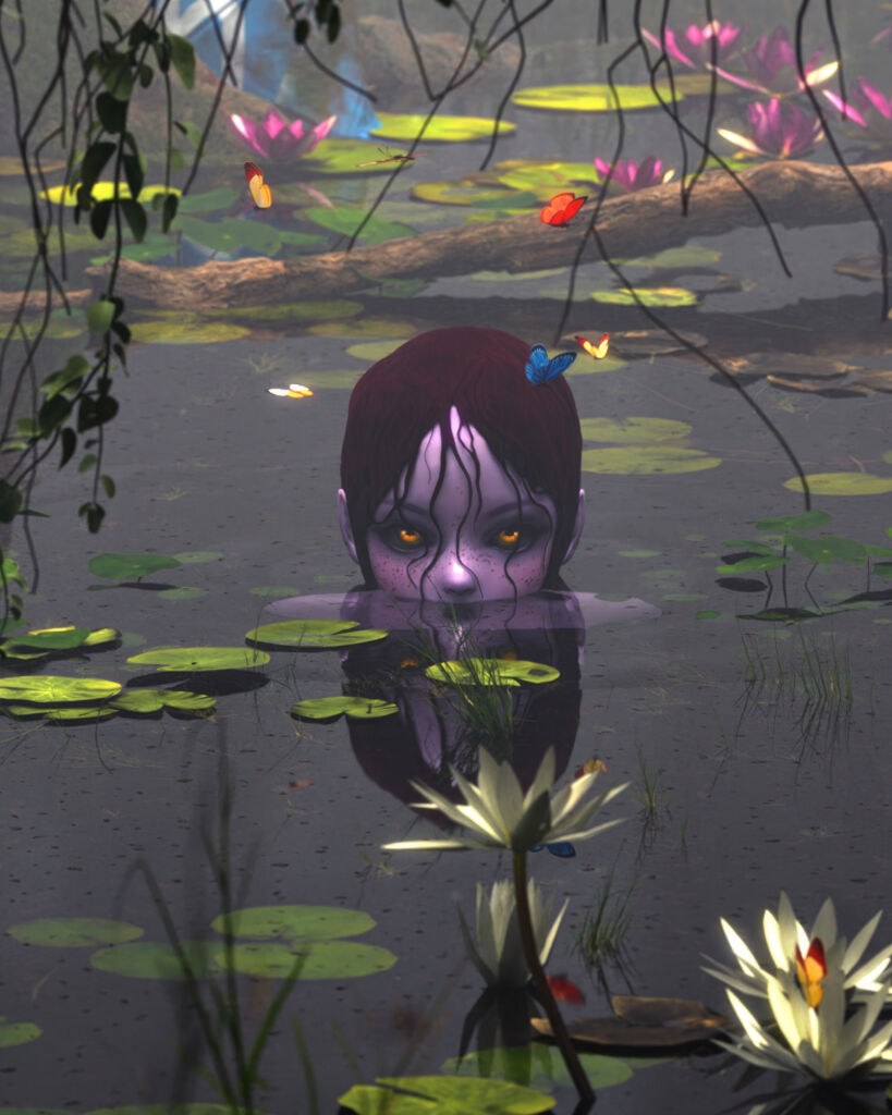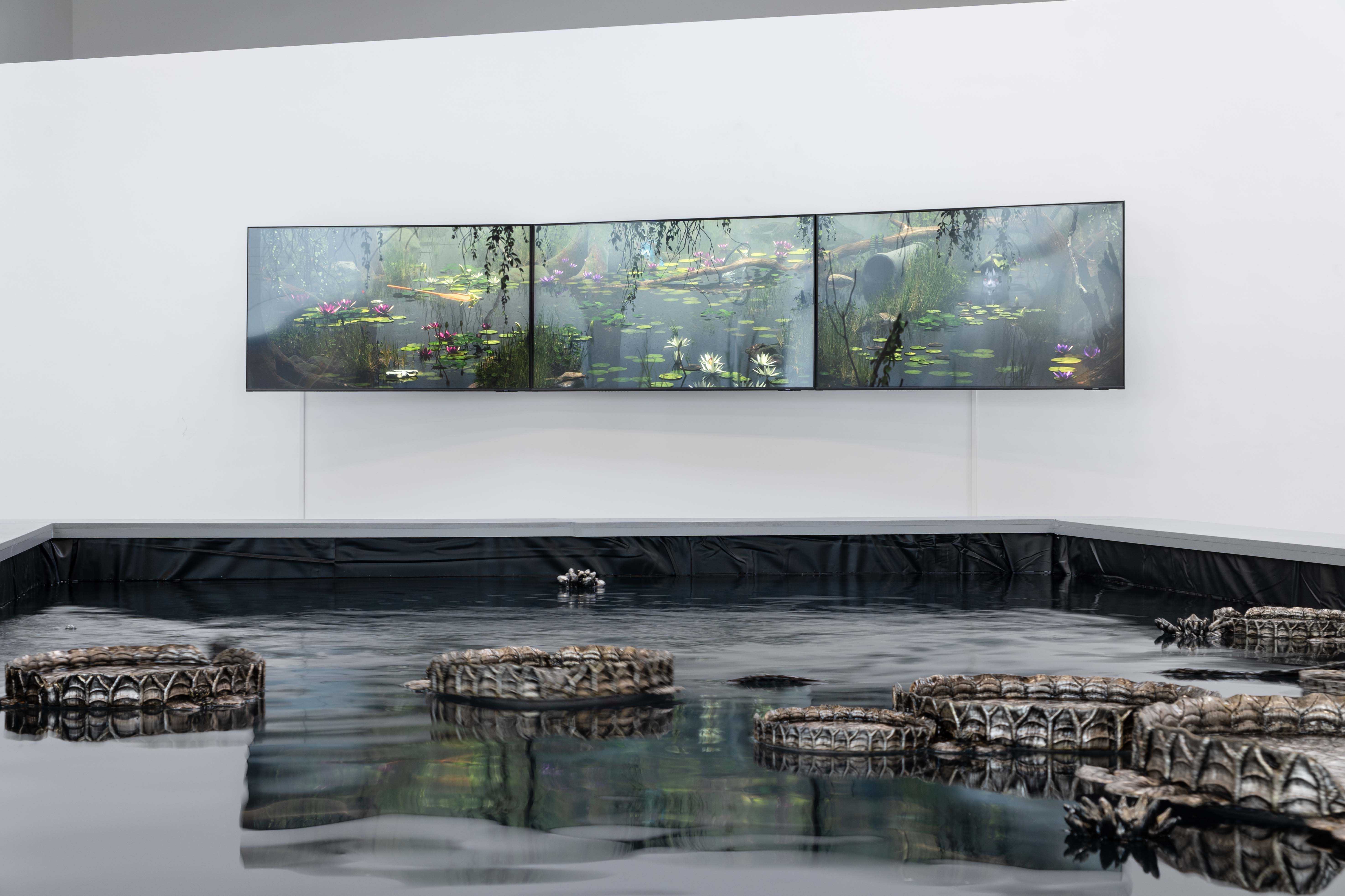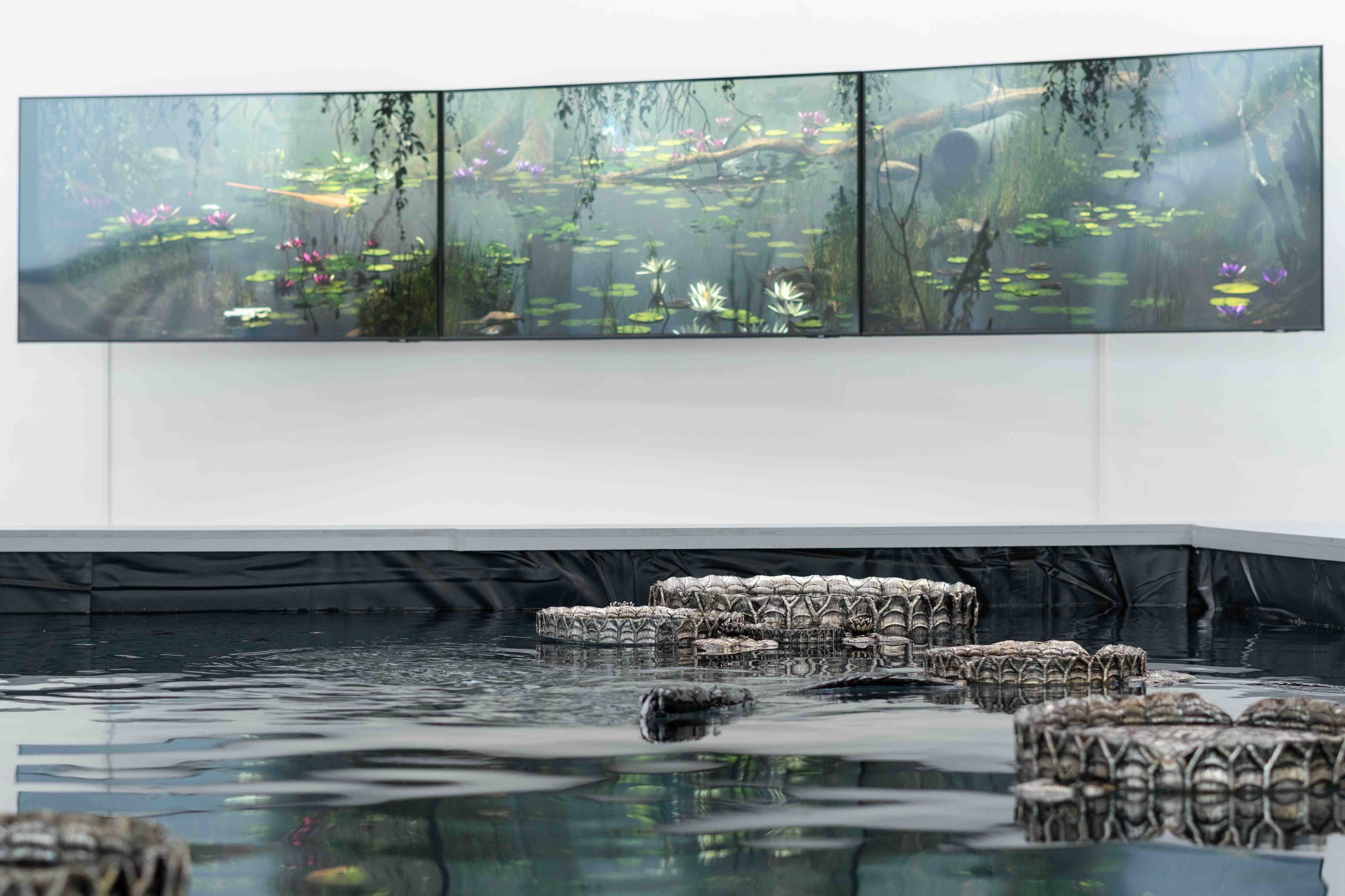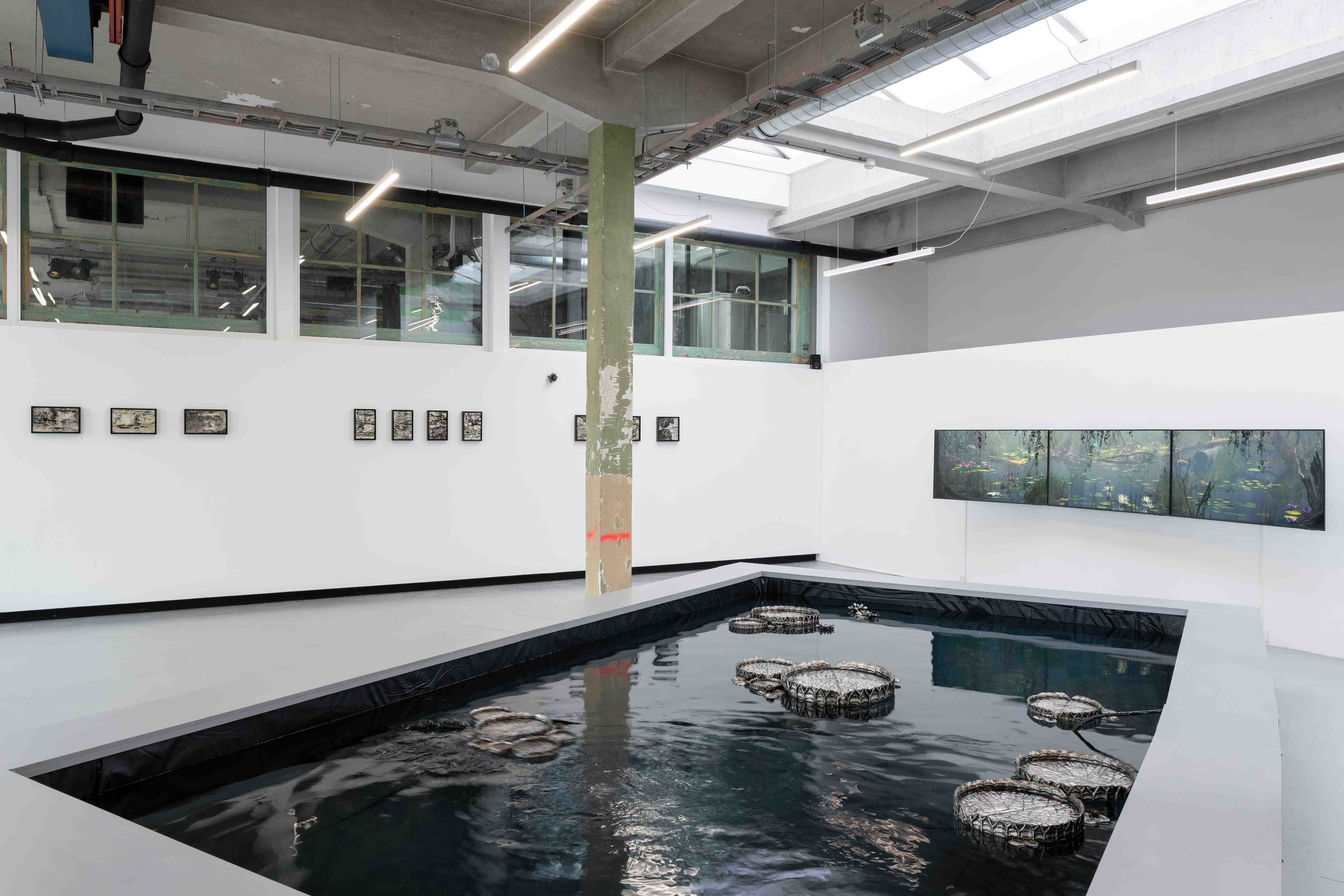 'Troubled Waters" is a digital meditation exploring how our choices in one world impact another. Valentina's exhibition aims to raise awareness of the positive impact and responsibility associated with modern technology. In a time where discerning reality is challenging, the installation, including lilies and images from the digital realm, questions our connection to the natural world versus virtual reality. The soundscape, created by composer Maarten Brijker, and spoken texts inspired by dialogues with artificial intelligence highlight the limitations of these techniques in creativity and empathy.