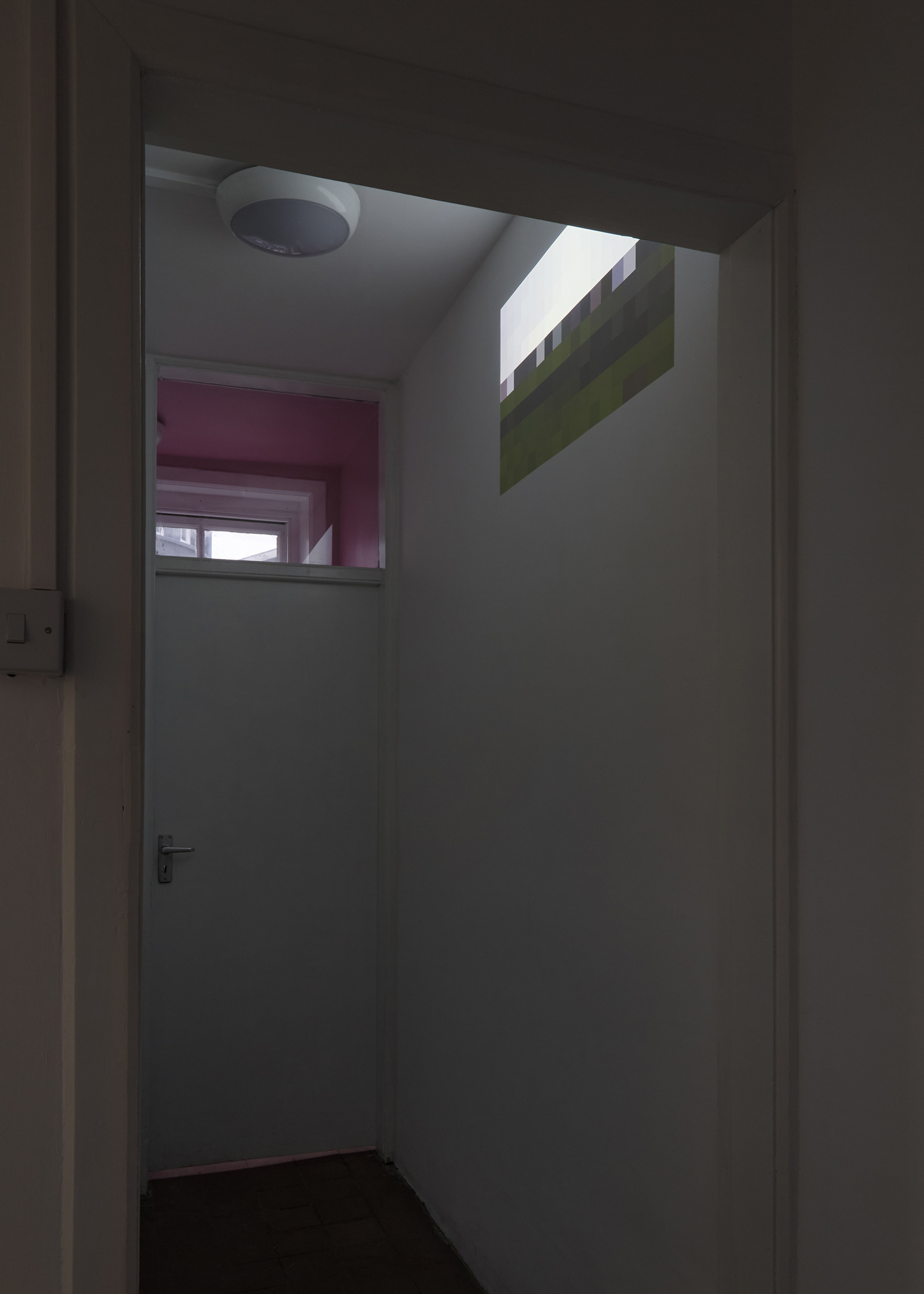 The motif of the grid, which appears frequently in the artistâs work, also represents a pixelated screen, echoing the video "Landscape" (2024) projected in the galleryâs first room. Before undergoing digital processing, the images depicted a week-long of sunrises and sunsets captured during the time of production in the countryside. As viewers, one can attempt to unravel the once bucolic landscape within the grid or surrender to seeing it as vibrant abstract imagery â a portal to another place and time.