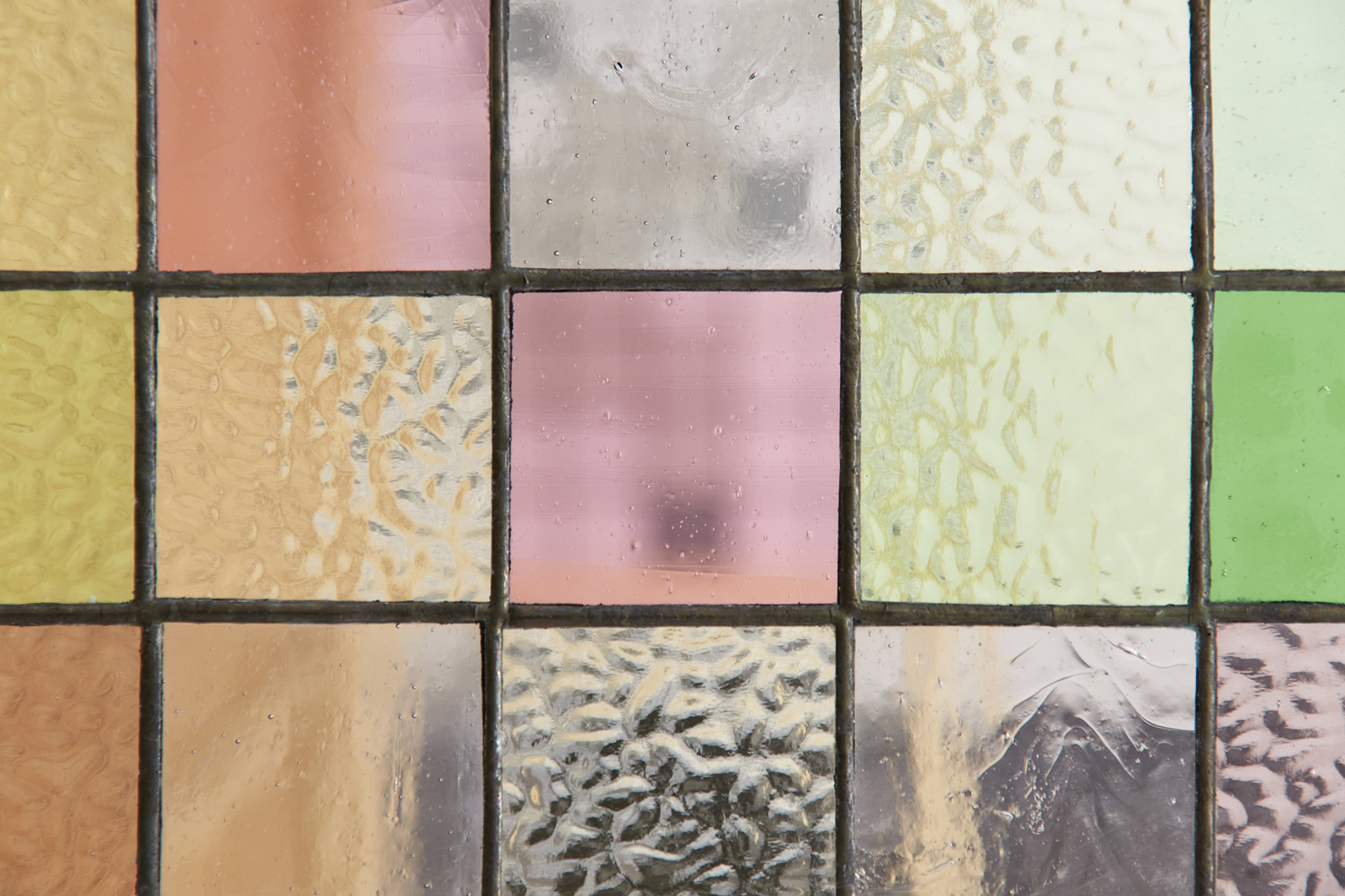 Georgina Hill, Bread and wine, 2024. Assorted redwood, stained glass and solder, Left to Right: i) 230 x 150 x 51 cm, ii) 230 x 150 x 21 cm, iii) 230 x 150 x 40 cm