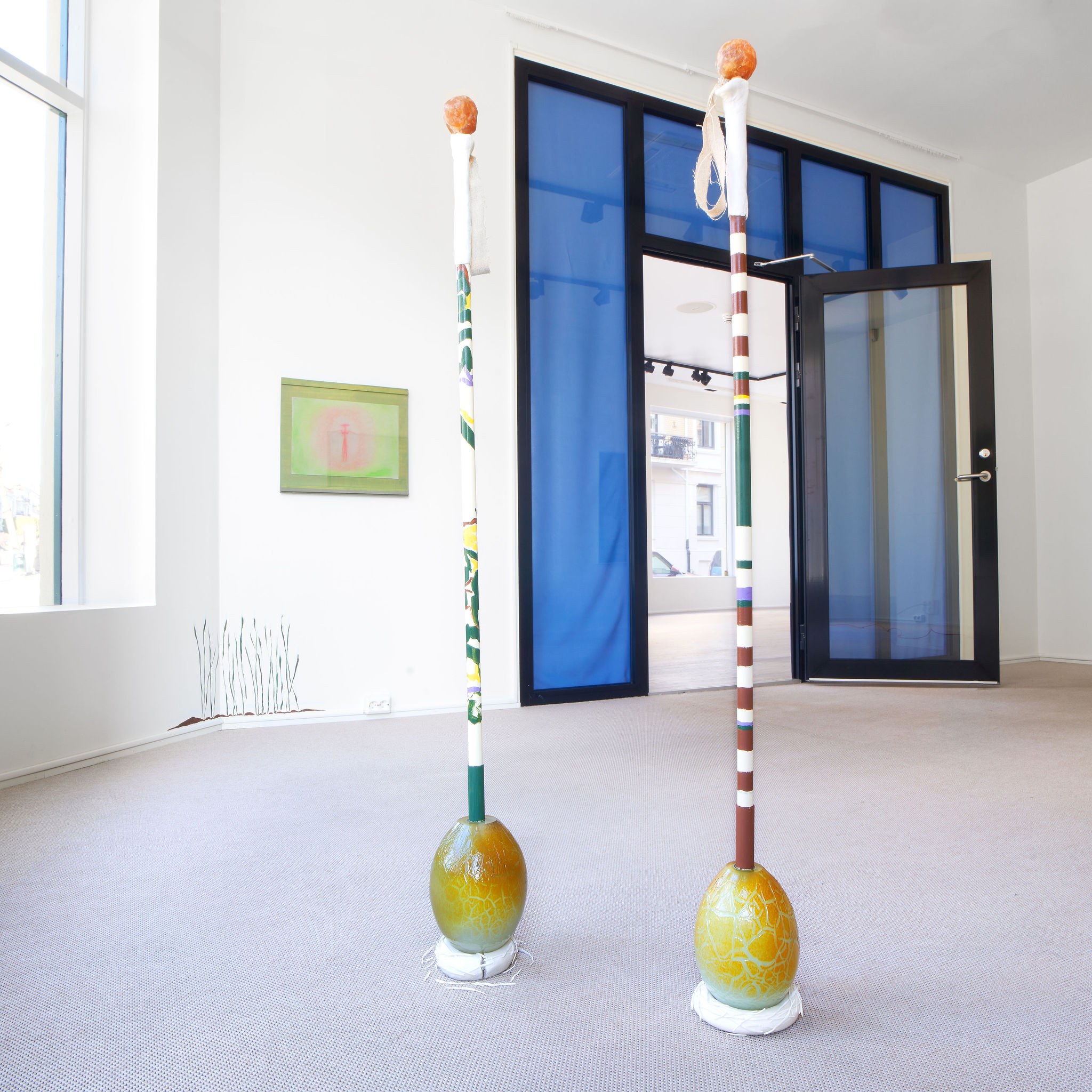 Itâs a miracle I & II (2024) Glass, wood, hard plastic, linen canvas, beeswax 130 x 15 x 15 cm