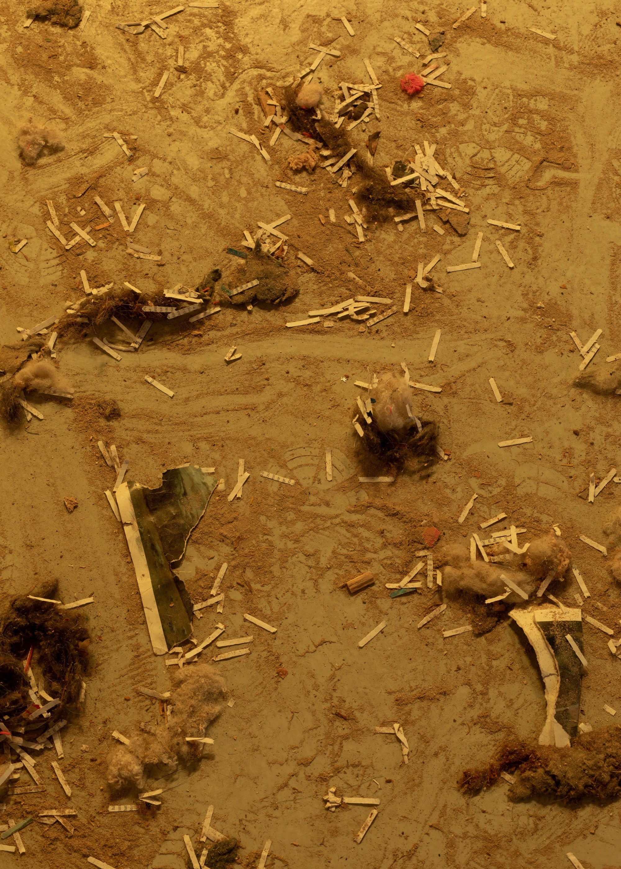 This simultaneously sharpens and blurs the understanding that a continuous transformation is underway. Such a paradox, between stillness and movement, becomes for Grüner & Vogelius a fundamentally creative force that allows still formless and failed forms to make room. As with the failed replications of the Medieval large bricks and the other readymade works, deviations occur in the particle shape of the dust when it is illuminated by artificial light. The failed and the amorphous are thus given a significant place in the considerations of how the amorphous remains of the future take shape. The title of the exhibition, Surge, can be translated as rise, sudden surge or a powerful wave. However, in English, the word surge can also be a verb or noun used to describe an action, living beings, things and concepts. Like the rest of the elements of the exhibition, the title is an entry with multiple meanings. It alludes to, among other things, the rise and wave of new breakthroughs in the understanding of time, identity and language, which in these years is gaining momentum but also points to the paradox of shaping something without a fixed core: that the end goal is not