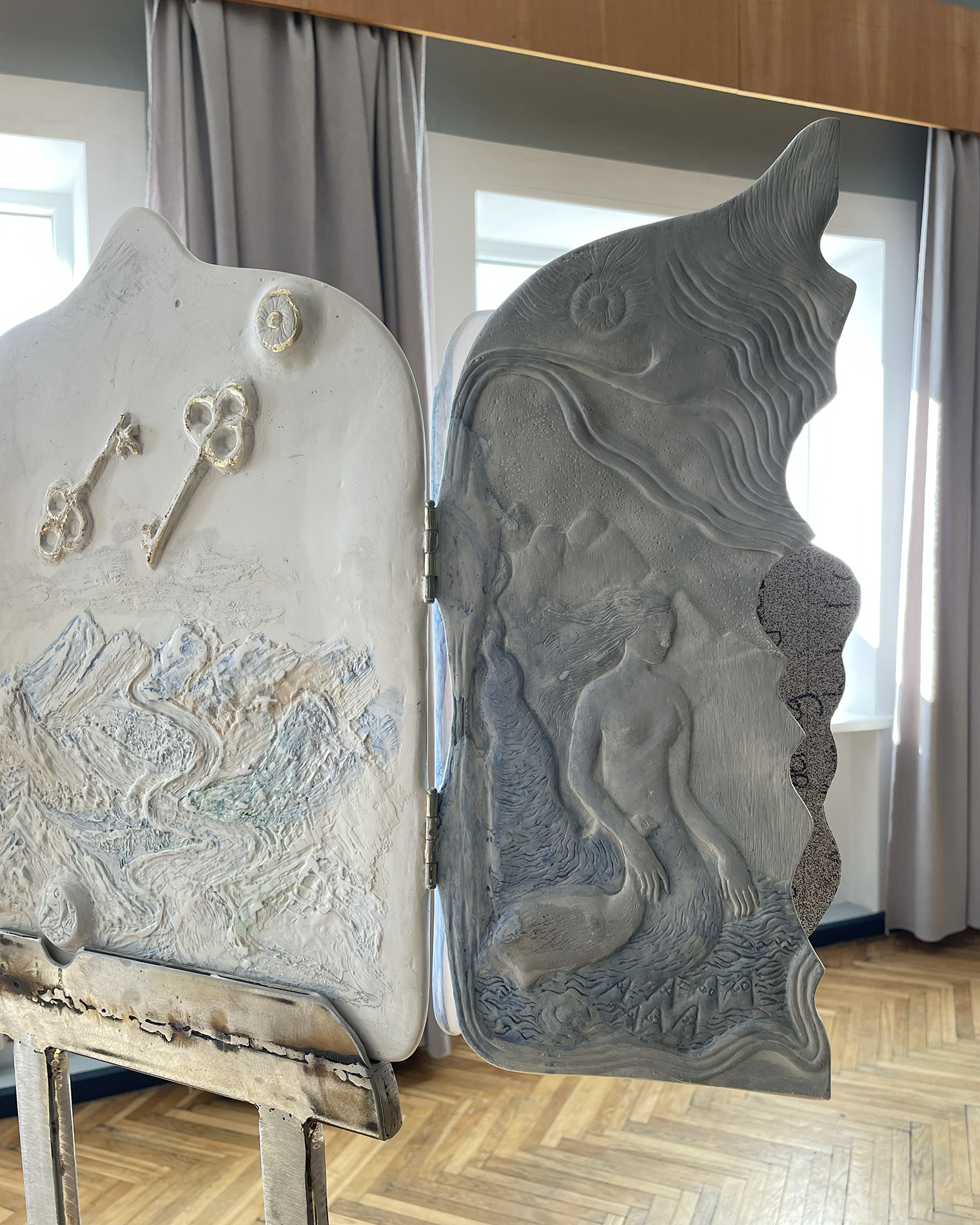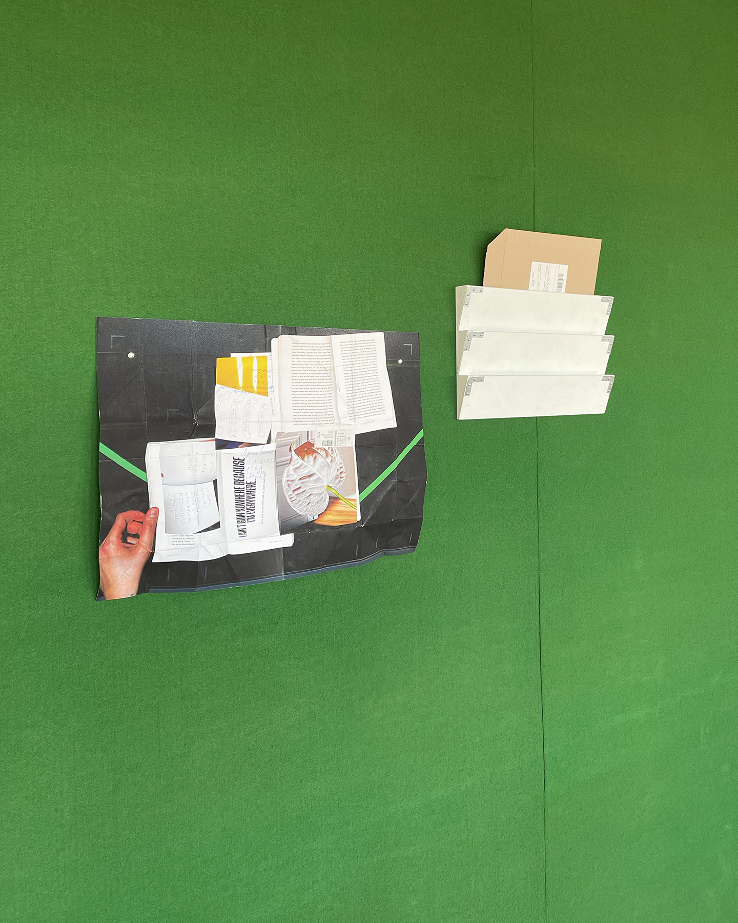 Agnese Čemme continues the theme of mail space in this exhibition, referring to her recent exhibition “Mailroom” at Necessaire Space in Vienna in August 2023.