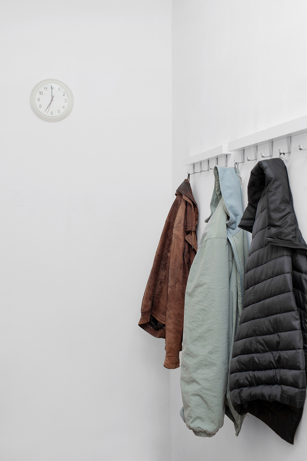 The rather outdated chairs remind me of my father. He had similar ones in his apartment, one at the desk, the other as a clothes rack next to the bed. They were used but not worn out. I wonder what happened to his chairs. My last visit before his death was years ago, but something about the atmosphere of this exhibition transported me back to his room. I remember the garlic-like smell in the air, which my father covered with heavy cigarette smoke. I see the half-closed curtains and the soft light that bathed the room in golden hues. At least that's how my memory left it. I wouldn't say I often think of him; some memories of him or with him I would rather forget. But I can't forget his room. It was the room of an alcoholic, a space for alcoholism. And yet, the memory of his room gives me some comfort.