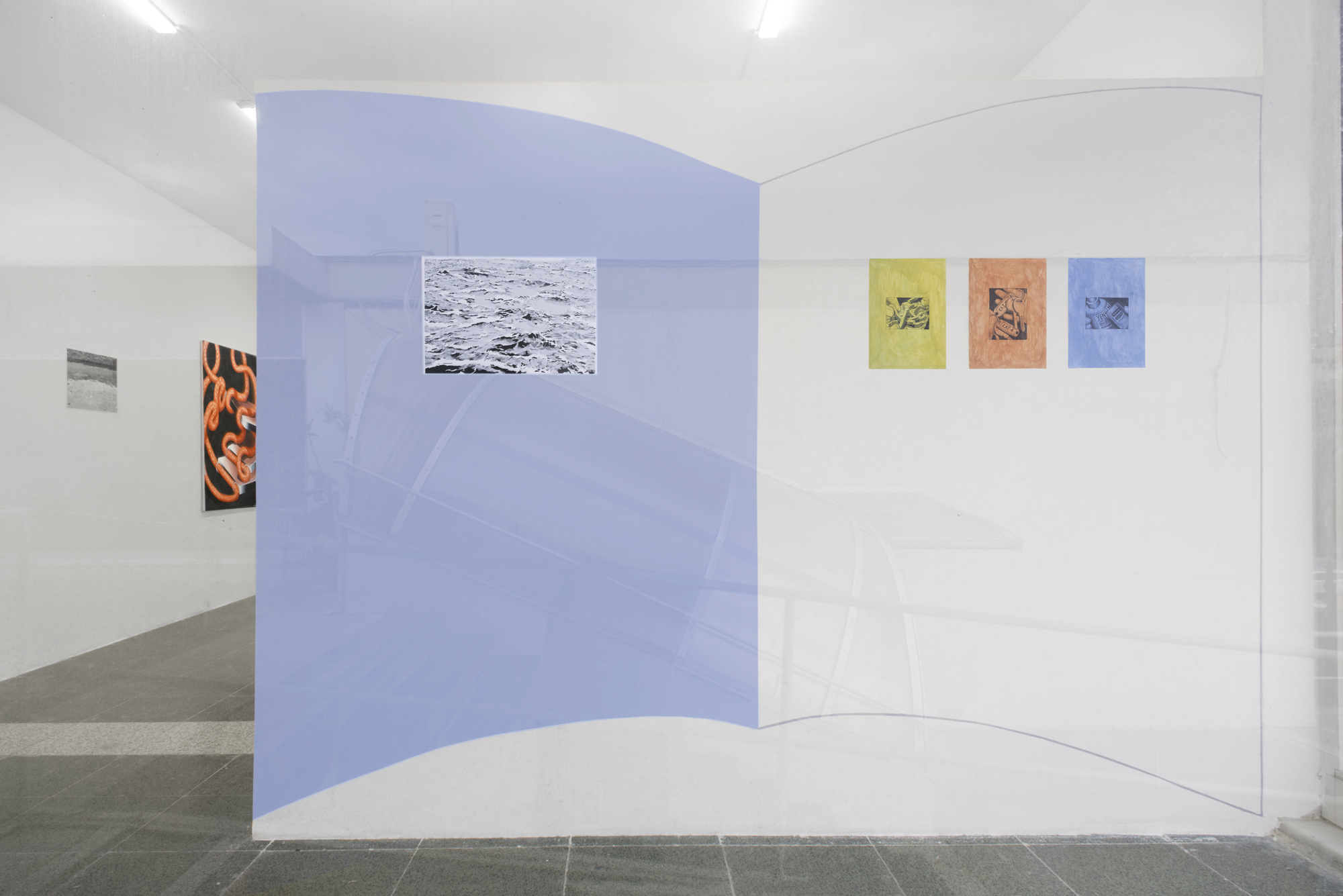The show includes images of waves, images as light waves and paintings of light waves, floating back and forth like water, blurring the line between sender and receiver, reflecting between color and the absence of color, the composition and the reception of an image.