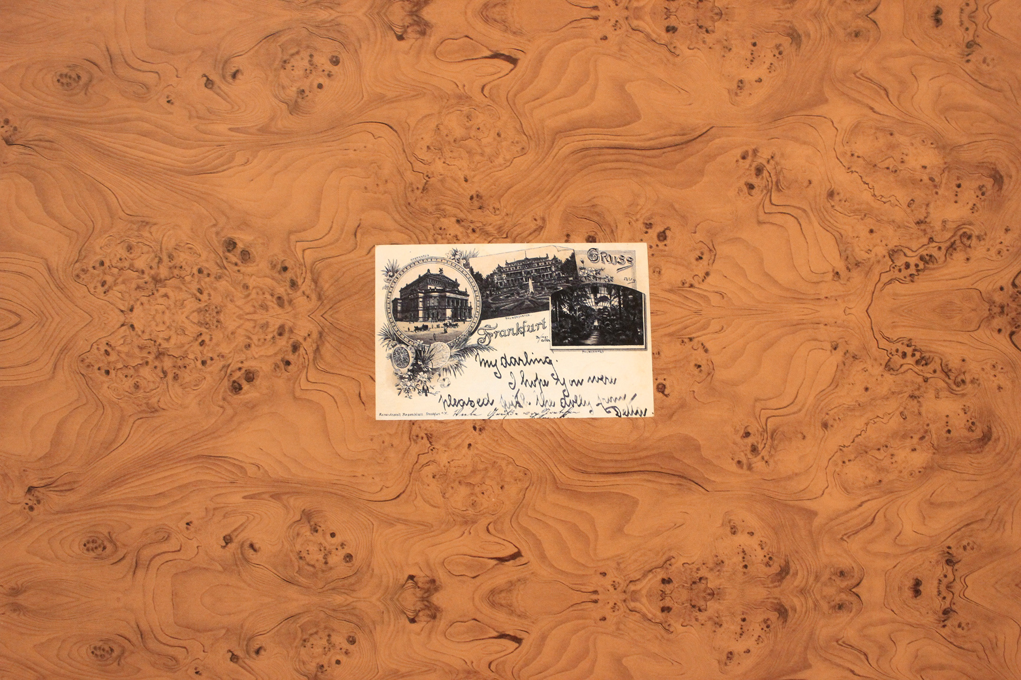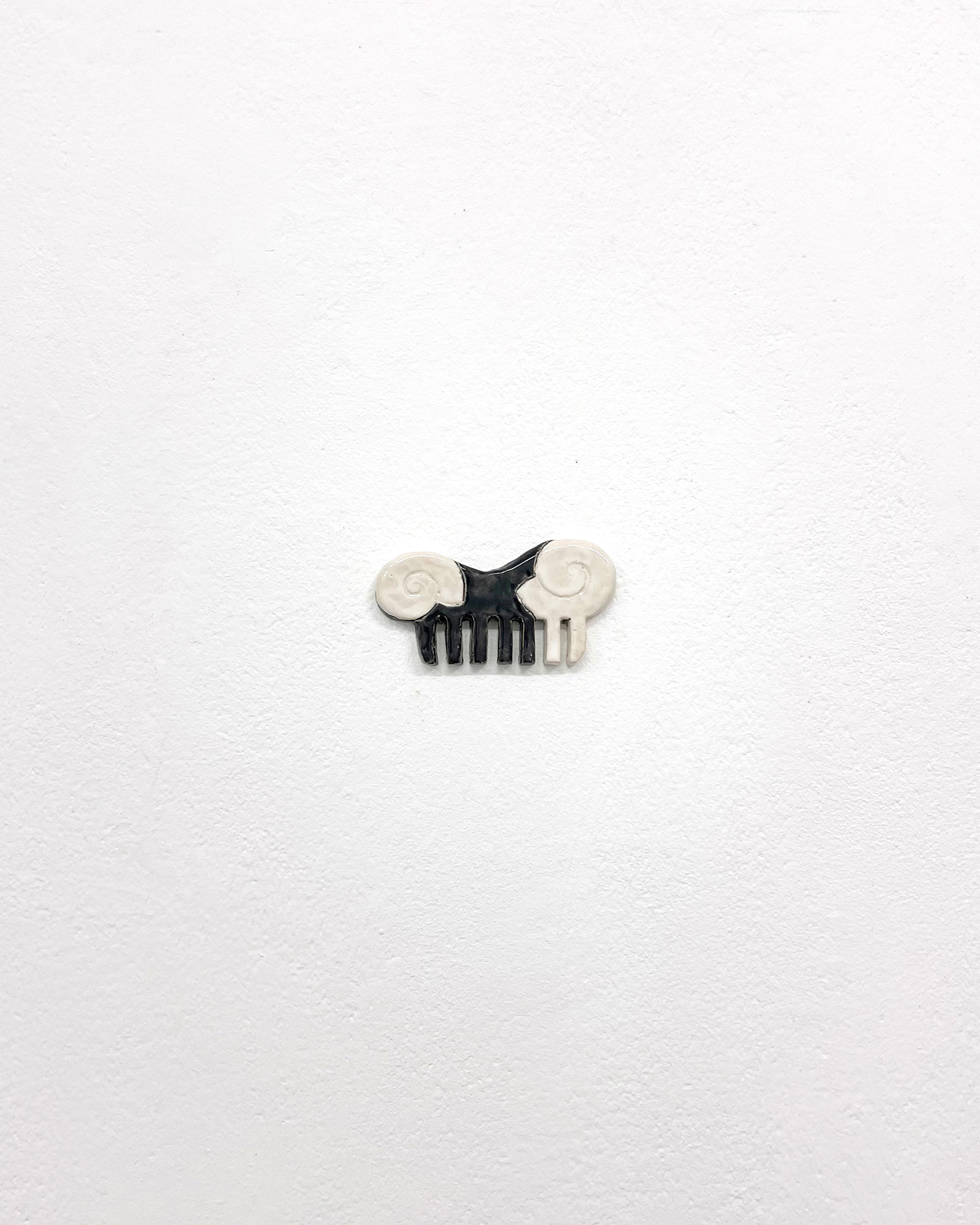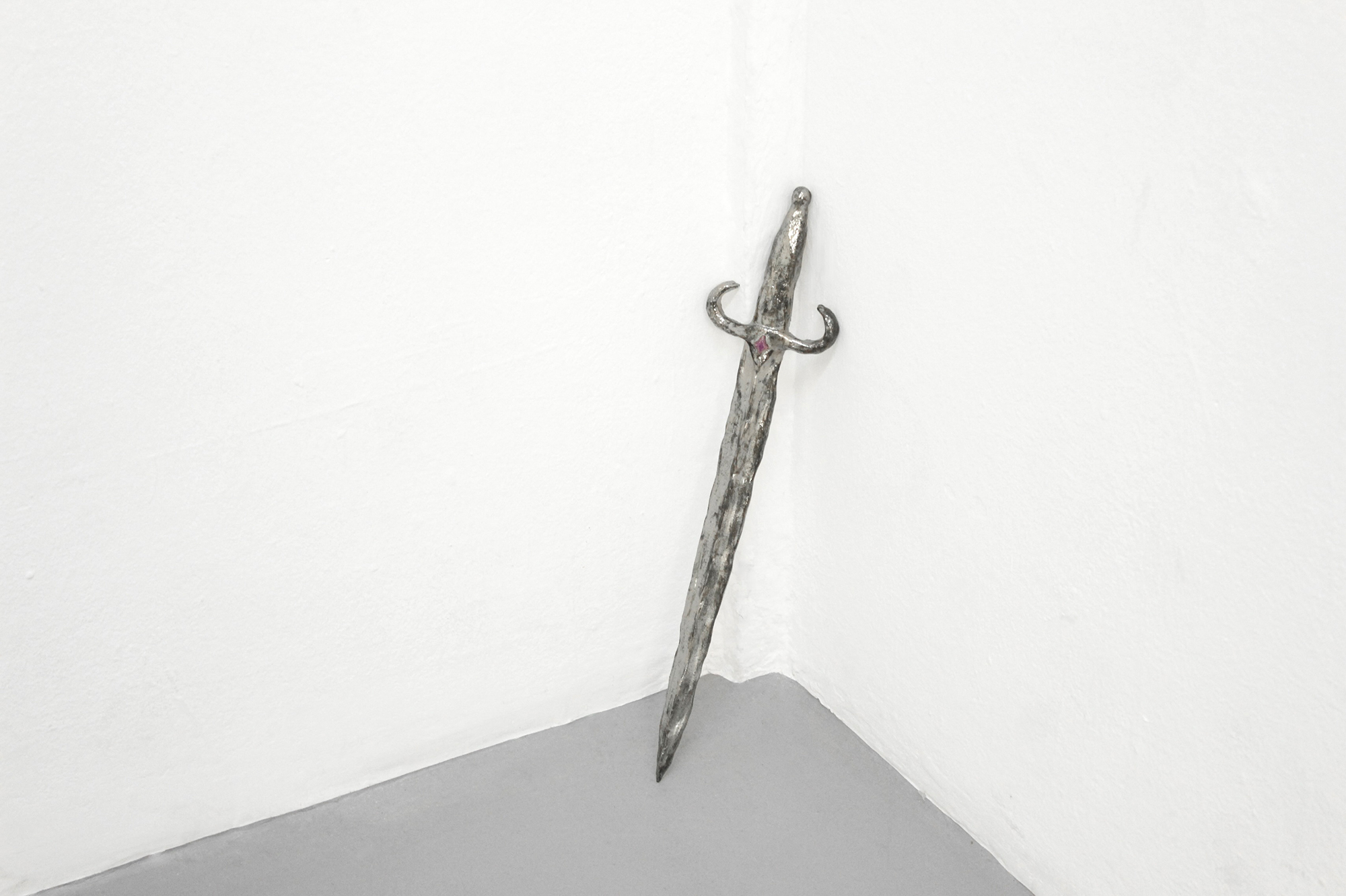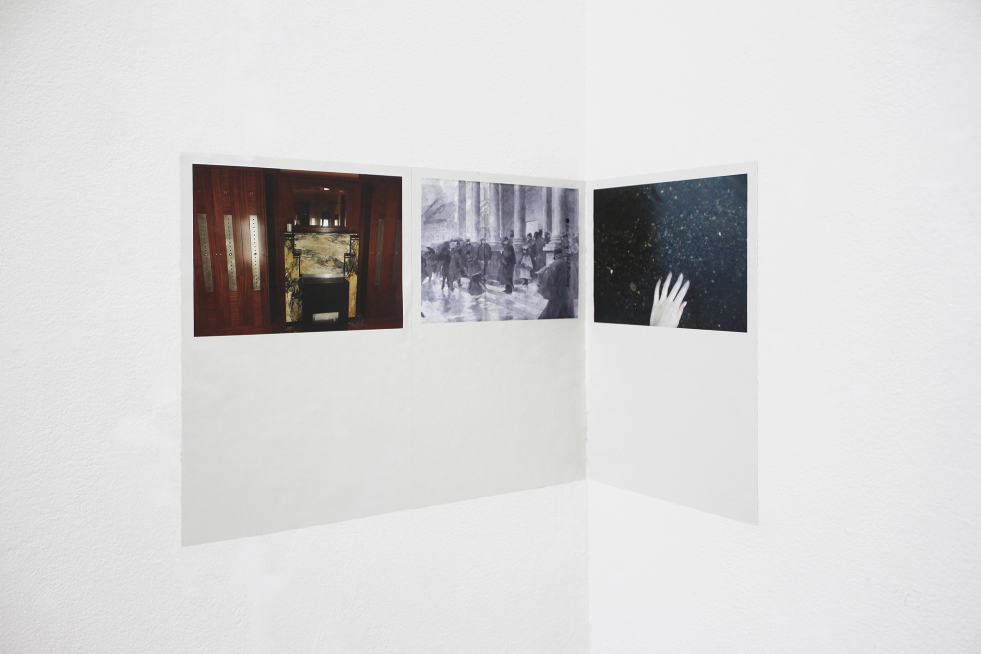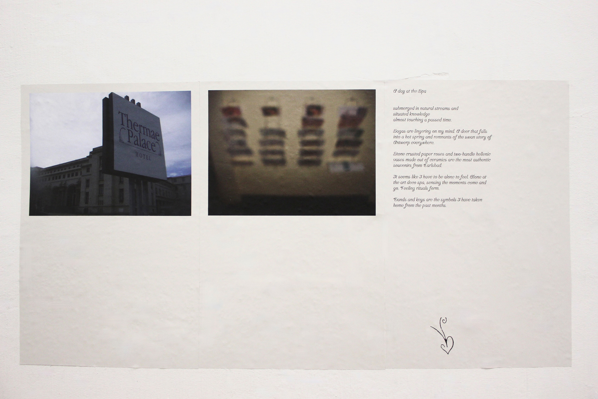Ceramic works resembleing childhood memories and objects out of the fairytale of Snow White are combined with collages and a slide show that make use of found images in a diary-like way.