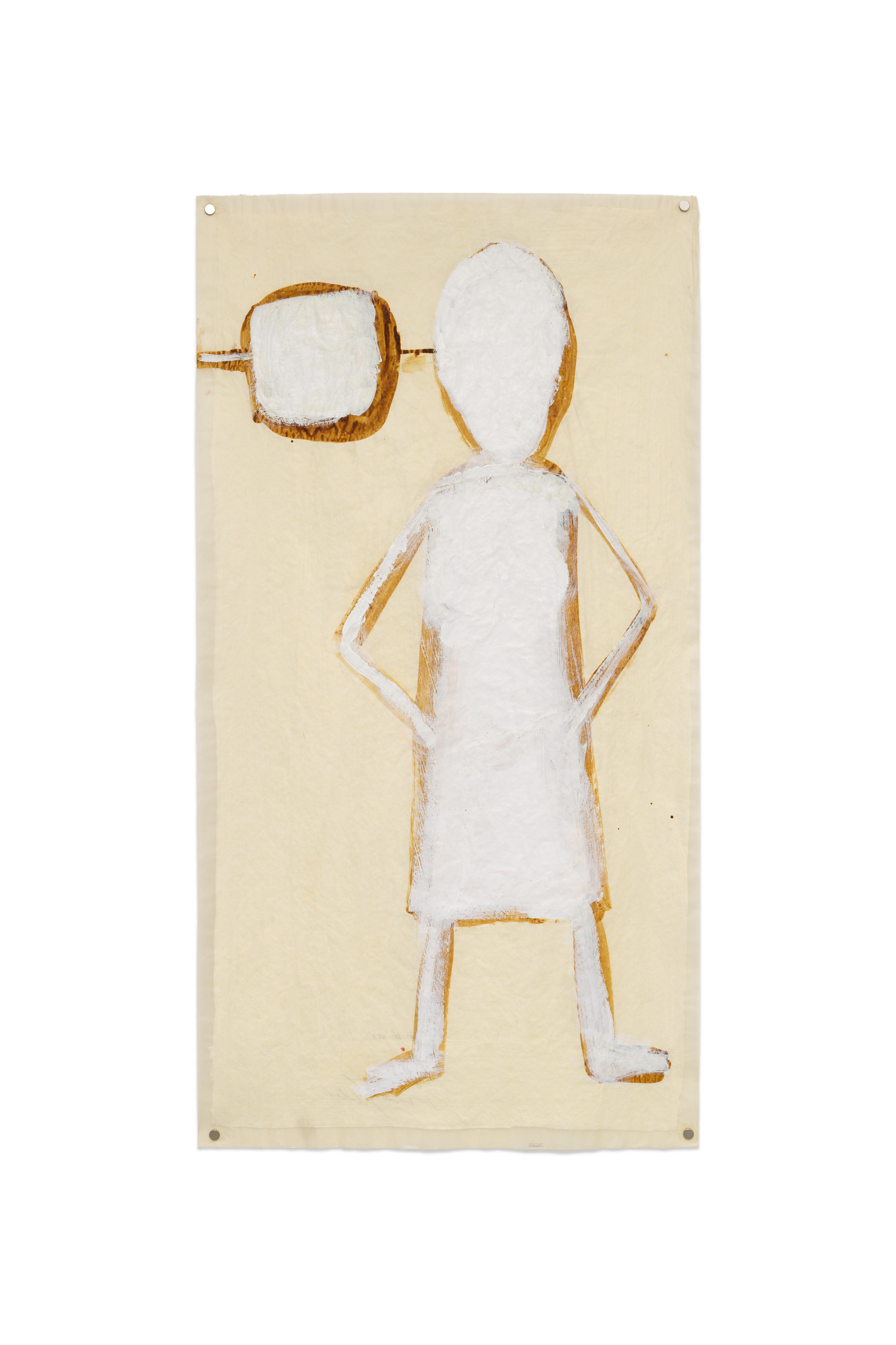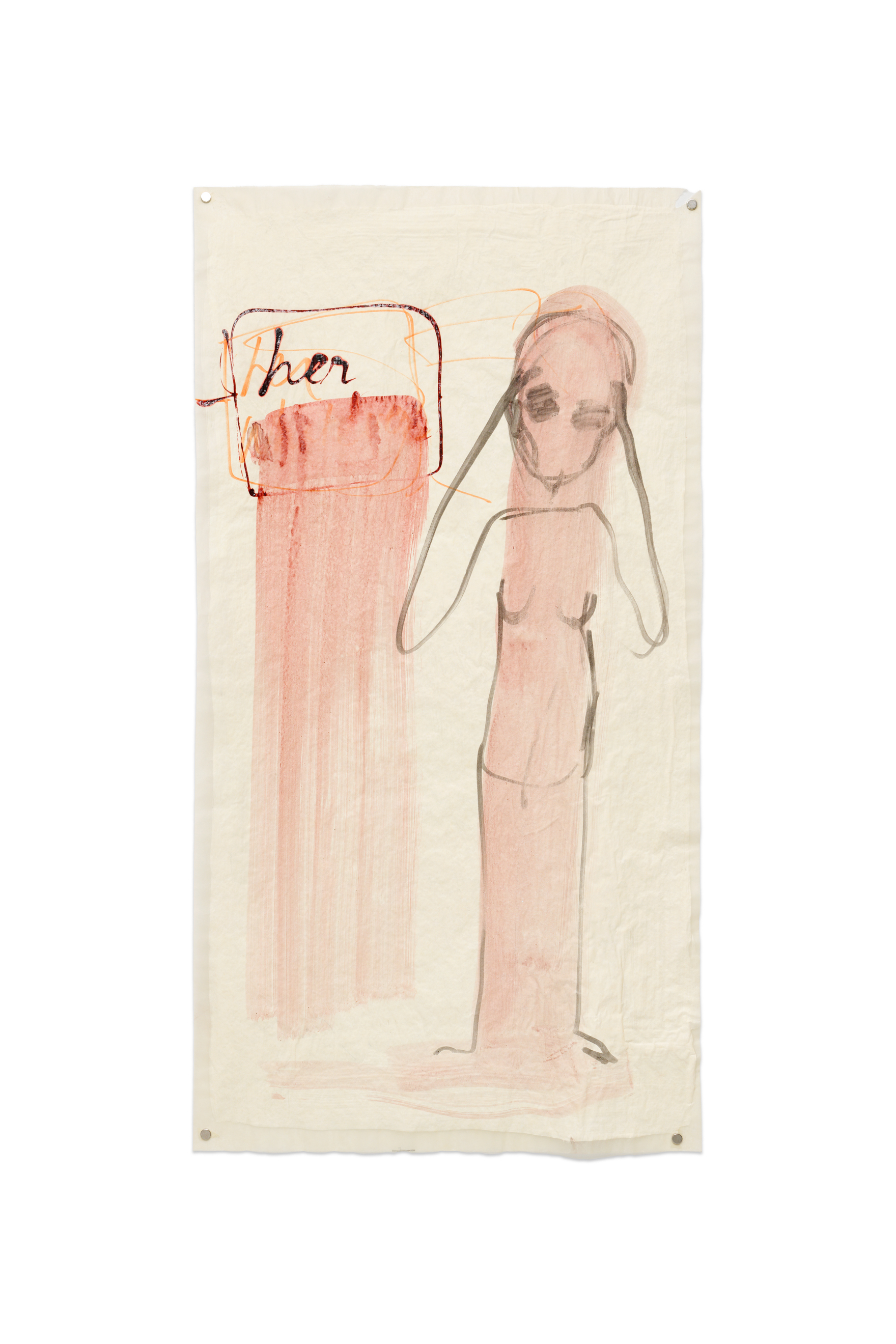 Mira Schor's practice is exemplary in this regard. First because it has been accompanied for forty years by the artist's writings, a true guide toward a deep understanding of the work. And second, because it is entirely devoted to visual pleasure from a female perspective. Thus, it addresses both senses and mind, and "what it does to us" could not be more complete. If, by chance, we were not sensitive to the paintings on free canvas in the first exhibition at Marcelle Alix, the works on paper of the second show and its army of "Power Figures" installed in the same basement, will appeal to our need to find strong female figures of emancipation in contemporary representations. Those self-portraits as 'stick figures' find their counterpoints in the "Black paintings" of the last room: inspired by the diverse scandals of Donald Trump's presidency, they ridicule the attempts of the former US President to transform vain male attributes into signs of power.
