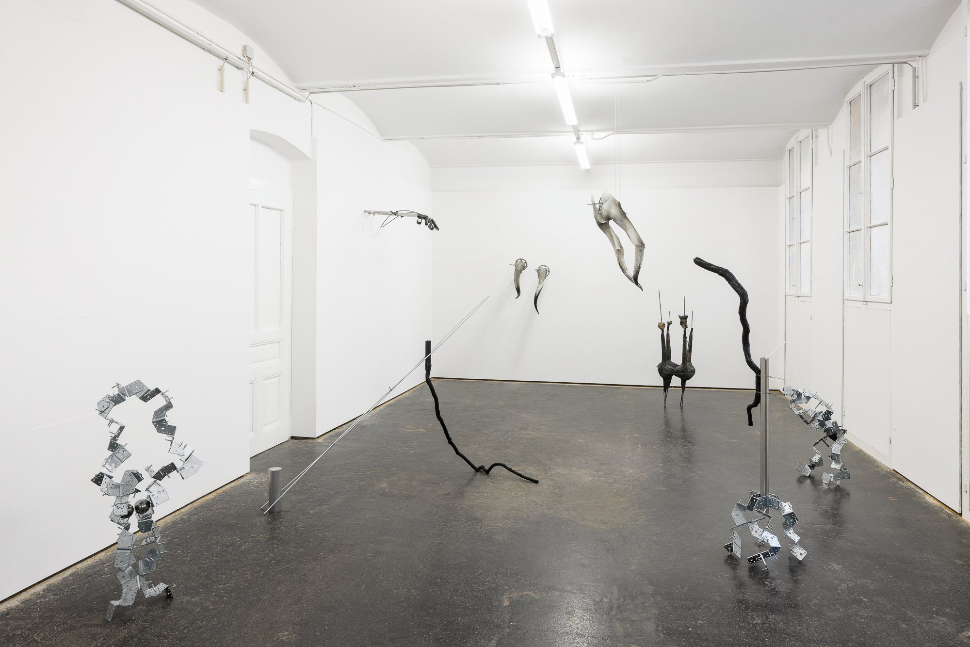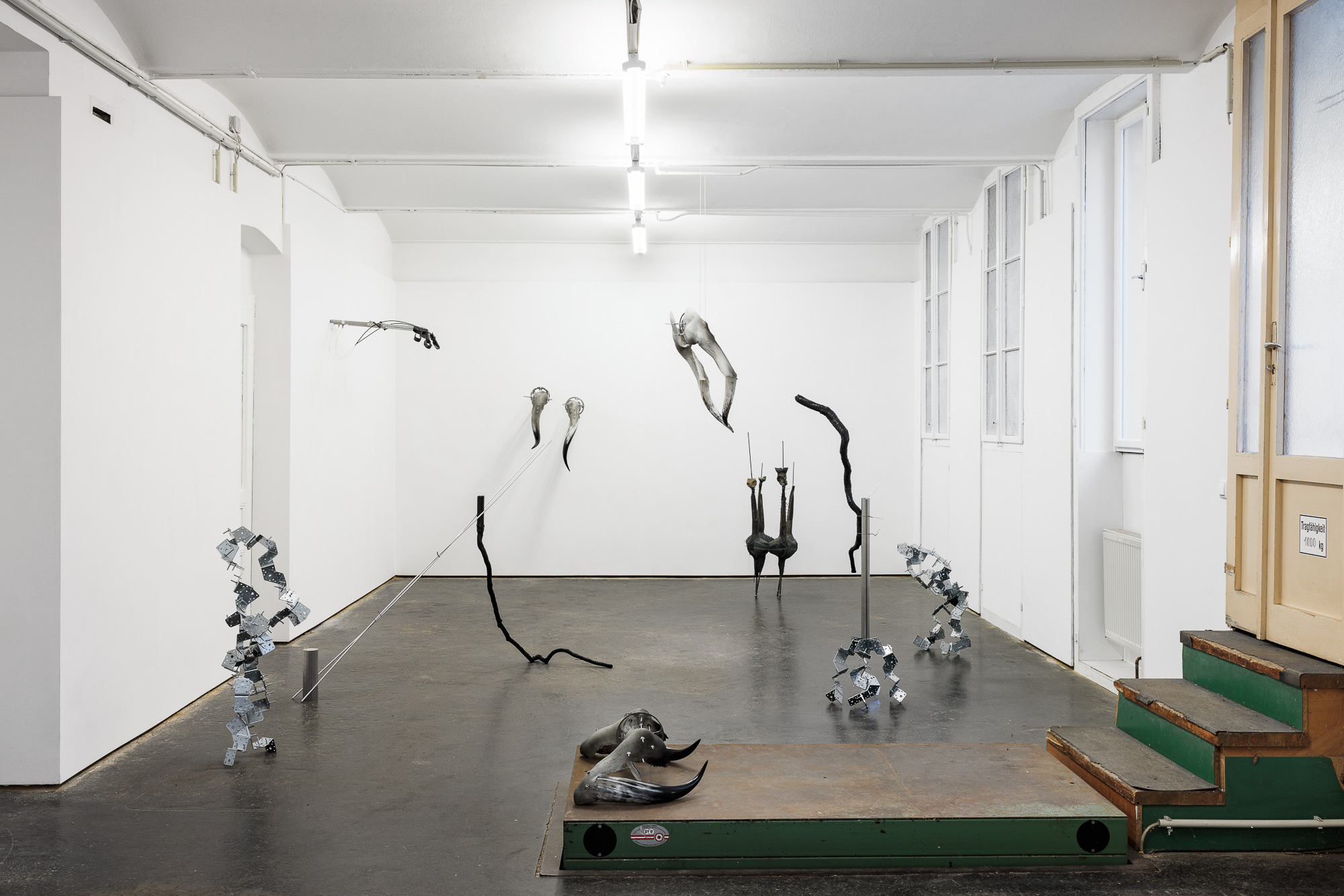 The exhibition Stray Affections deals with the signs of power and powerlessness on the battlefield of today's bodies, which have long been neither natural nor artificial. Sophia Gatzkan and Moritz Führer show mutated and tragic bodies that are in constant battle. Striving for high performance, your greatest enemy is the best version of yourself. It is the one that hunts you.