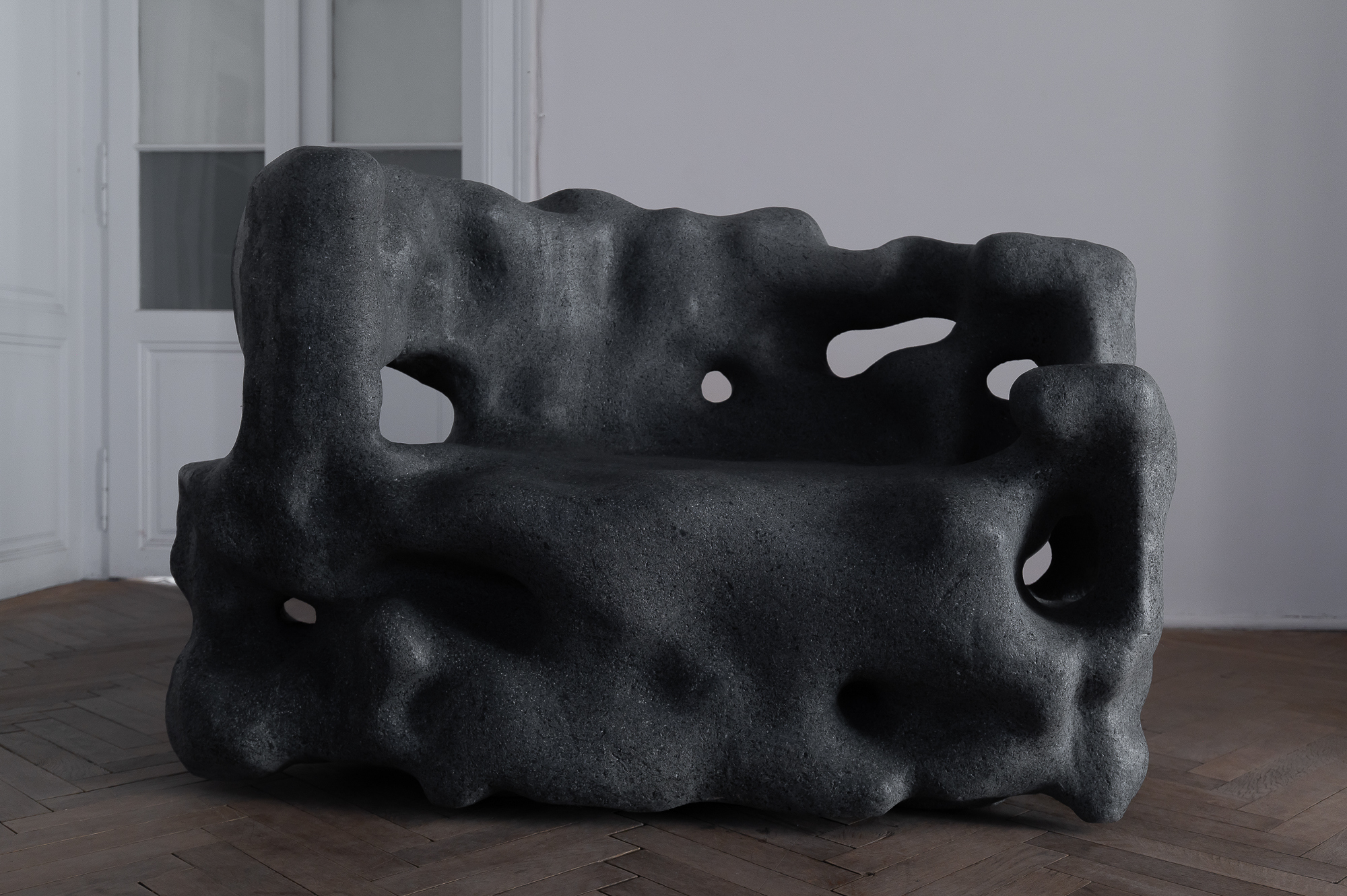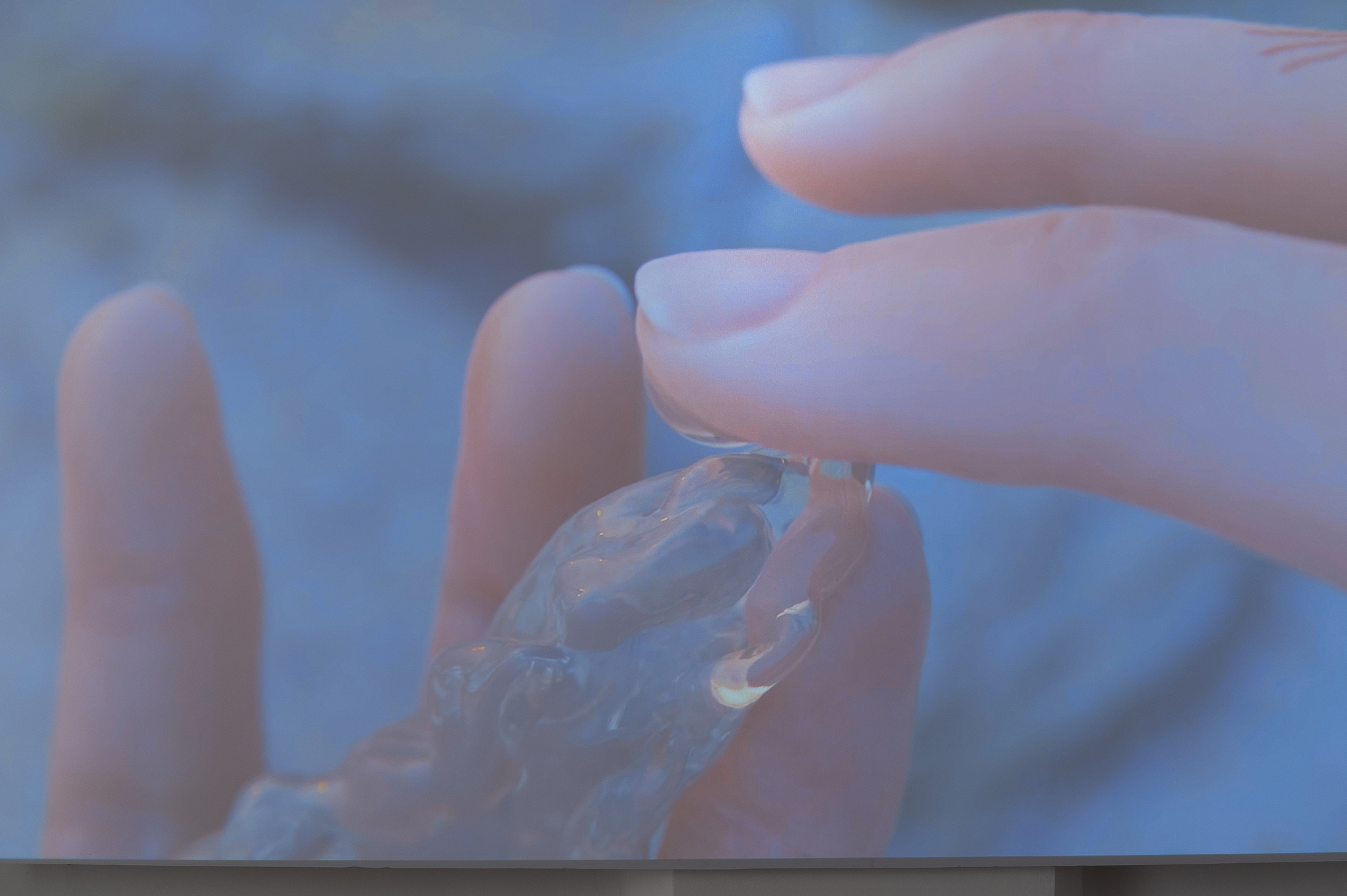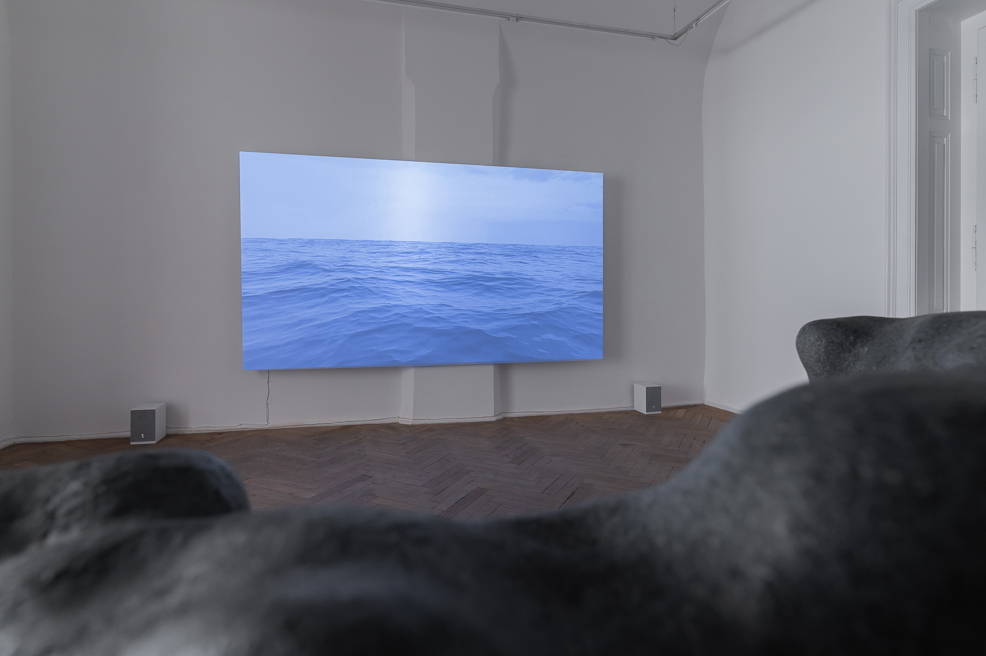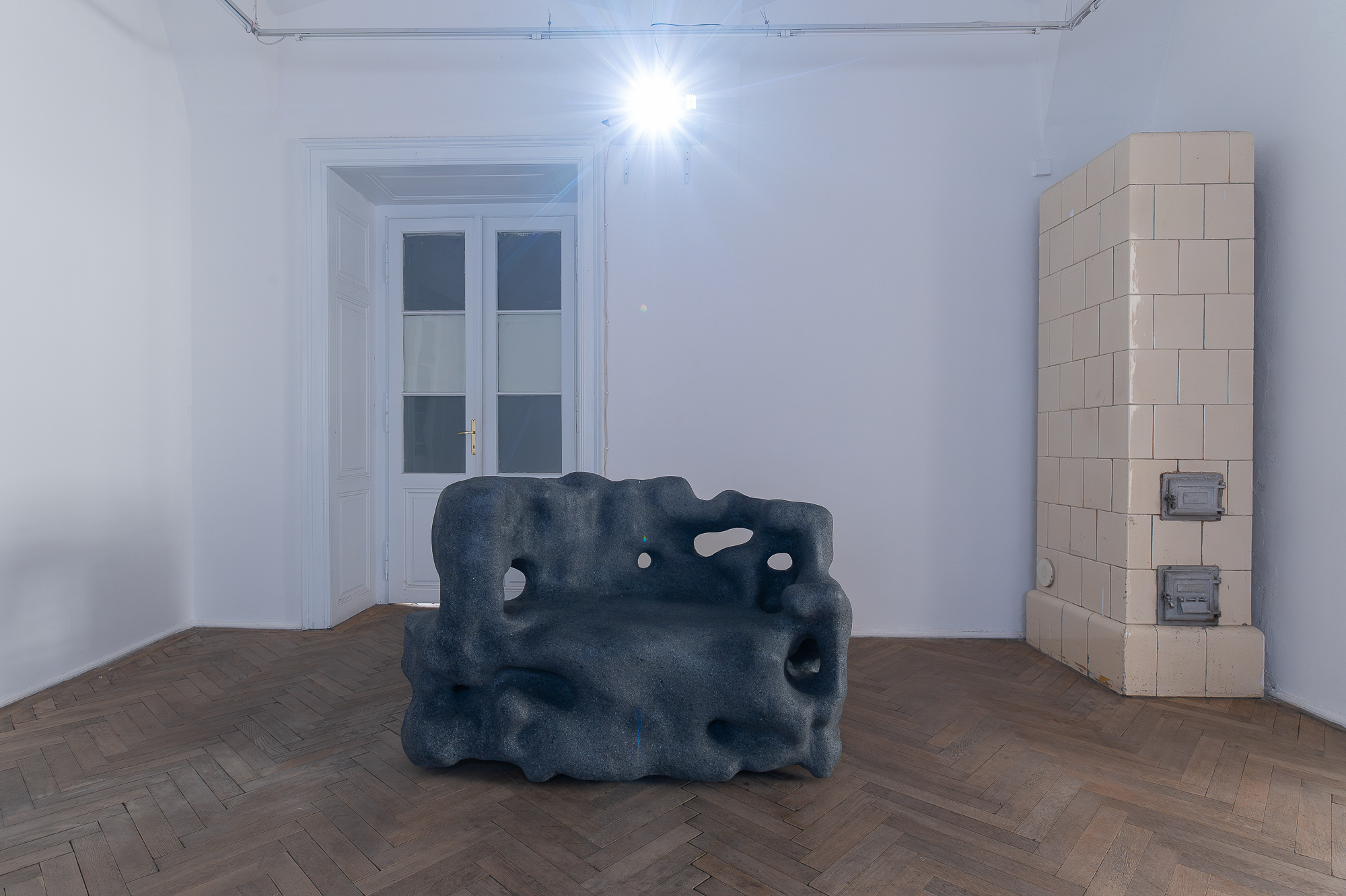 the presented video artwork. For Malinowska, the starting point was the story of Medusa from Greek mythology. However, this narrative almost completely disappears in the video and the artist points the limelight on a living actor – the jellyfish that is able to reverse its life cycle. In this backstory we can find, among other things, a hidden and non-invasive critique of the understanding of death in Western philosophy. The work bears elements of dreamy fiction, emphasizing the overall visual atmos- phere rather than the logical sequence of the narration. It was created in collaboration with Andrej Žabkay (audio) and Vladimíra Vrbiňáková (ed- iting). The video is complemented by a design furniture piece Physaria Chair (2023) by Barbora Hagara and Data[LAB] (FAD STU), whose shape is inspired by the growth of an organism.