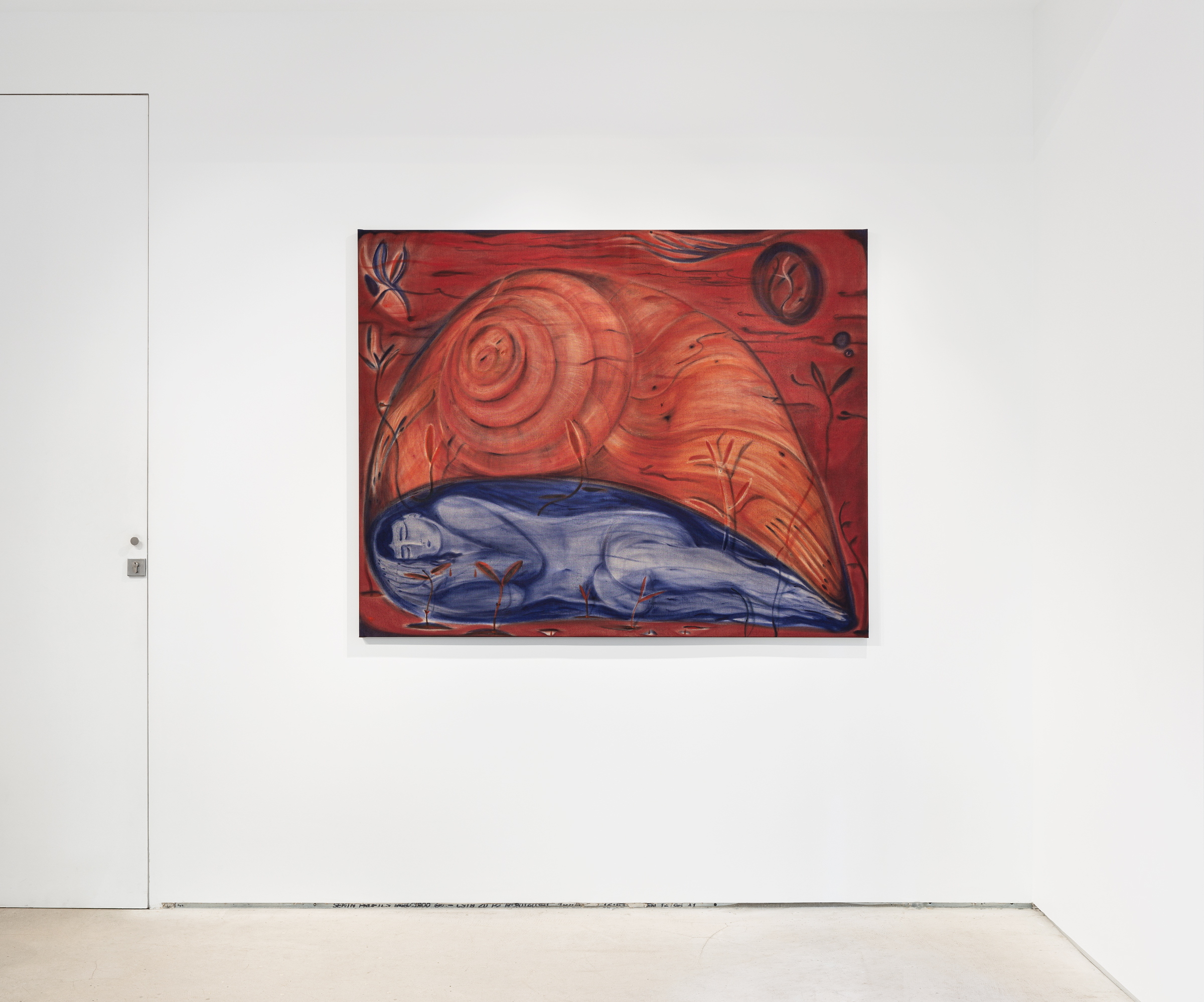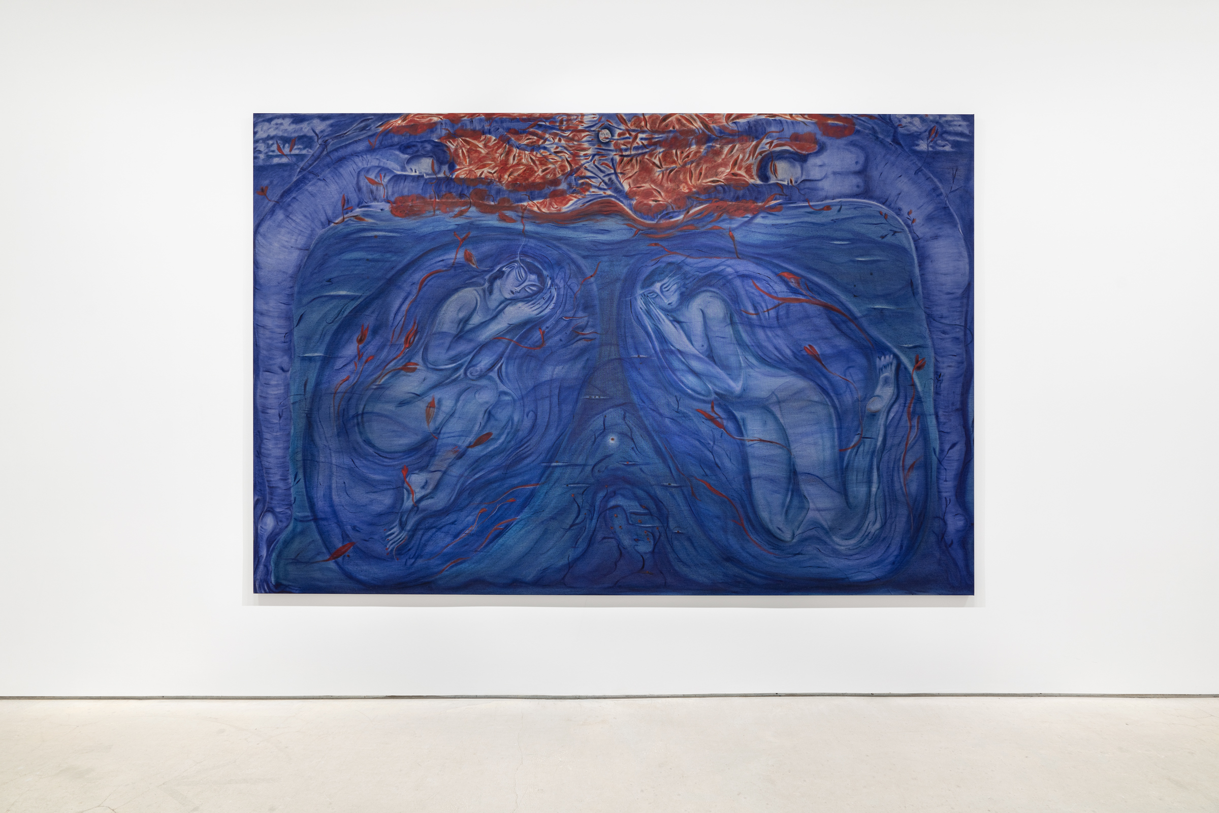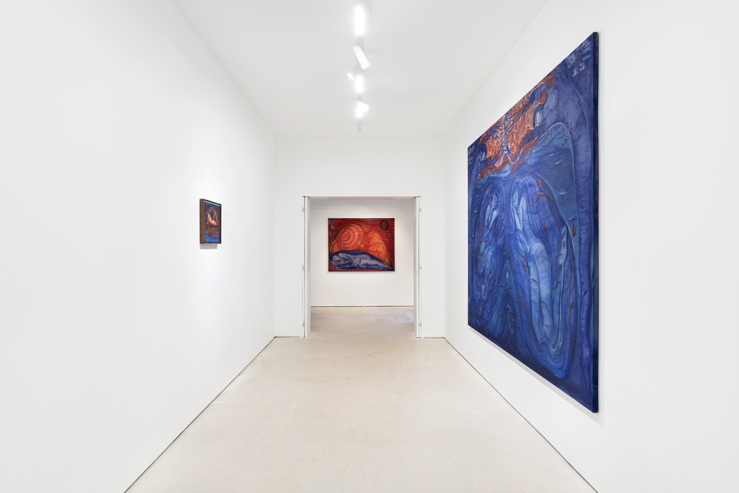 Kinga Bartisâ paintings swish, tremble, pulse, yawn. Rooted in sensation, they start from an impulse in the artistâs body that travels through the arm, hand, and brush, in sweeping strokes across towering canvases evocative of bodily scales. Rendered fluidly in fiery palettes, this suite of twelve compositions, which range wildly from 3 meters to 30 cm in width, reward sustained looking. Entire landscapes unfold within the crook of a limb. Fingers and feet morph into roots, and birds seemingly bloom from the conflagrations of cirrus-clouded skies. They consider the self in all its fluidities, and trouble â through collapsed foreground and backgrounds, landscapes and figures â the binary distinctions between human and nature, male and female, the individual and the multiple.