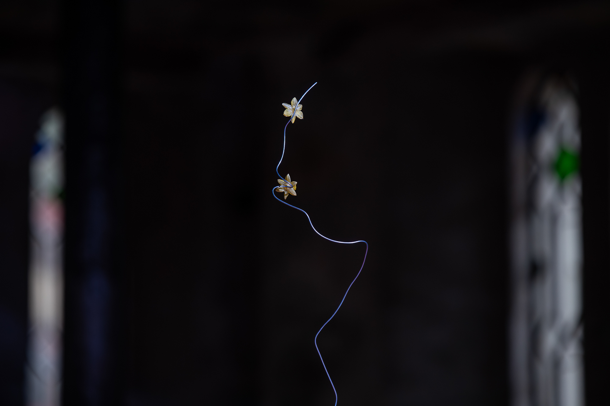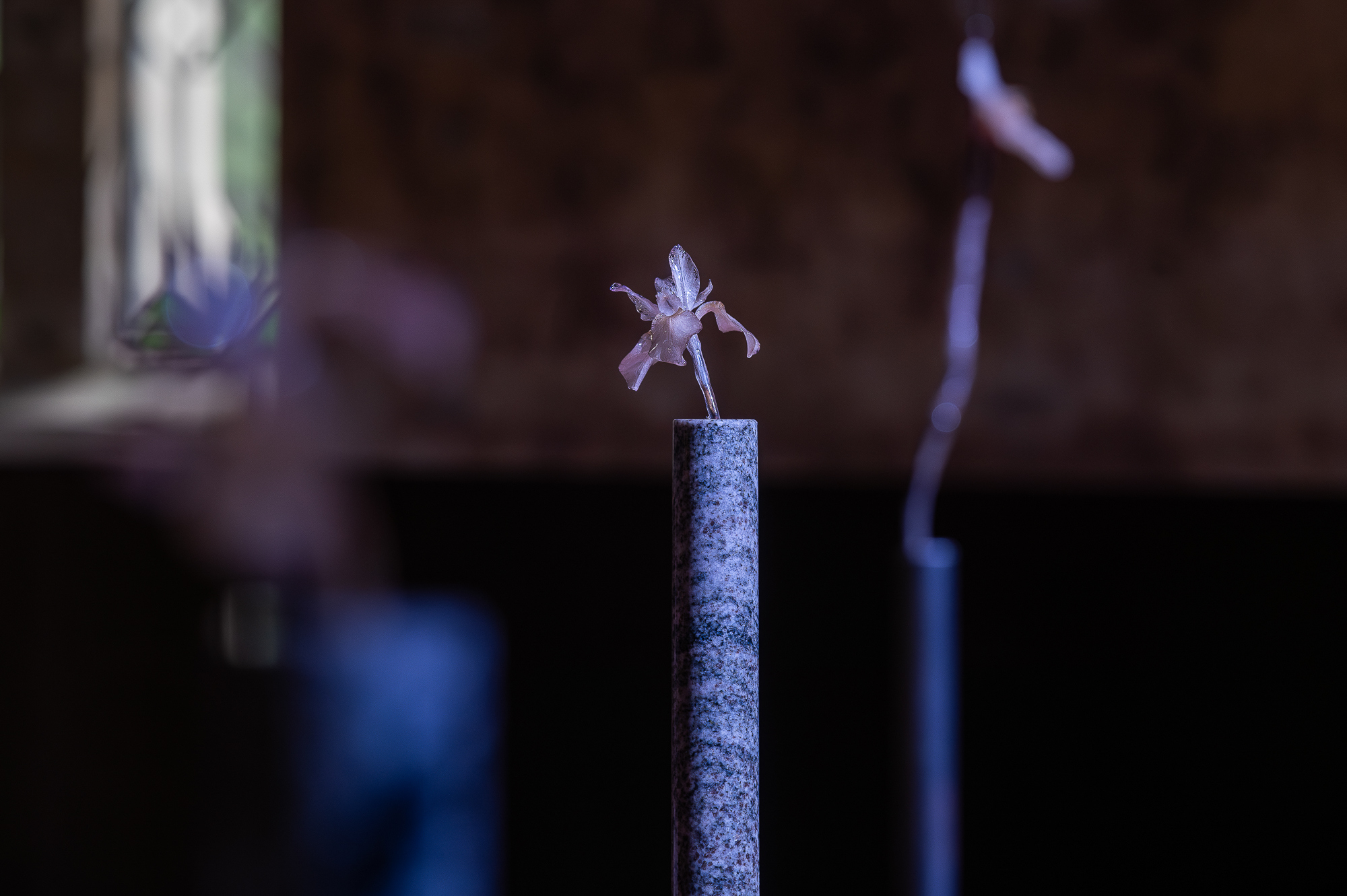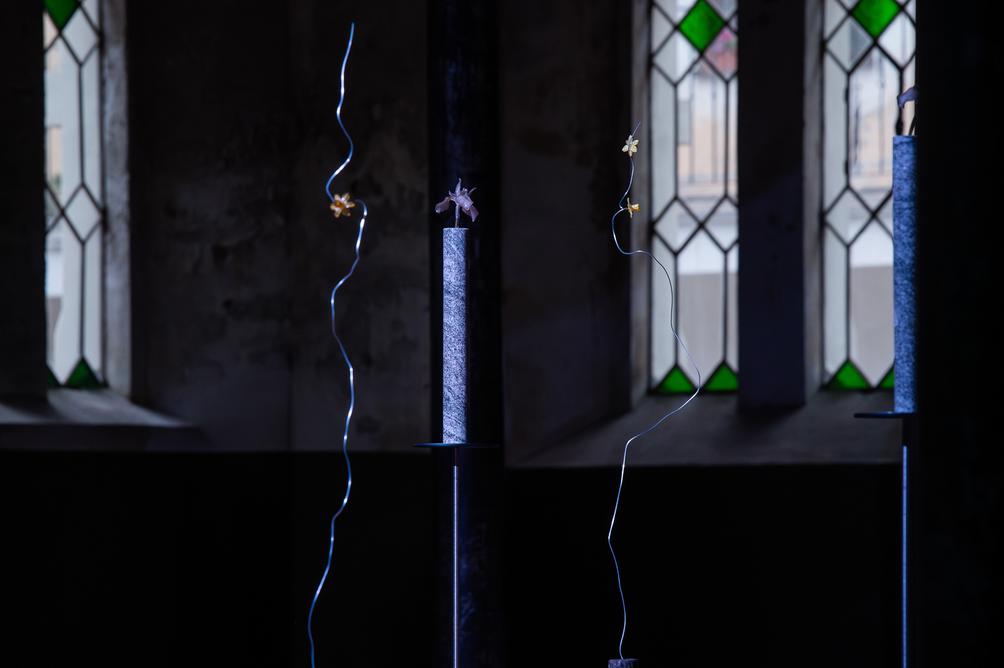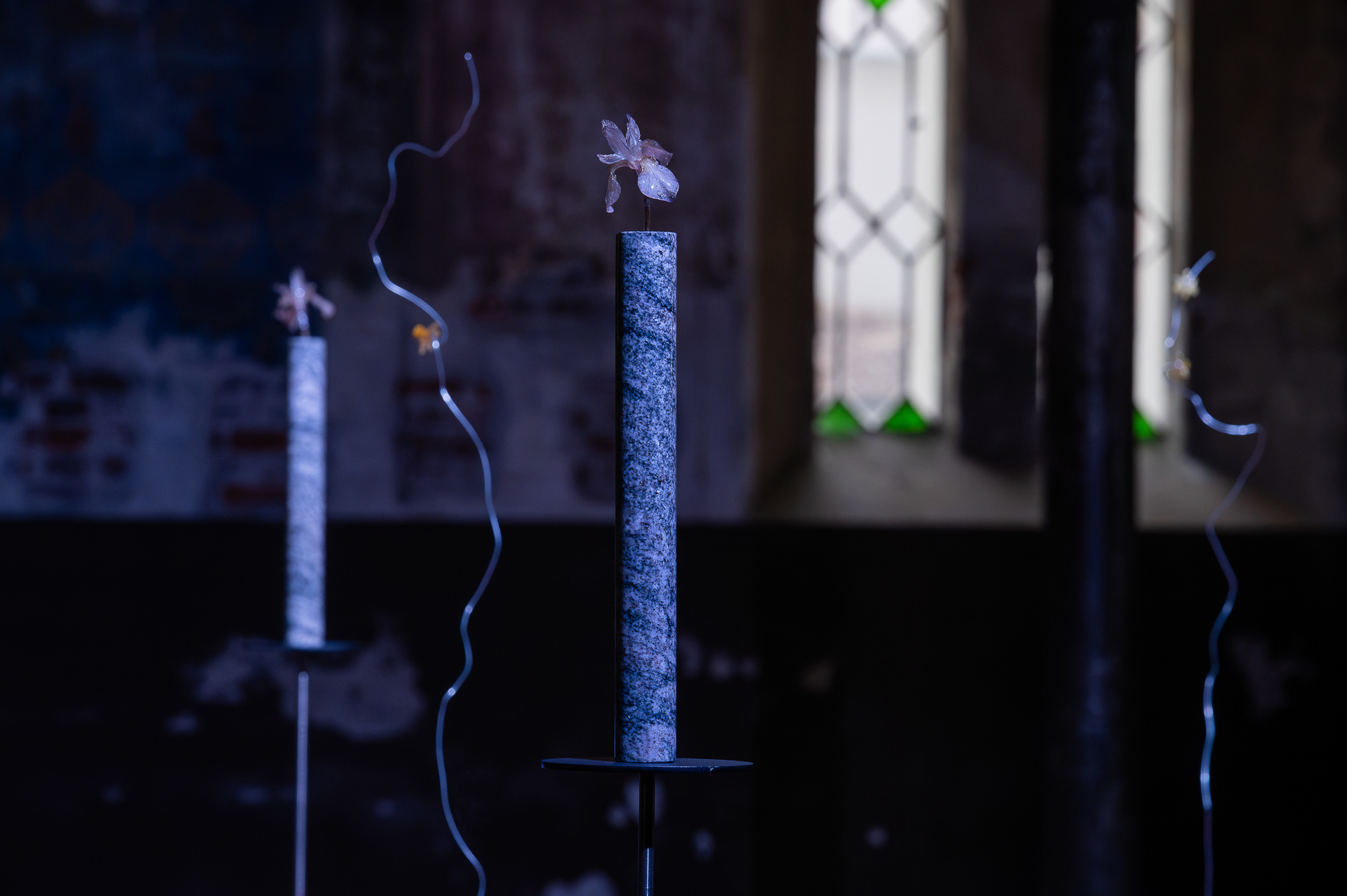 Kristian Nemeth's minimalistic and consistently moderate intervention in the Orthodox Synagogue in Kosice opens up precisely this hidden care and birth in a very small circle. The central motif of the exhibition is plants, specifically flowers - but already suspended in time. Nemeth returns us to the period before withering - he puts himself in the position of a converter of their temporary beauty, more precisely, he takes care of its preservation. He asks himself a very old question, but in a new way - can hope be reflected in nature? Or perhaps more precisely, do flowers teach us to cope with death? What do we get in return for our care?