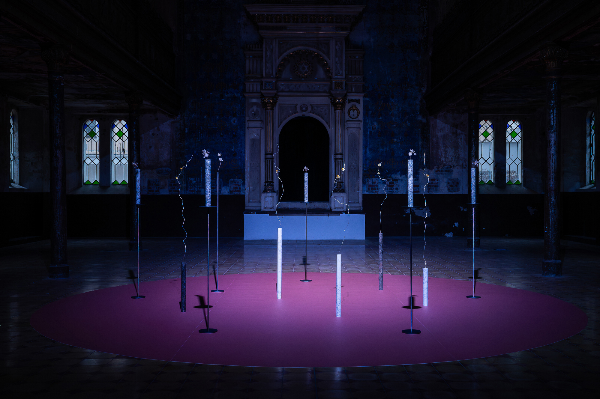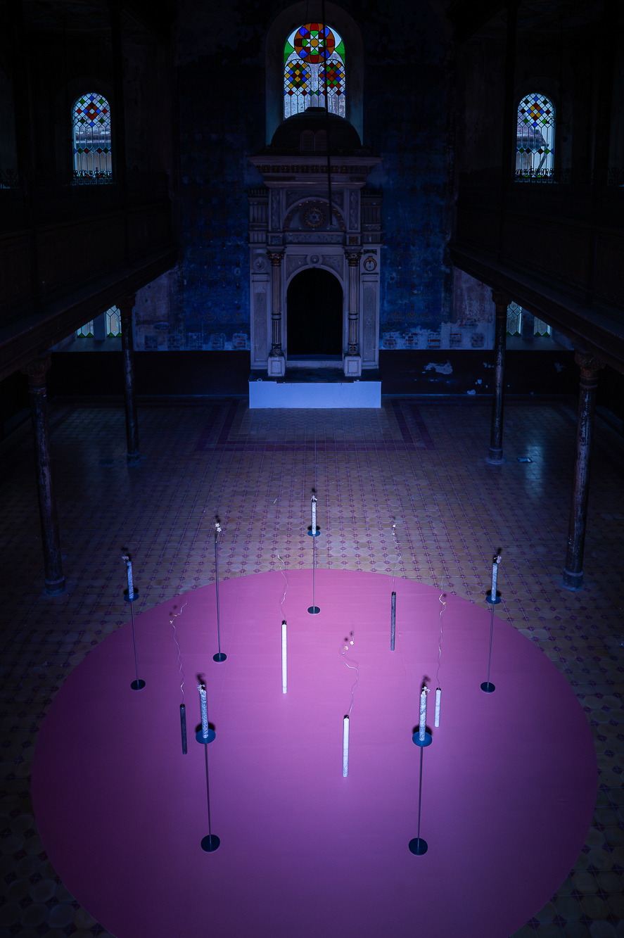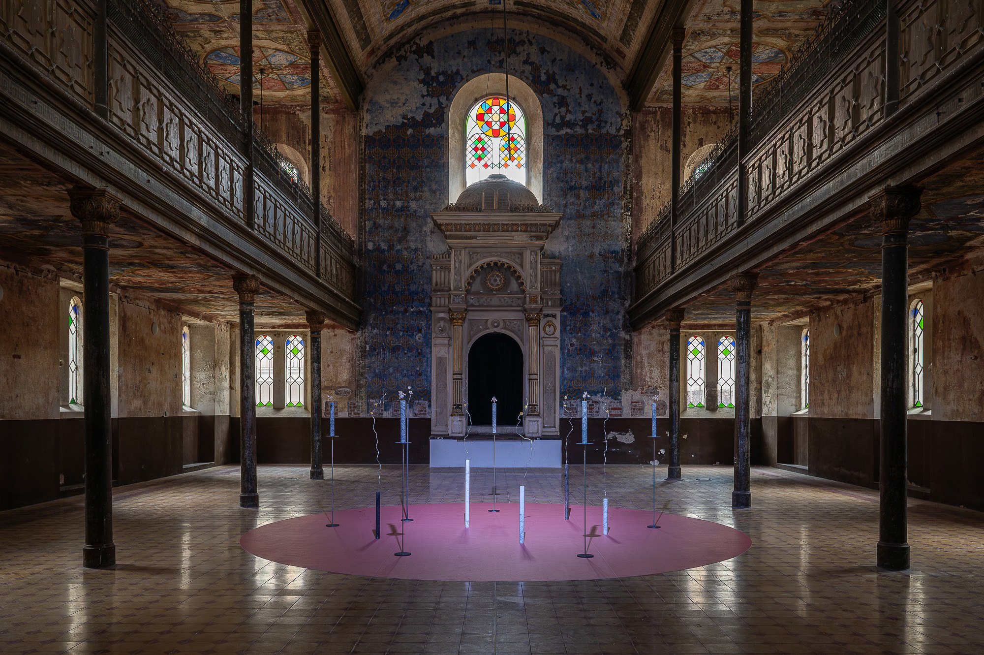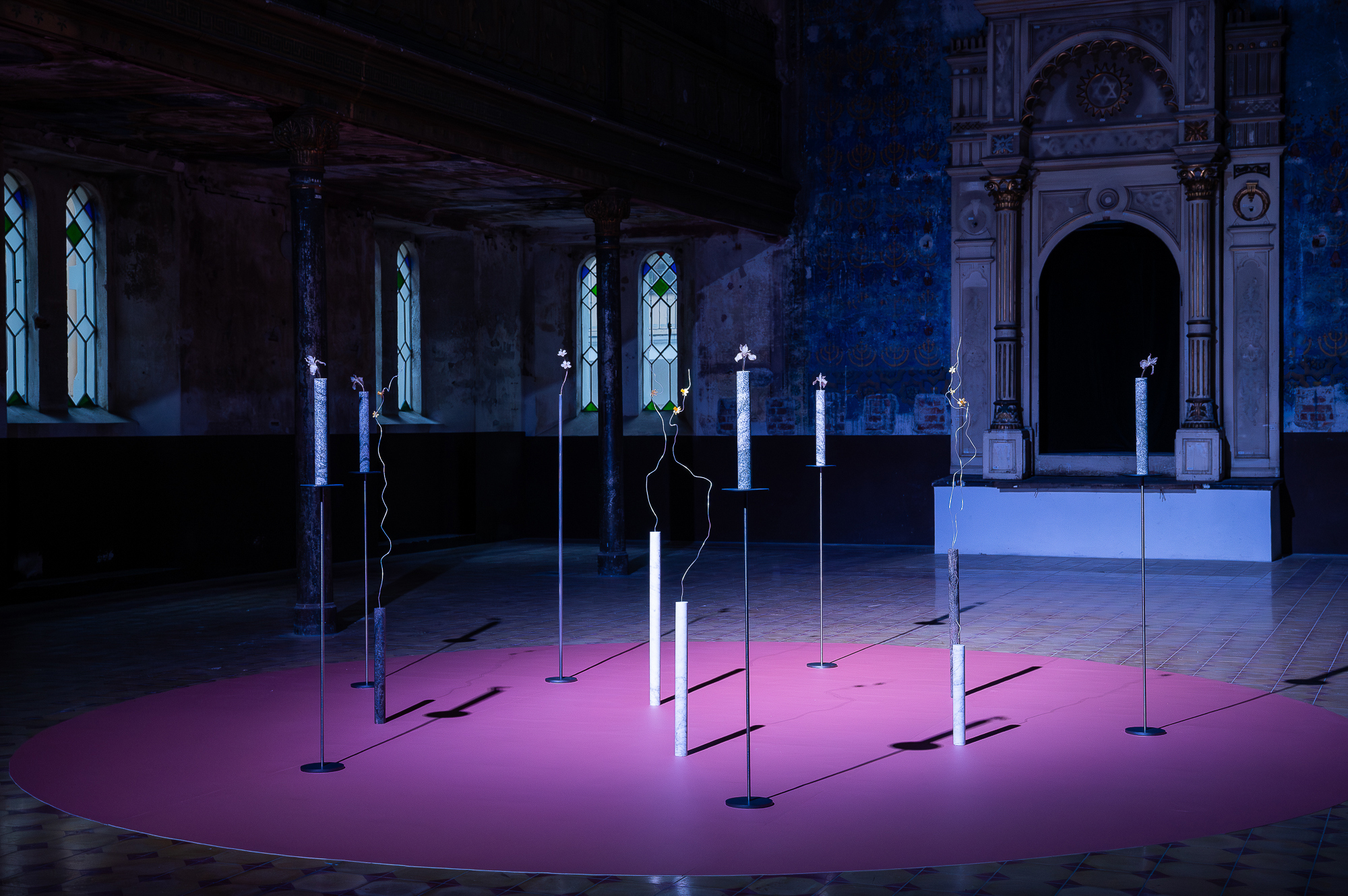 Kristian Nemeth's minimalistic and consistently moderate intervention in the Orthodox Synagogue in Kosice opens up precisely this hidden care and birth in a very small circle. The central motif of the exhibition is plants, specifically flowers - but already suspended in time. Nemeth returns us to the period before withering - he puts himself in the position of a converter of their temporary beauty, more precisely, he takes care of its preservation. He asks himself a very old question, but in a new way - can hope be reflected in nature? Or perhaps more precisely, do flowers teach us to cope with death? What do we get in return for our care?