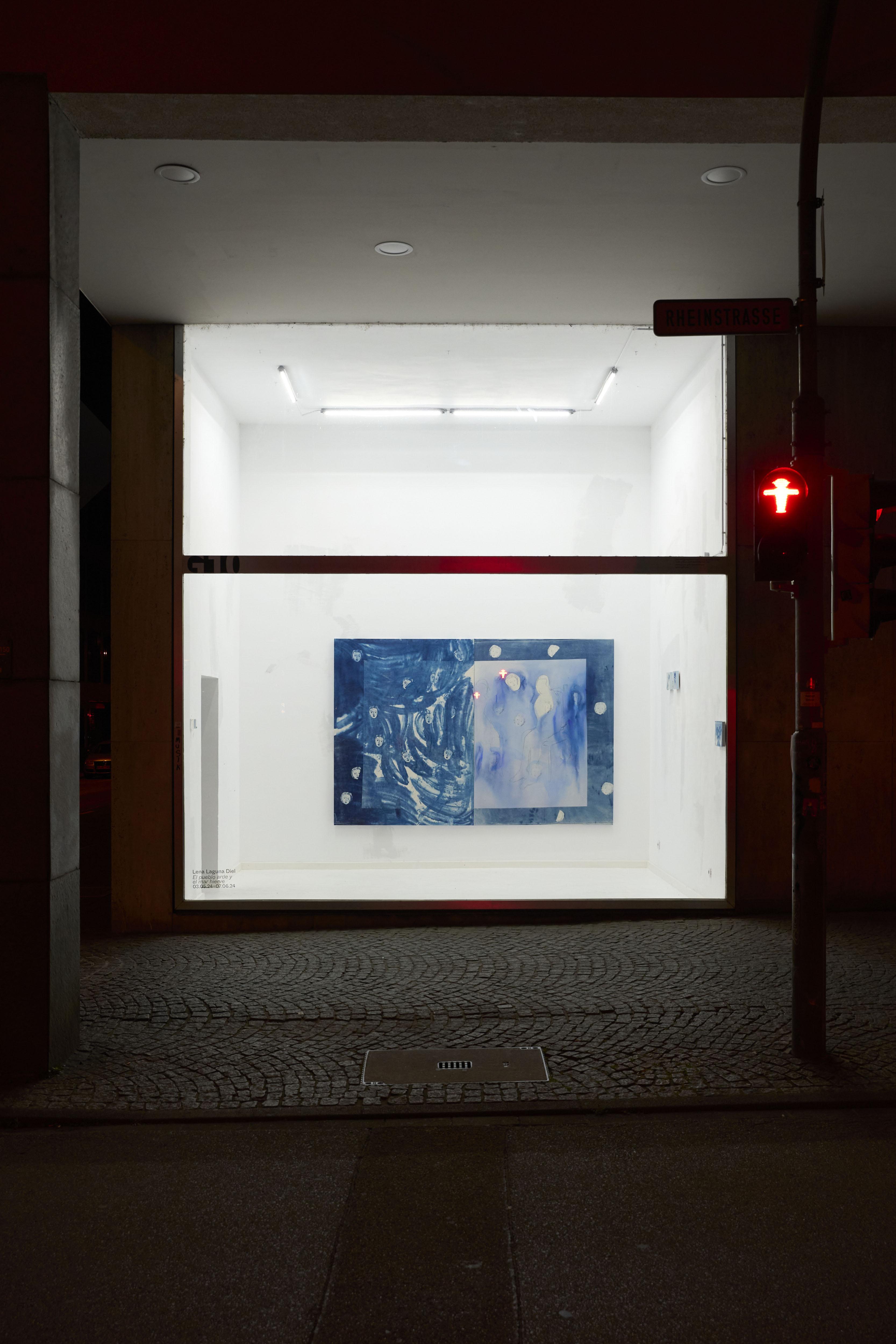 Lena Laguna Diel applies a complex artistic process to produce her works: First, she draws her compositions, scans them and digitally processes parts of them. She then uses her assembled collages to create sometimes huge, sometimes small negatives. When she places a negative in a basin with a chemical solution over a piece of canvas, the textile turns blue. The artist harmonizes this chemical process of cyanotype by creating various translucent layers through the combination of the negative and the substance. This results in complex compositions without a clear foreground or background; without even a horizon or perspective. For her exhibition in G10 Projektraum, the artist breaks with the classic concept of pictorial composition; she draws abstract forms directly onto the wall and thereby expands the pictorial space. The walls thus become an active part of the exhibition. The activation of new pictorial levels, the blurring of boundaries and of artistic techniques gives her works depth and a melancholy tenderness that vibrates subtly and yet powerfully through the space.