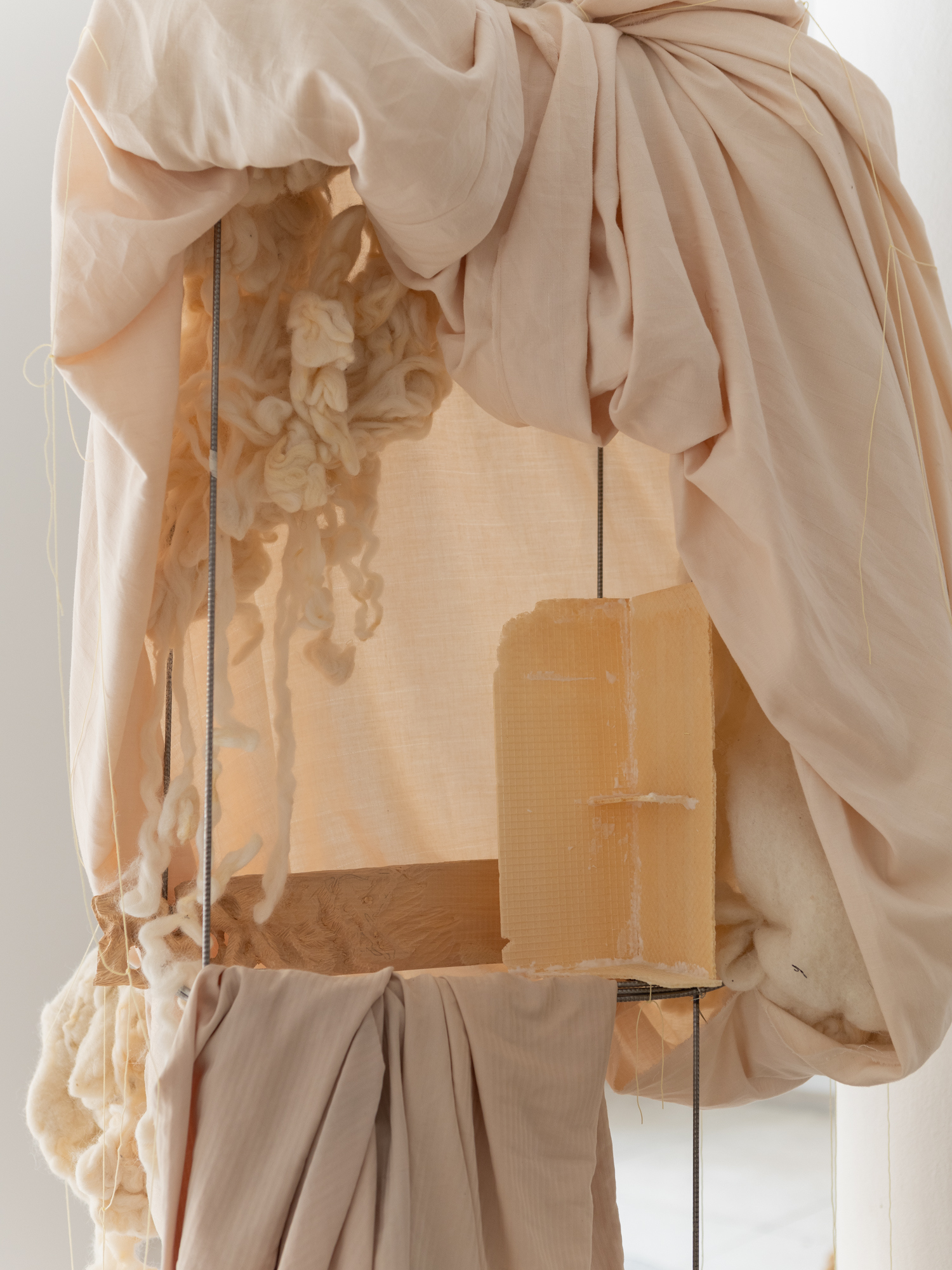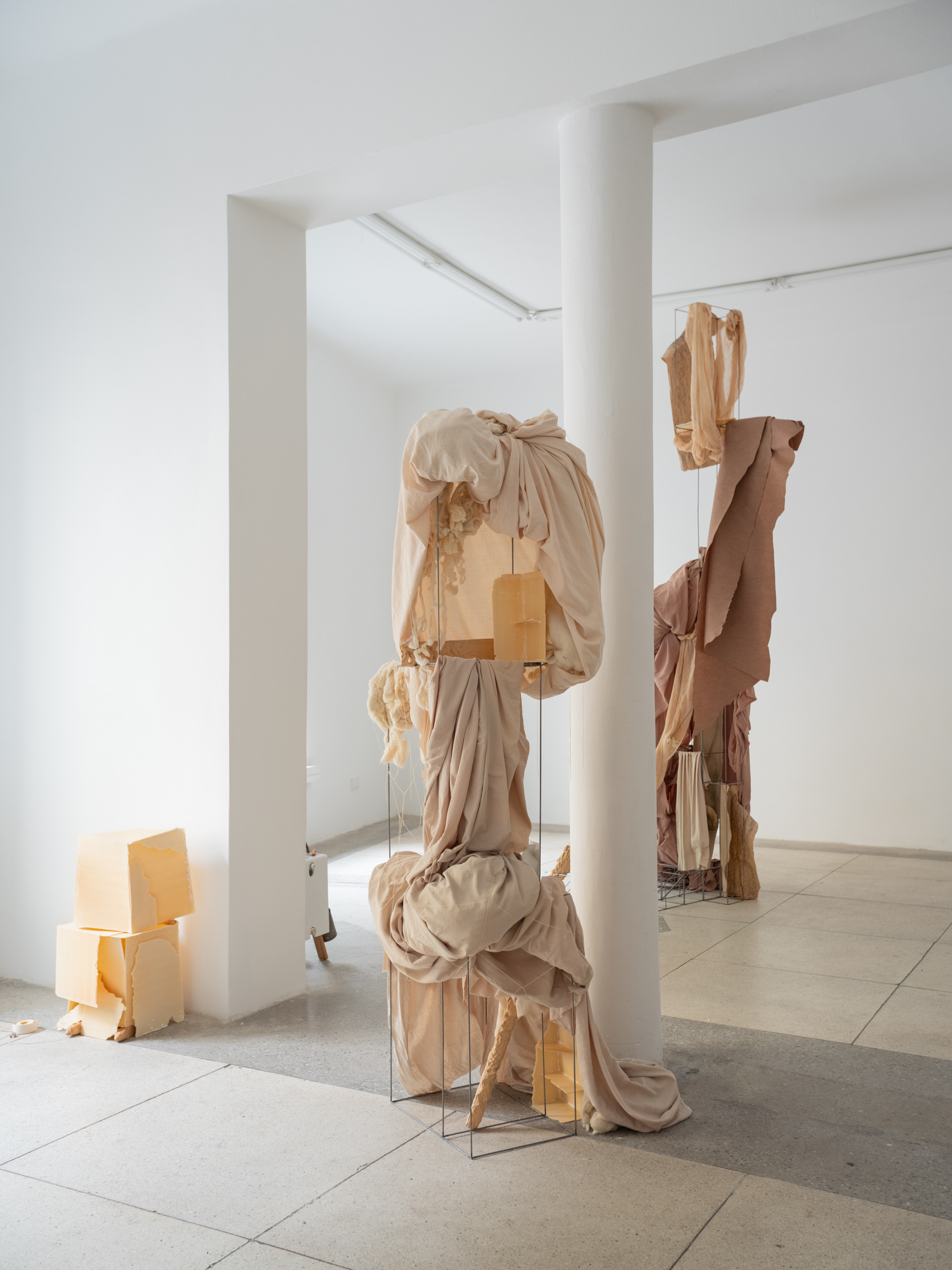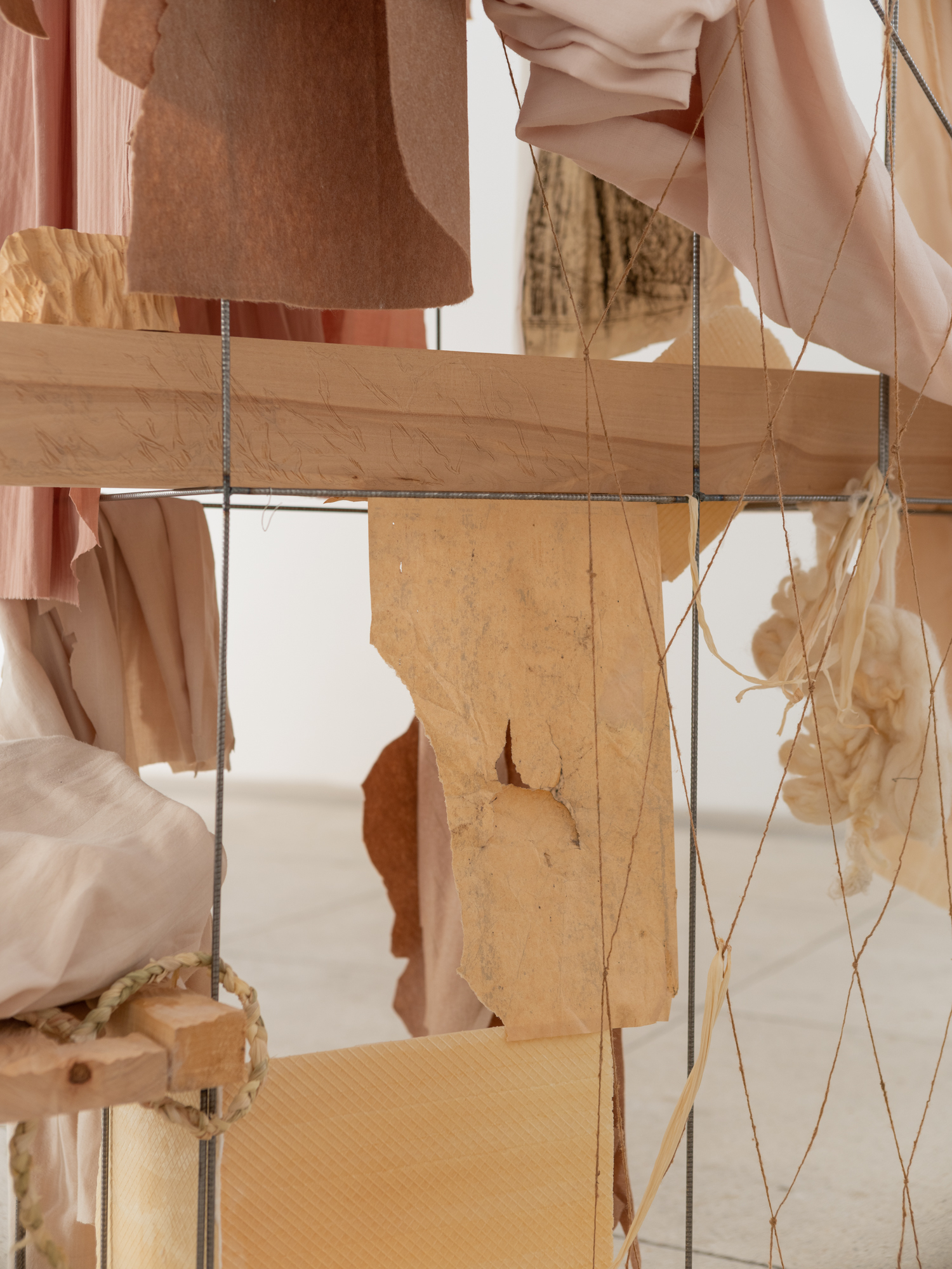 Towering bedrooms, dozens, maybe even thirty-something of them make up dusty sediment altars. The perimeters of chambers, their floors, the usual desire paths are bitten out of cardboard, or biscuits. The walls, thinner than paper, are in some rooms soft, malleable to touch. In other stories, as if after incessant rat pleas, swarms of wasps constructed domes and columns. Belched out, porous nooks for life and death. Scattered and blackened from decay bone courtyards are always ready for relentless change. Rat’s teeth never stop growing. She scurries between dank warm reek and crisp drafts, stretching doorways’ cob veils through all air ducts.