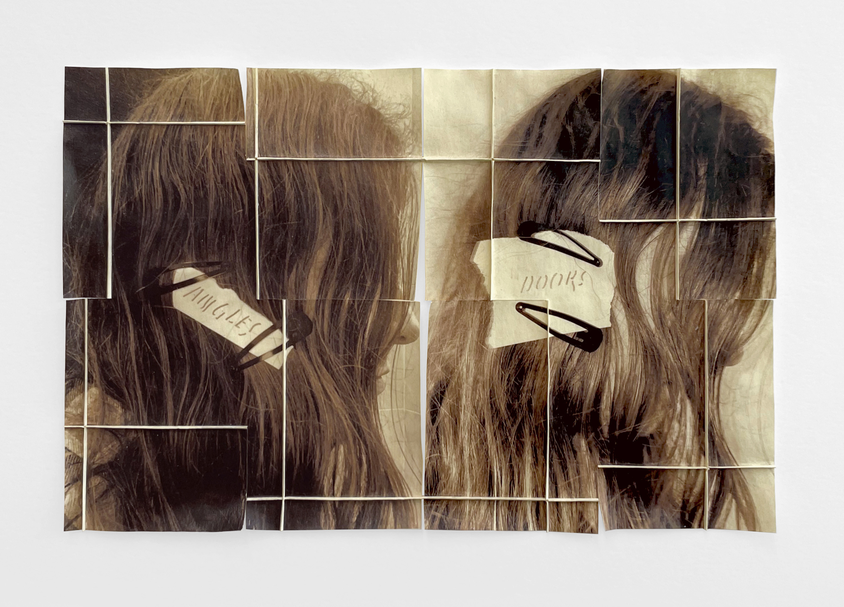 Similarly, Lukas Kaufmann charges the rationality of the grid not with references to the transcendental, but with fragments of the everyday. In a series of varnished photographs on folded yellowish paper (all Untitled, 2024), sensitive imagery such as the exposed body or face of the artist are depicted in hues of brown sepia. Interweaving a range of production techniques, the artist generally questions the relationship between image carrier and image surface, while synergistically merging spatial and psychological dimensions. With utmost delicacy, Kaufmann continuously suggests ideas of structure and vagueness, distance and intimacy. By folding the paper, he underscores a spatiality in his works, becoming three-dimensional through the subsequent application of water and varnish, until the material outside the tectonic structure of the grid softens, curls. While the grids serve as the image carrier and focus the viewerâs gaze, the image surface seems to convey emotion, as the material takes on a sculptural life of its own. A simultaneous game of concealing and revealing of content or leitmotifs is a recurring approach in Kaufmannâs artistic practice and is continued in the exhibition.