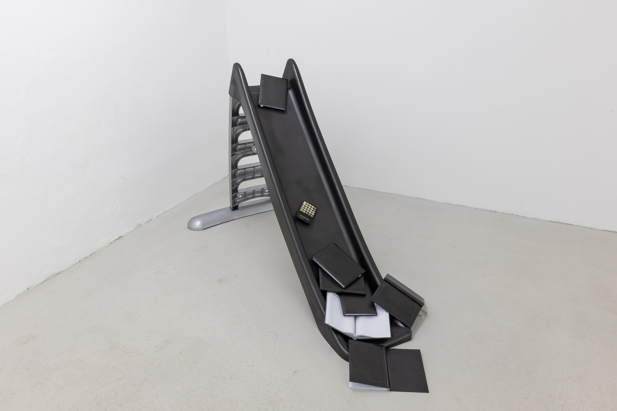 The subtle message of the exhibition critiques how institutions and the concept of property shape our lives, with the ultimate aim of automating, standardizing, or identifying us as buyers. The works on display illustrate in one way or another the frenetic pace of everyday life, where the collision of the utilitarian and the artificial are central themes, both in how we reflect the present time and in imagining speculations of the future, where inoculated meanings no longer have relevance or reference points. From this point of view, the presence of ruin is inevitable, the need for change being correlated with the abandonment of what is now trending and the migration towards fiction. Freedom from the pressures of the contemporary world comes with observation, irony, chaos, and dreaming. While some contributions in the exhibition look nostalgically at society's ability to invent and generate new and new worlds, or the transition between professional life and sacrifice, other works in the selection subtly investigate the contamination with variable means of consumption designed to facilitate our efficiency, and the revolt and chaos generated by the market's inability to meet our true needs, and by implication, promises.