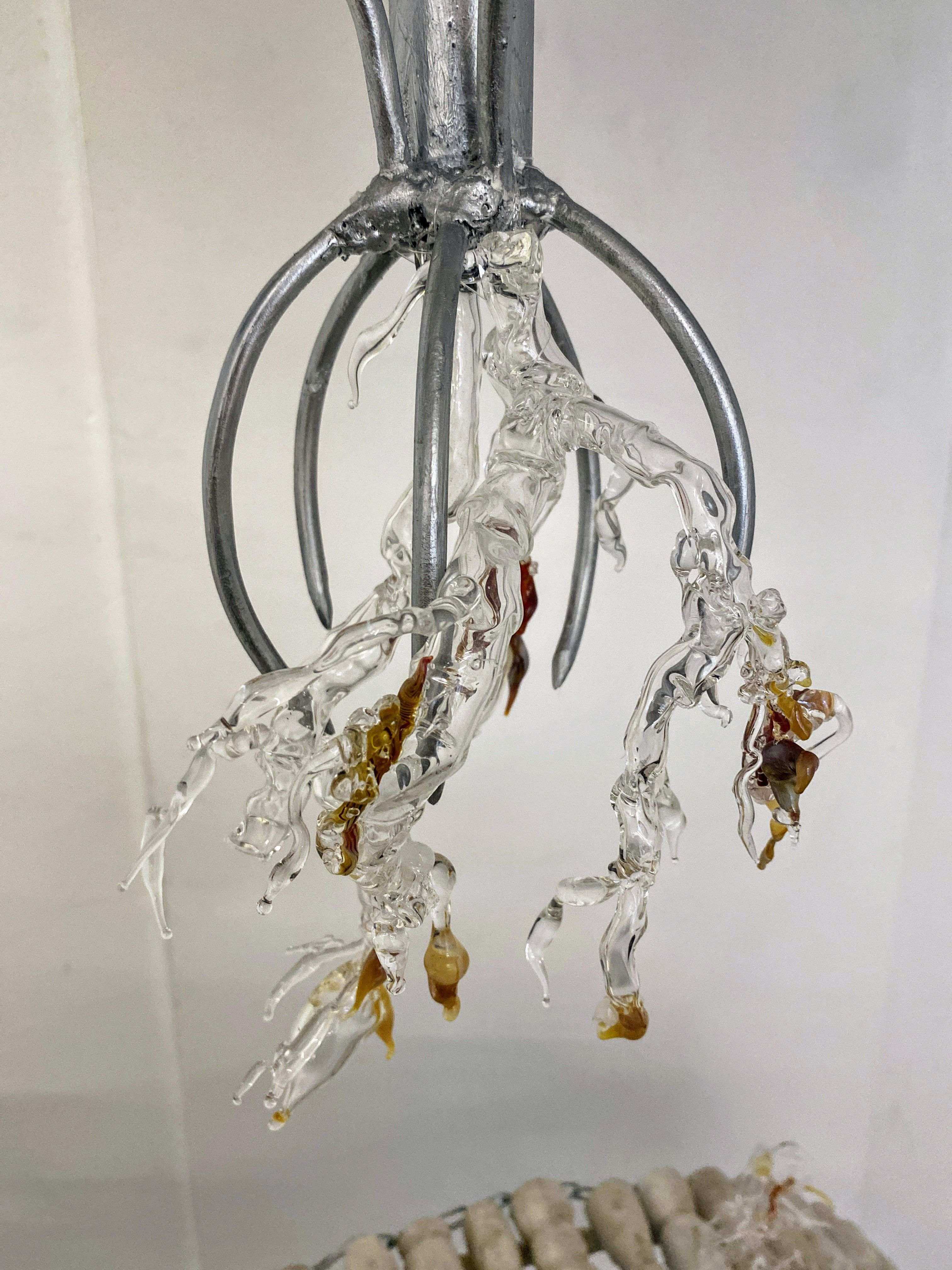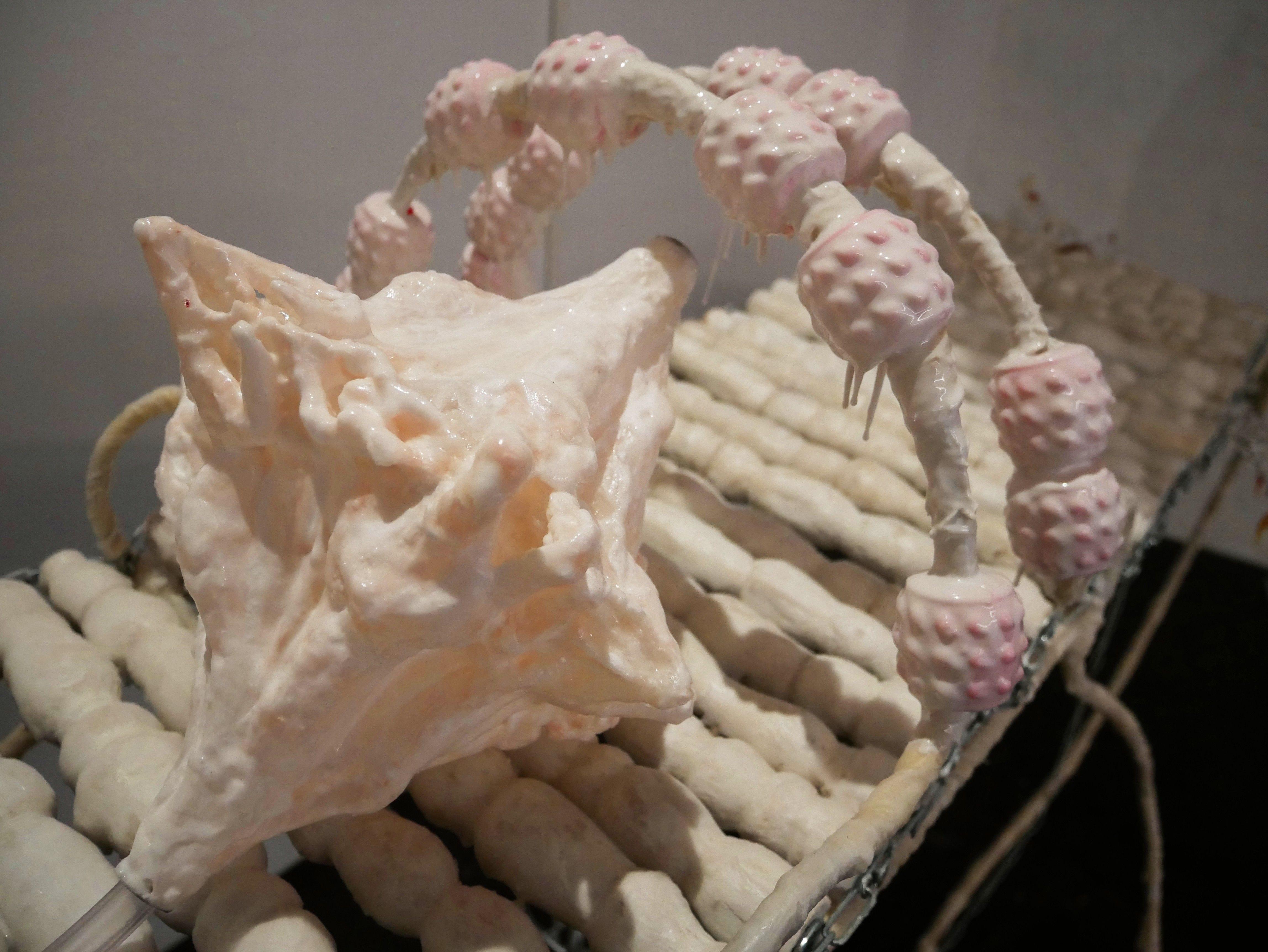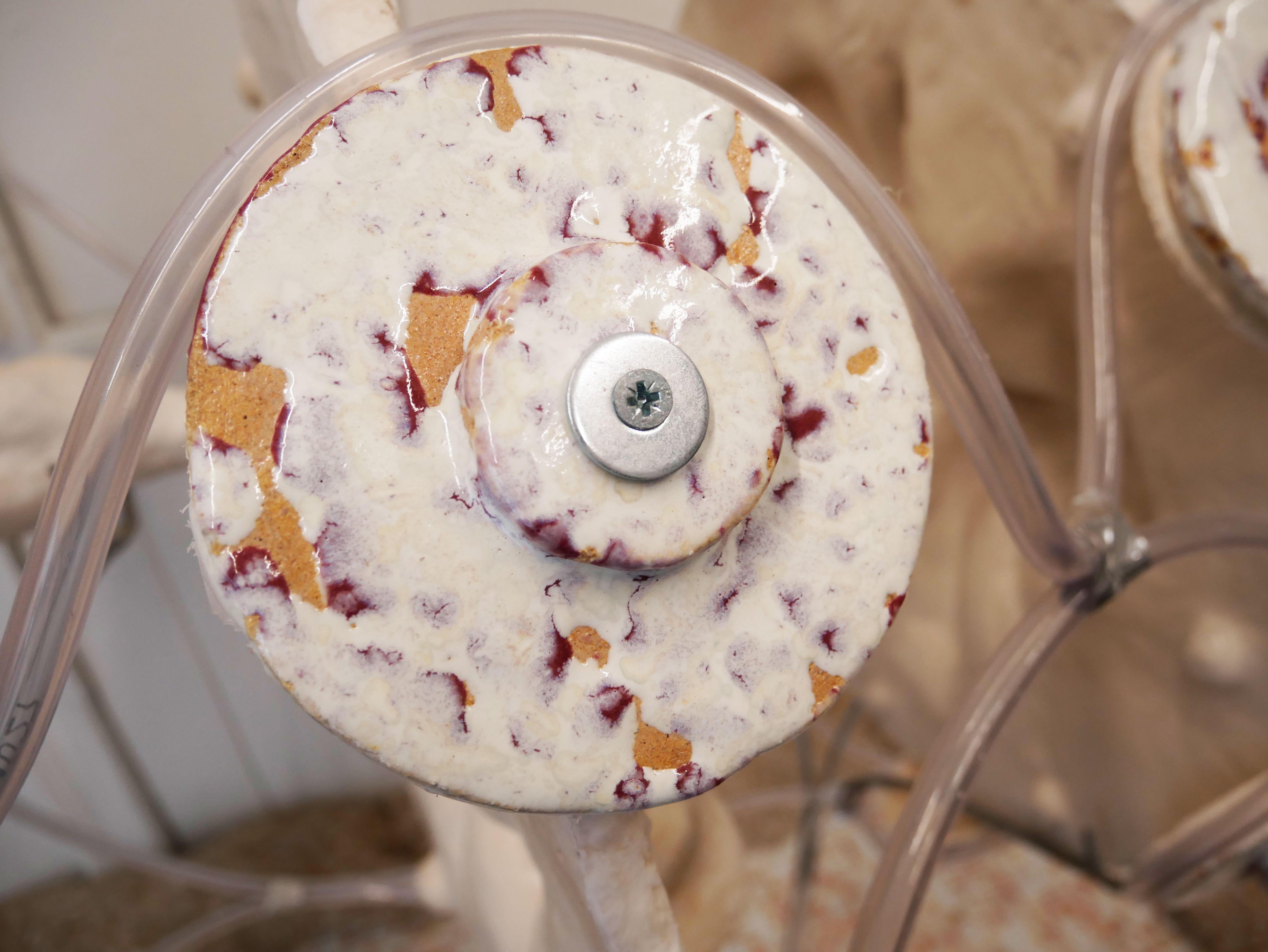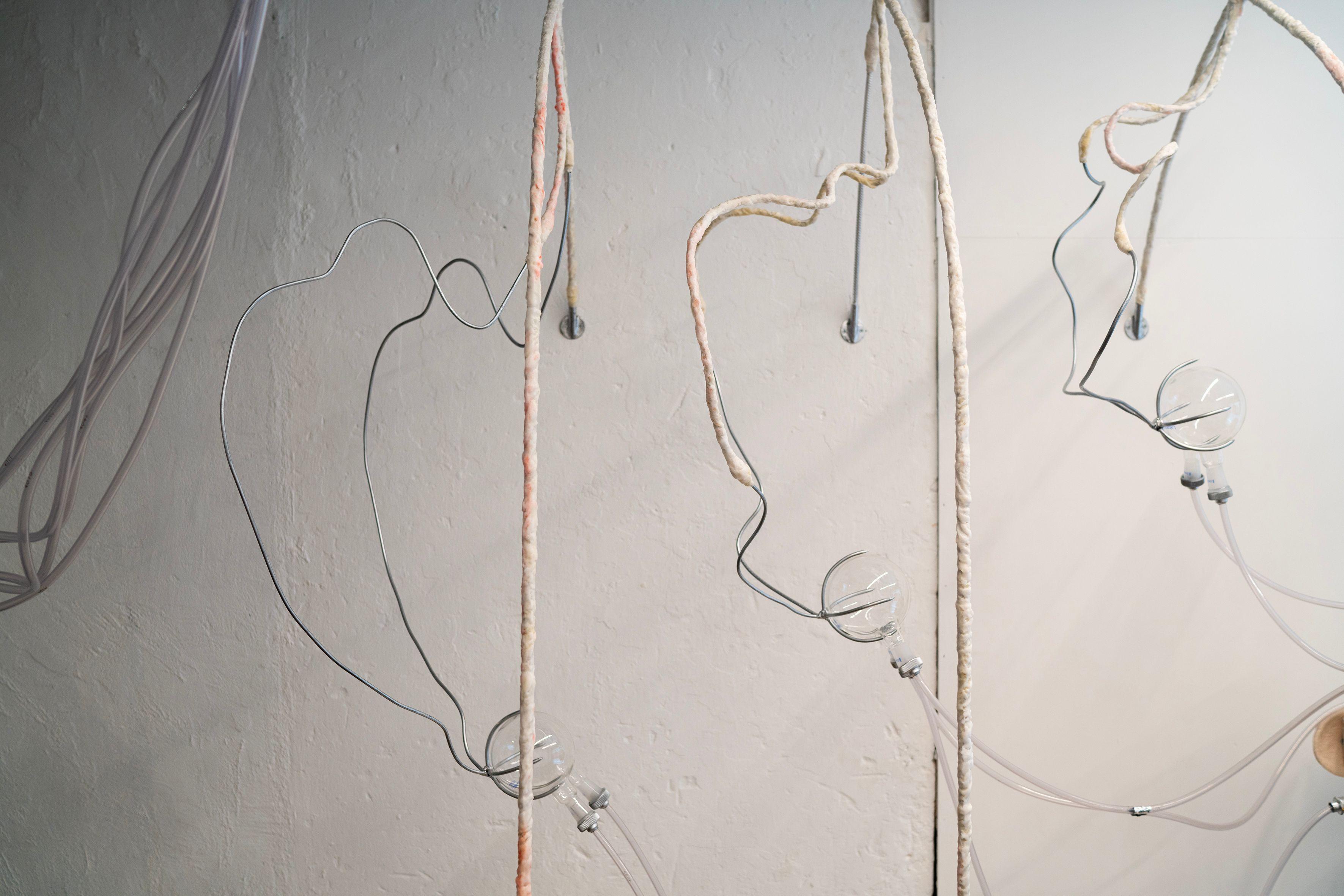 "As places of transformation in a quasi-clinical world, the immersive installations by AnaĂŻs Gauthier hybridize the organic with the industrial. They are active as a body-machine that comes to break the silence to explore our contemporary care mechanisms. The artist proposes here an in-situ installation in two parts: a factory of the intimate that is mechanized, an imperfect machinery that becomes humanized. Unidentified hybrid forms question the mechanization of our bodies at work and their potential failure. The gears seem ready to shake like vital organs, but a permanent seepage betrays their emotional overheating."