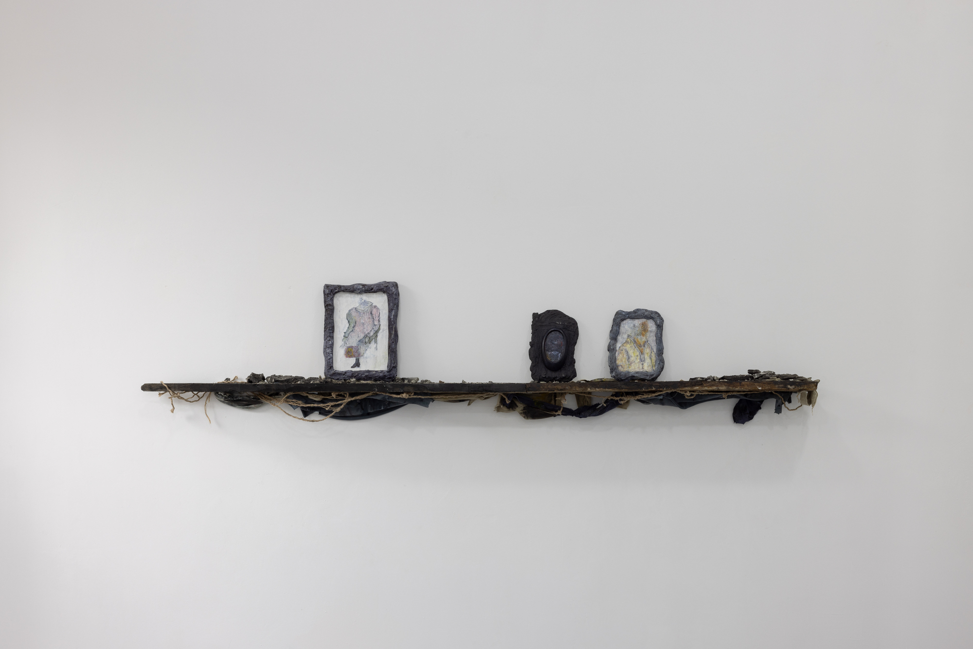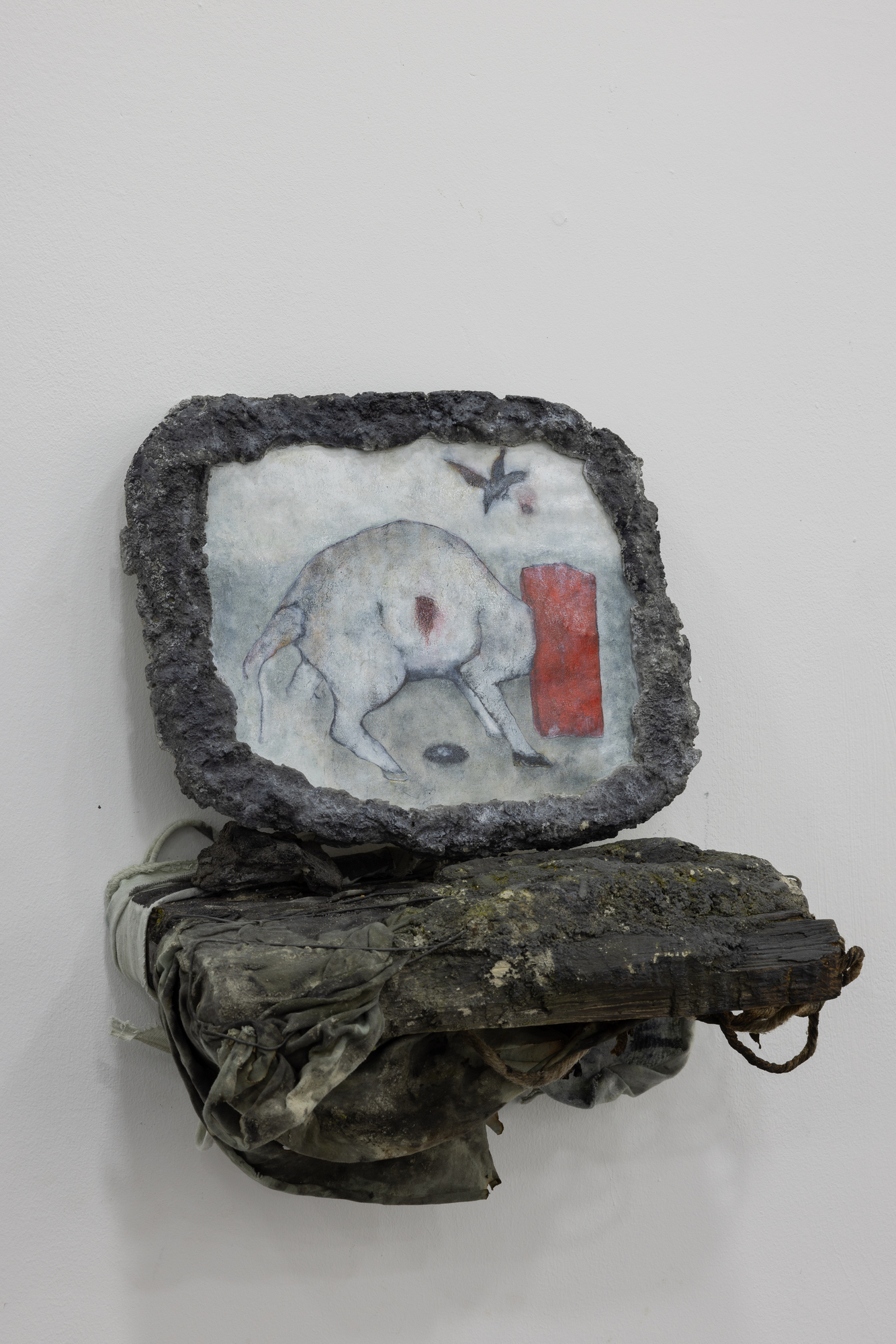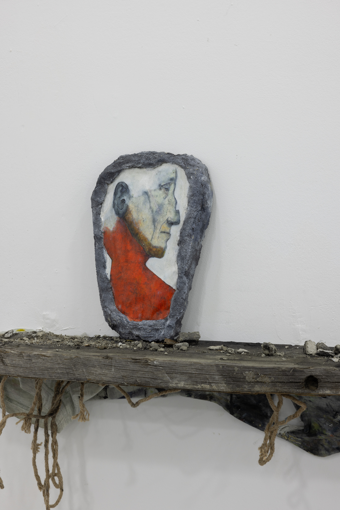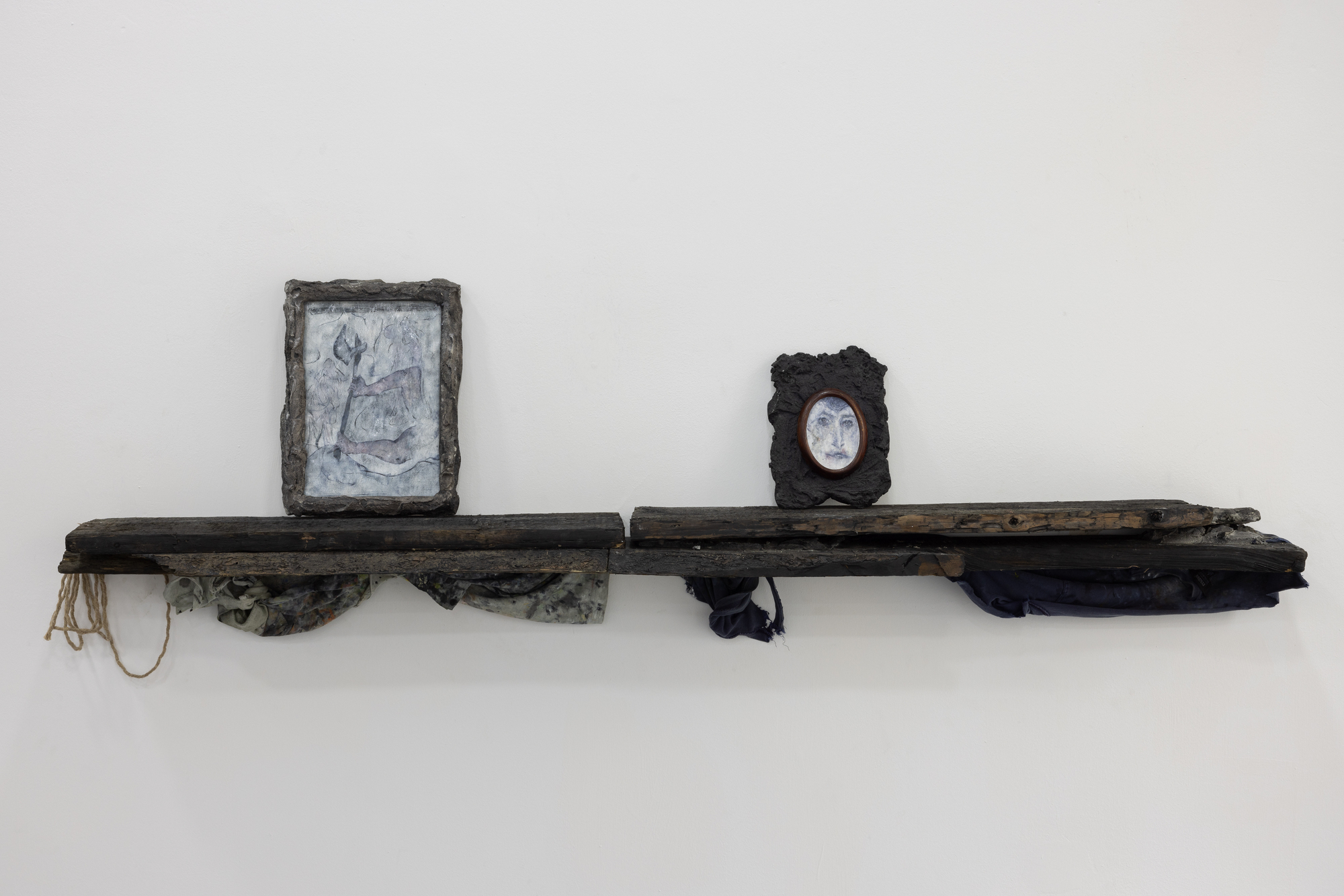 One piece depicts a hand wielding a tool, echoing the historical monument of Svetitskhoveli, suggesting the âfirst dayâ might be a new chapter built on past foundations, a nonsensical reimagining of history, or a surreal endeavour to grasp fleeting memories. The artistâs handmade cement frames, juxtaposed against the watercoloursâ impermanence, symbolise our efforts to solidify these ephemeral experiences. Bend- elianiâs work compels us to question how we piece together fragments of time and anchor these fleeting images in a permanent reality.